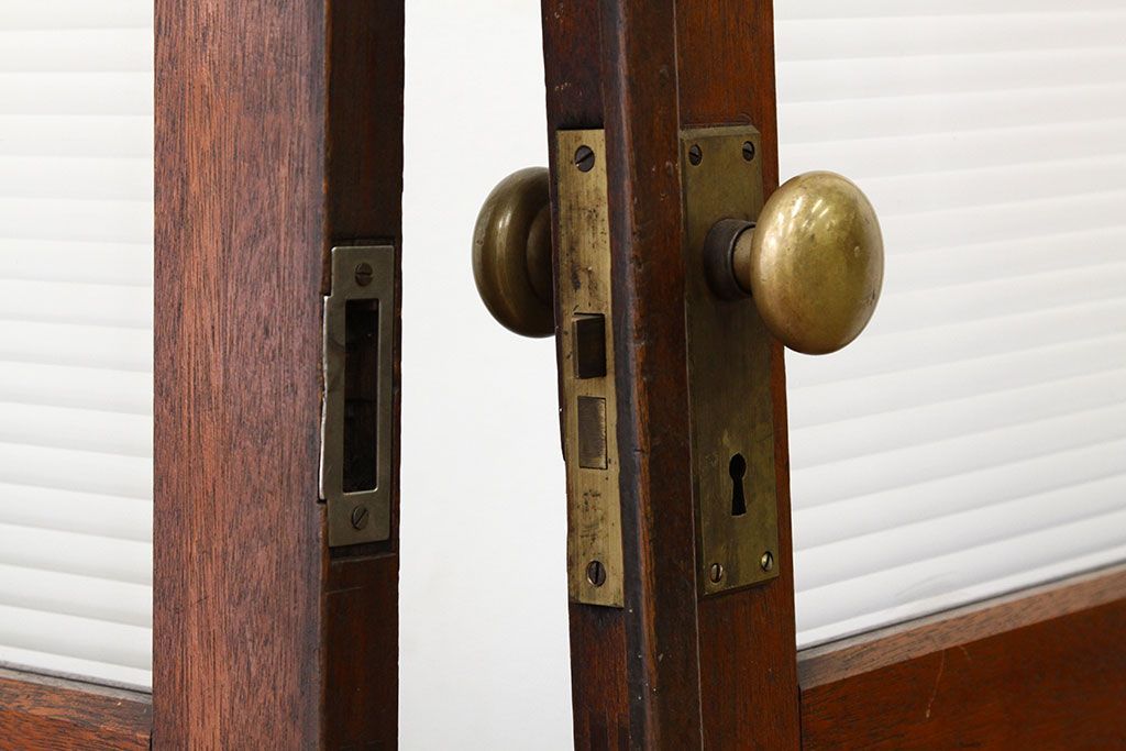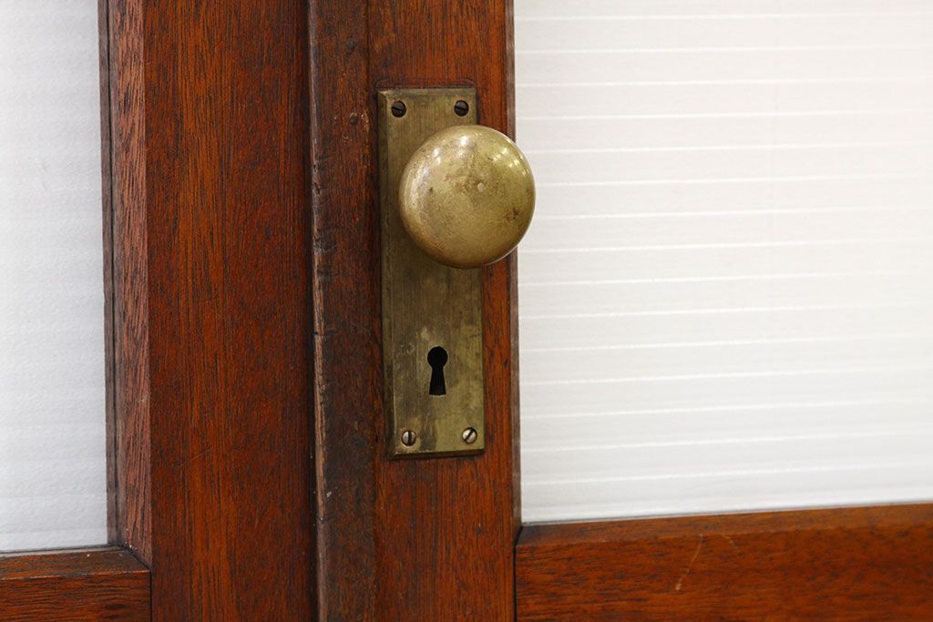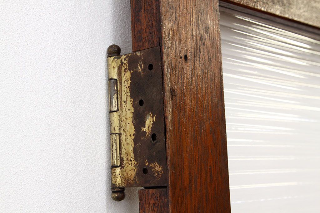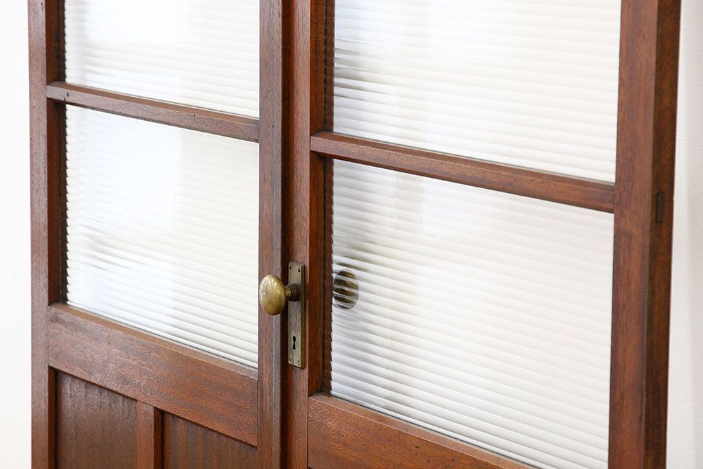 アンティーク 古い木のモールガラス観音開きドアセット(扉・建具)
