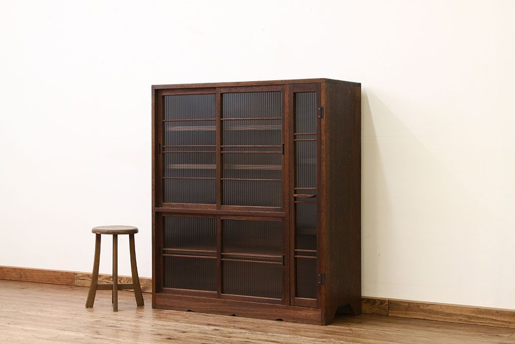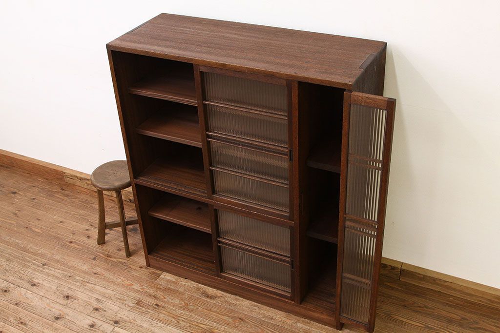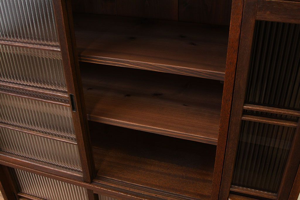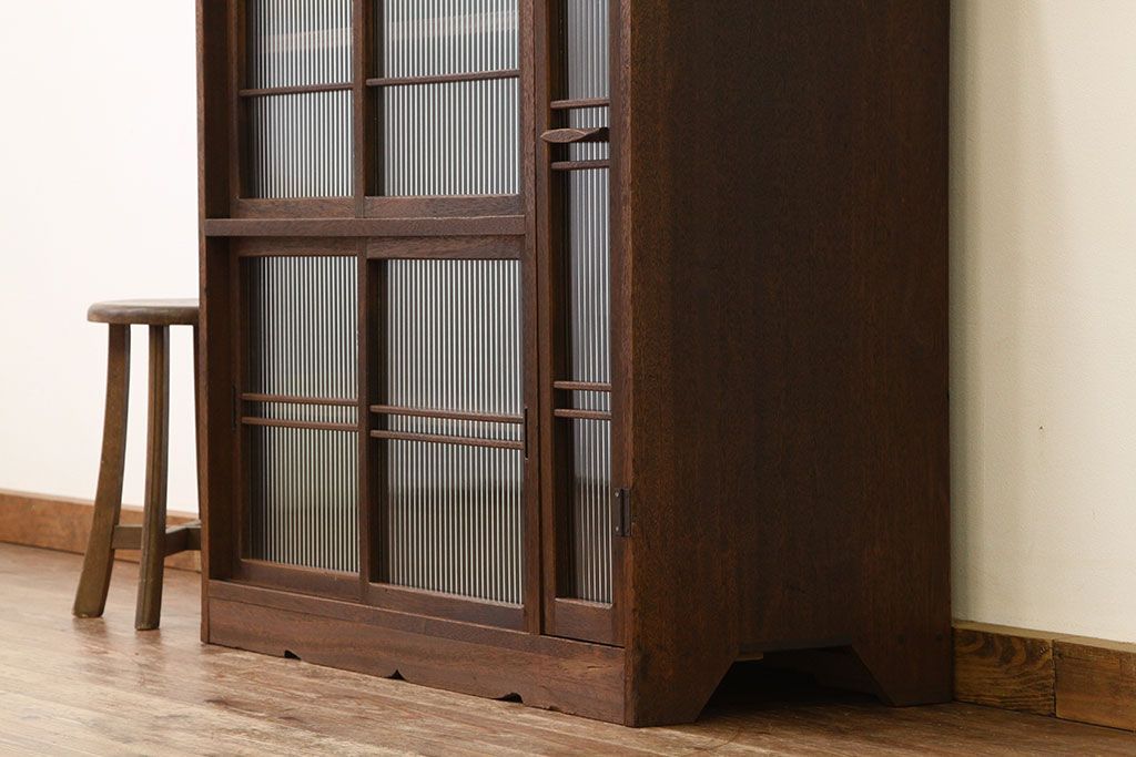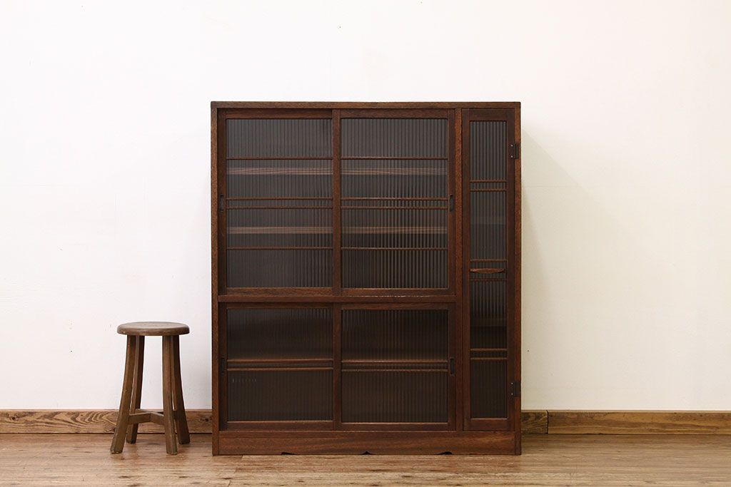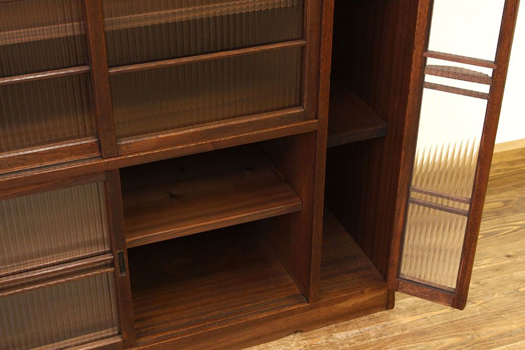 レトロ家具 アンティーク モールガラス入りレトロな特大下駄箱(収納棚)