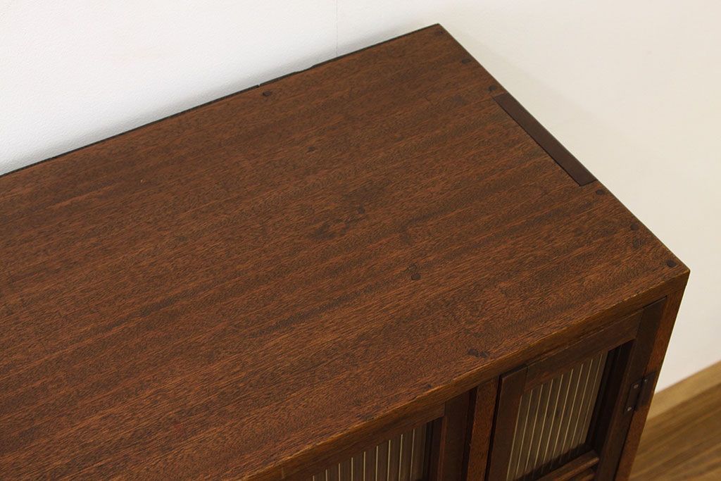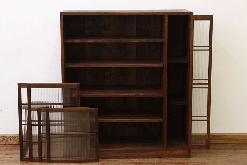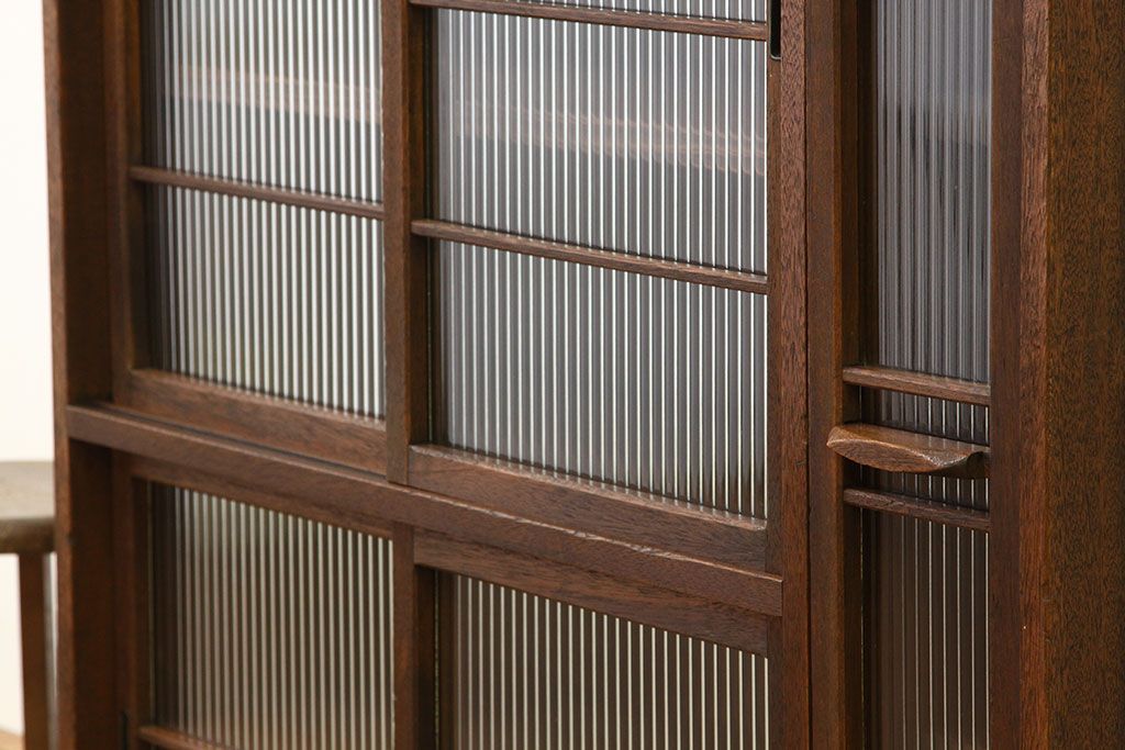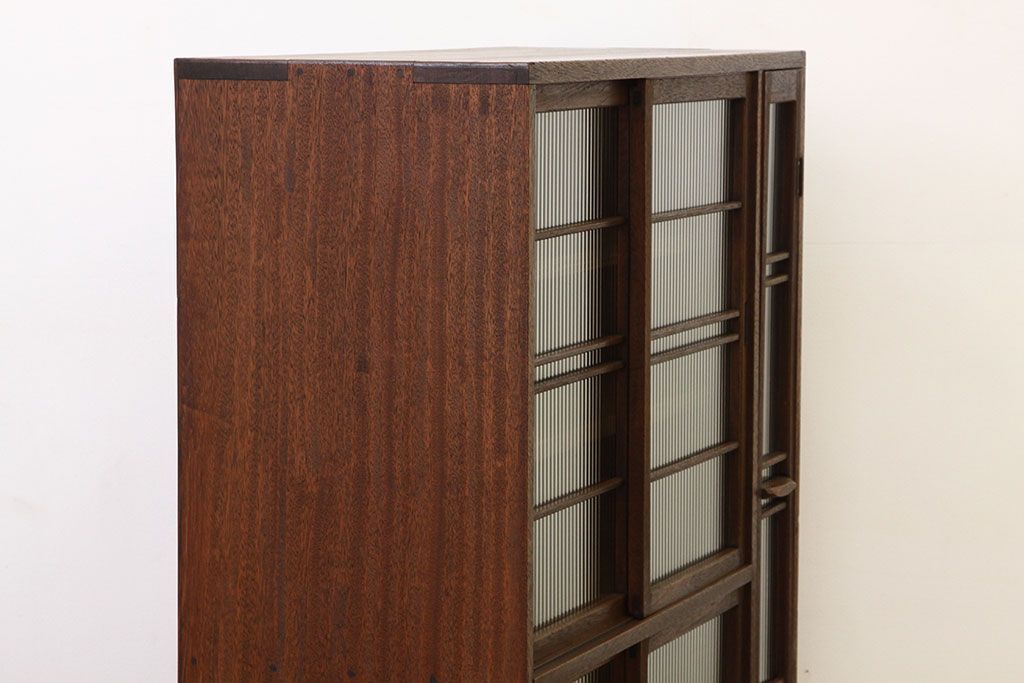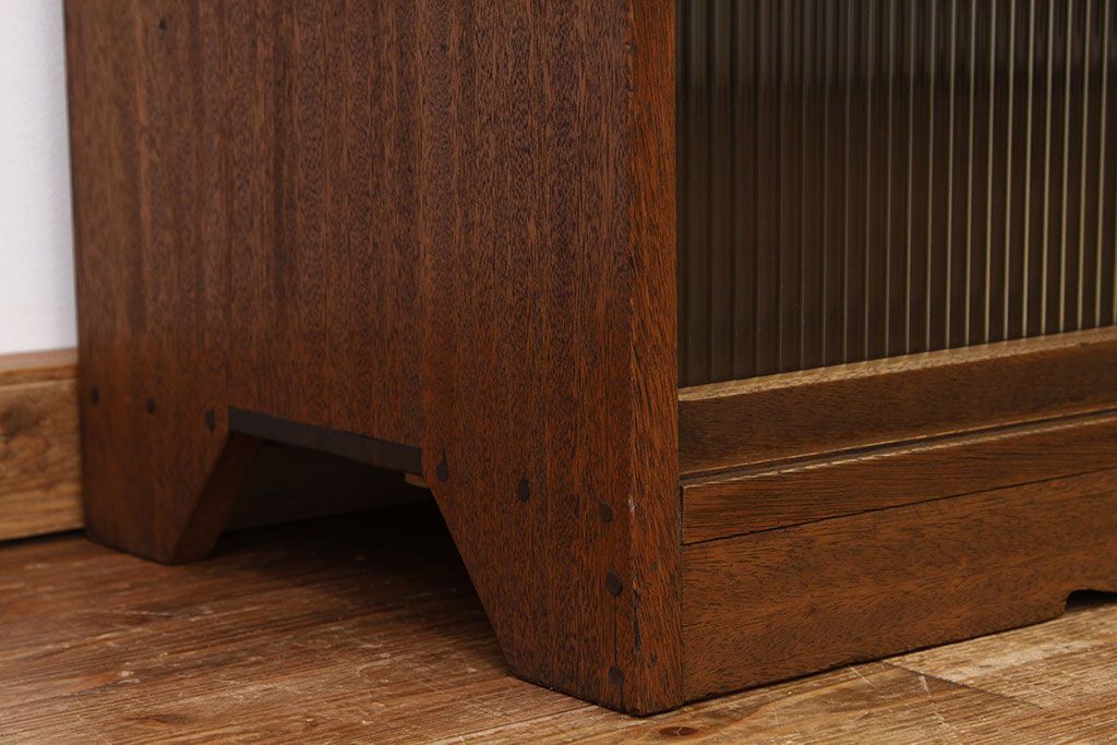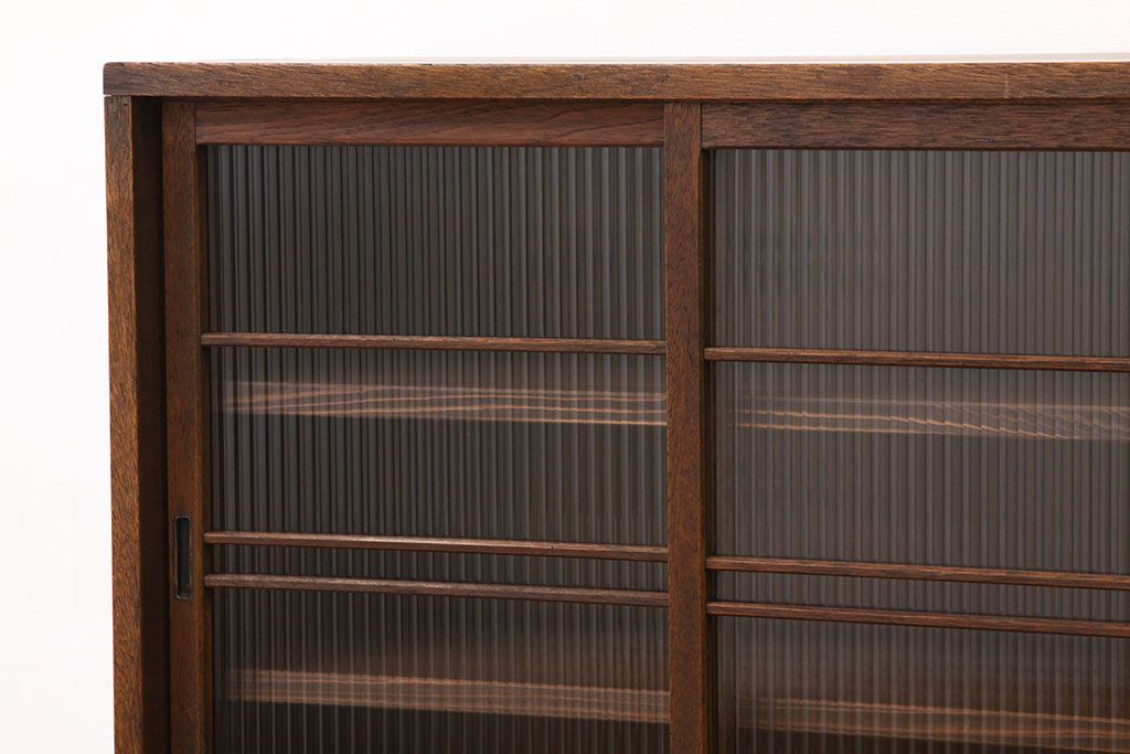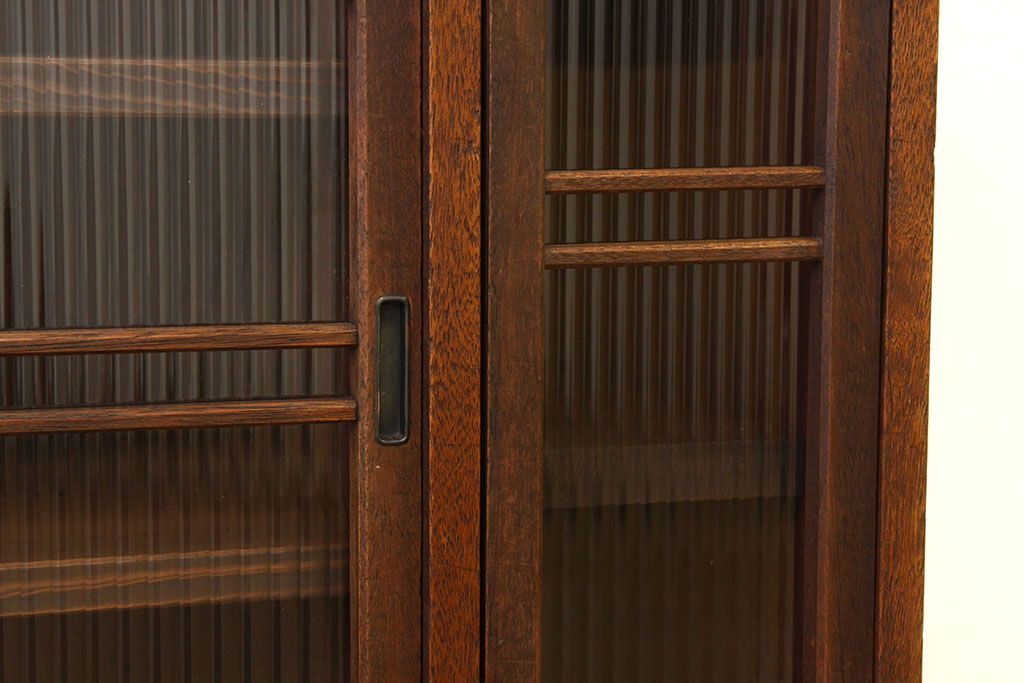 レトロ家具 アンティーク モールガラス入りレトロな特大下駄箱(収納棚)