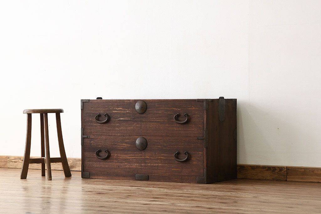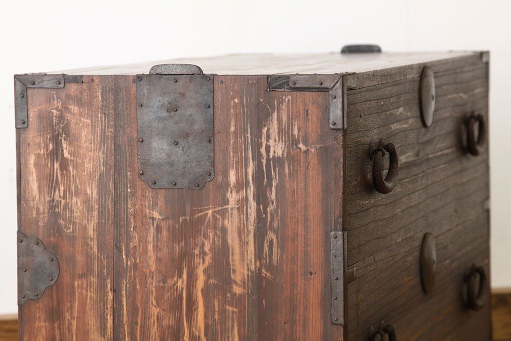 アンティーク家具 アンティーク 古い木の2杯引き出し時代箪笥ローチェスト