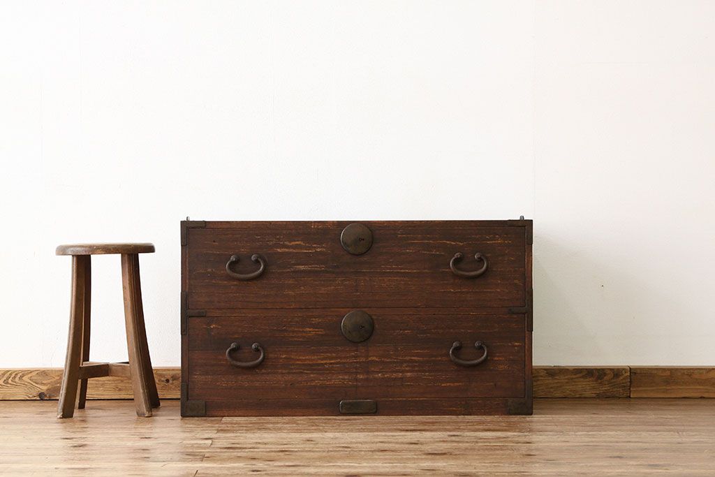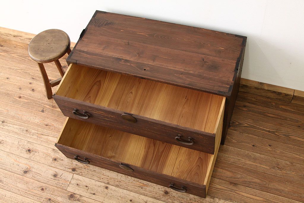 アンティーク 古い木の2杯引き出し時代箪笥ローチェストです。