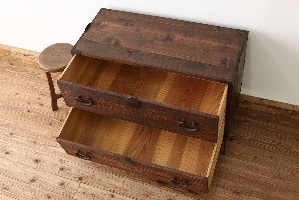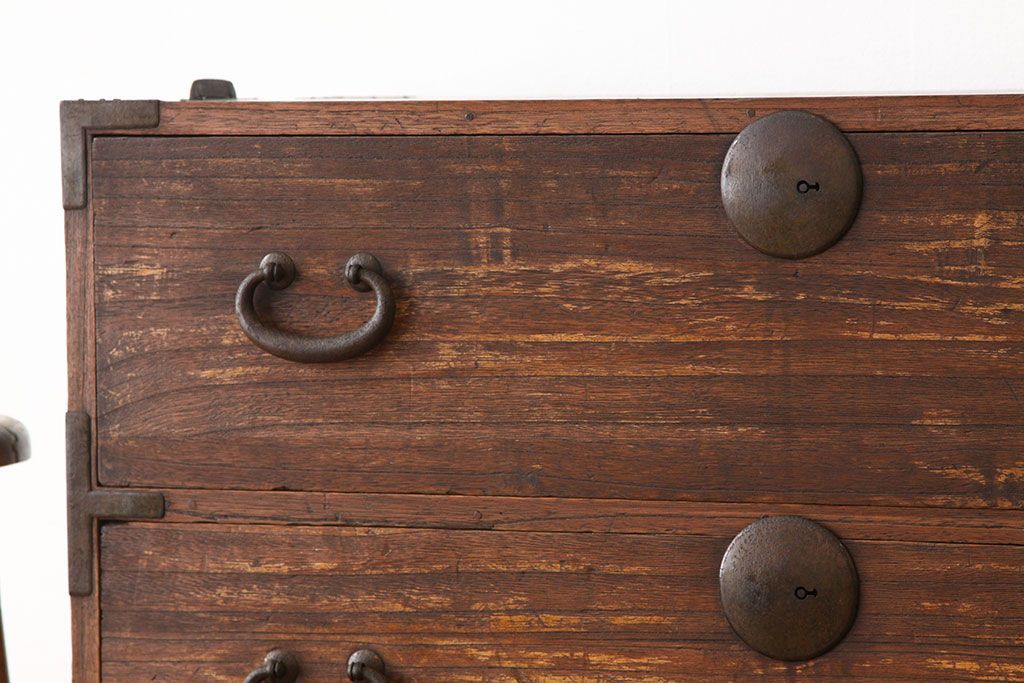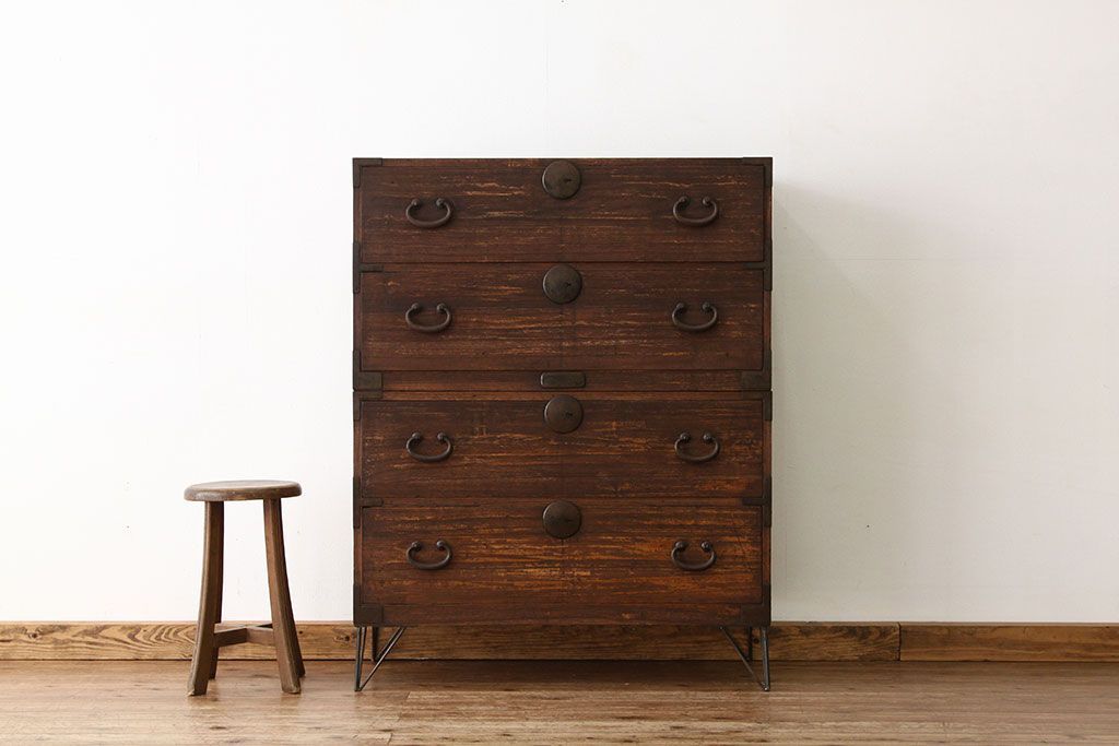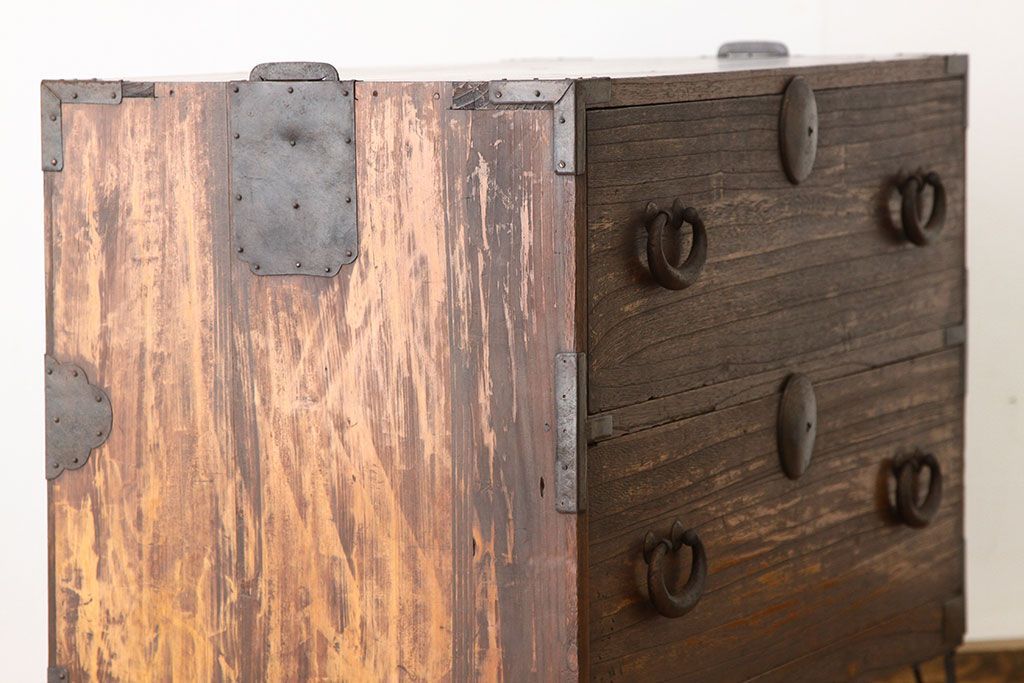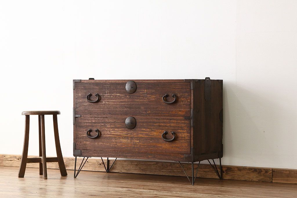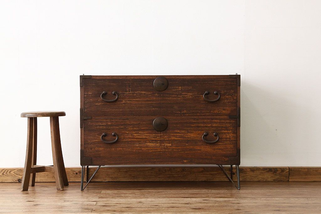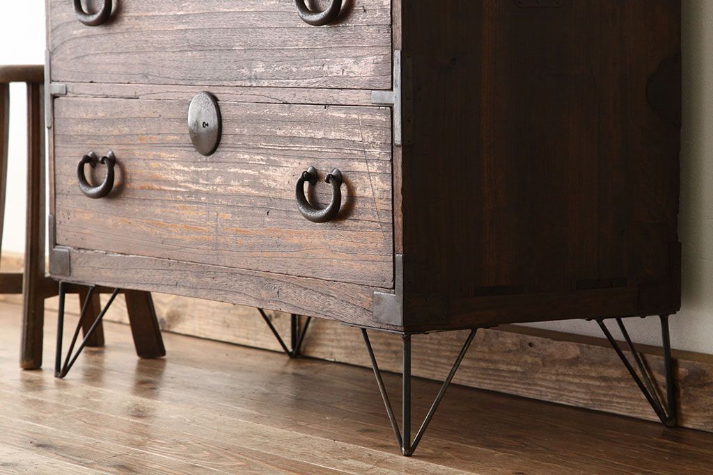 和箪笥> 衣装箪笥 > アンティーク家具 アンティーク 鉄脚付き2杯引き出しローチェスト(時代箪笥)