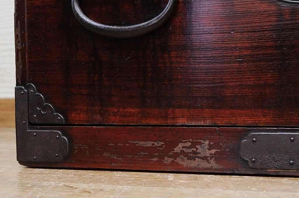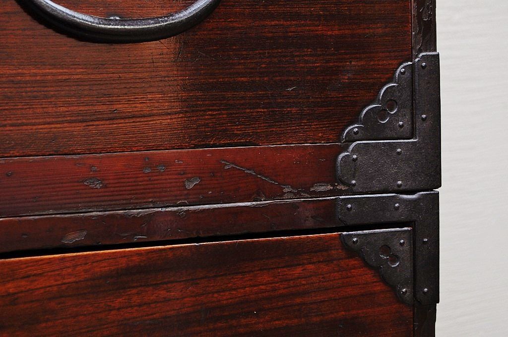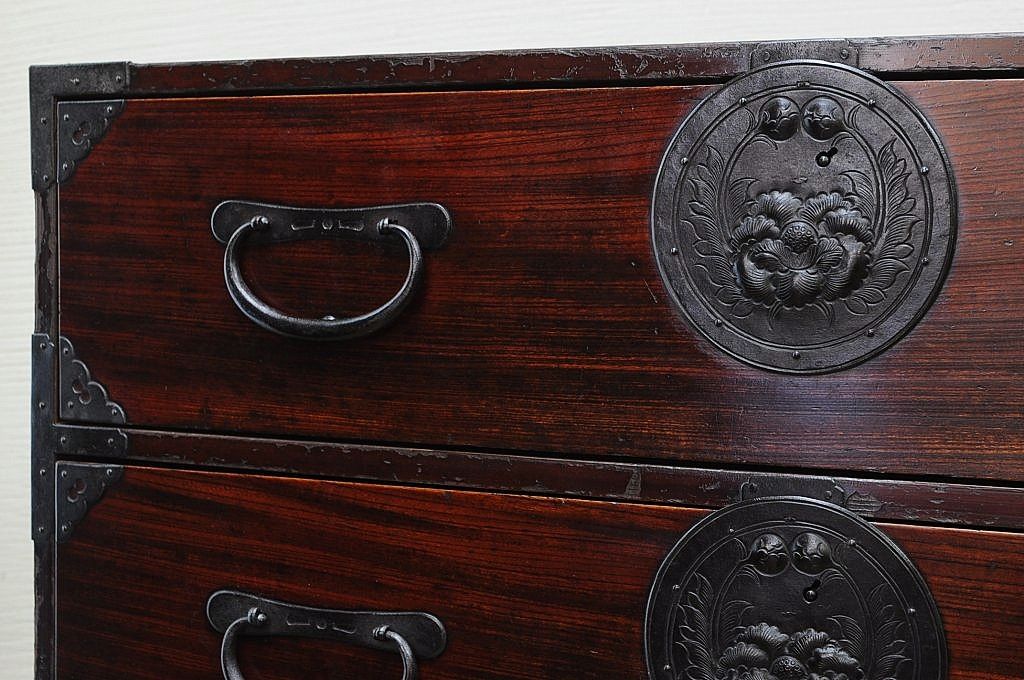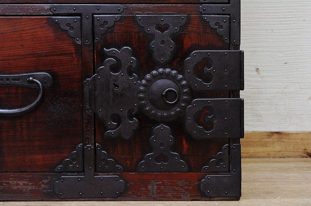 アンティーク家具 極上!前面欅の金具の細工が素晴らしい相馬箪笥
