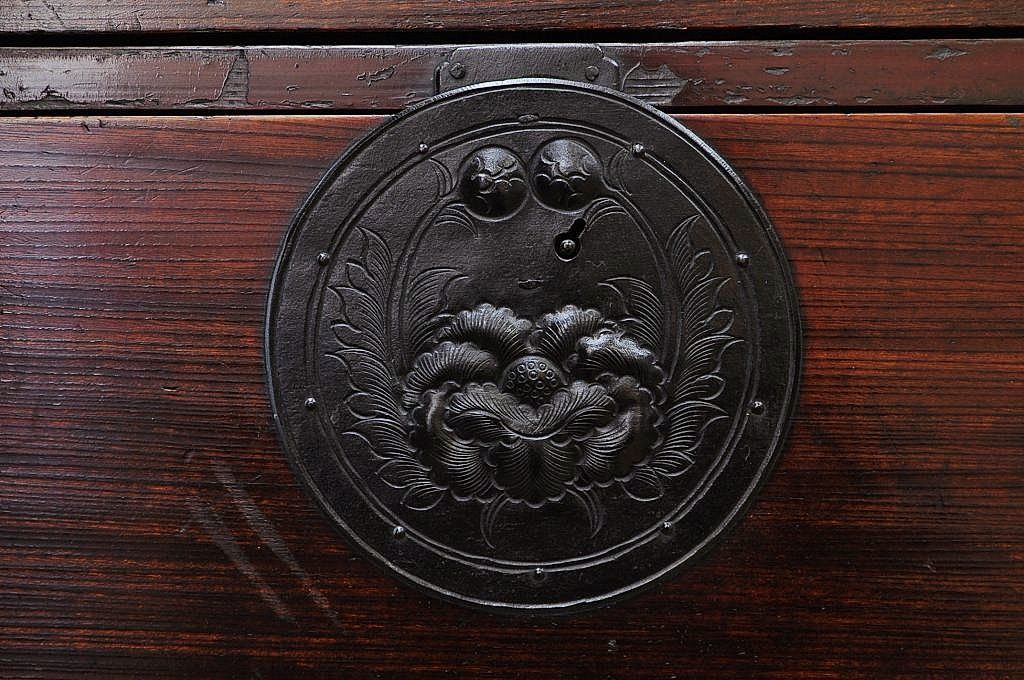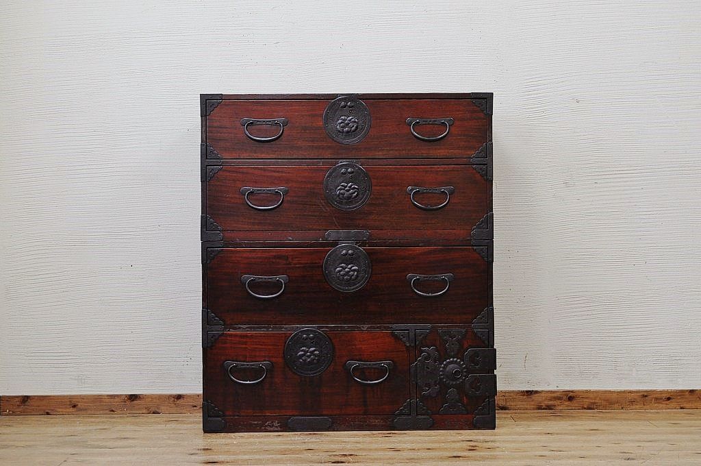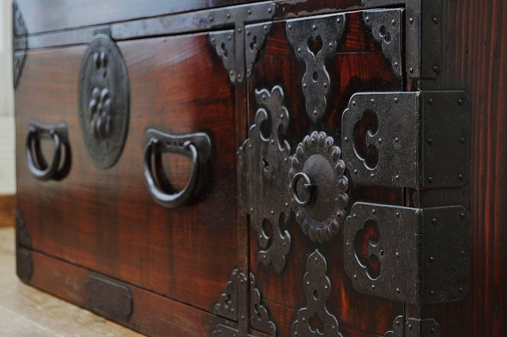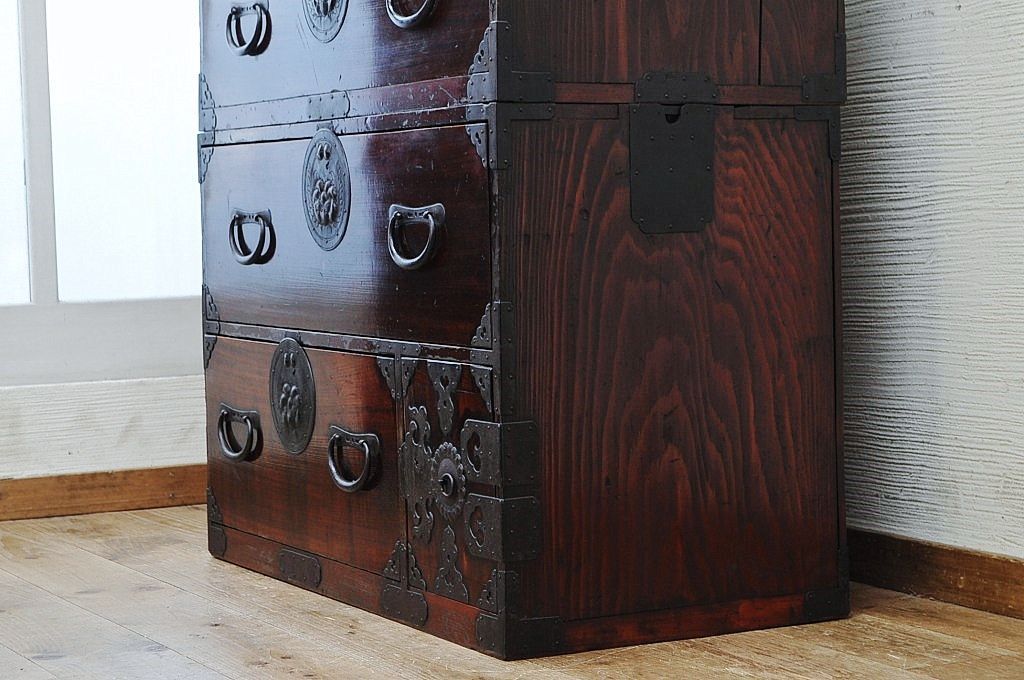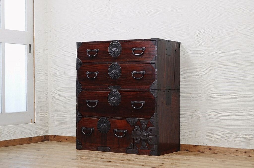 アンティーク家具 極上!前面欅の金具の細工が素晴らしい相馬箪笥