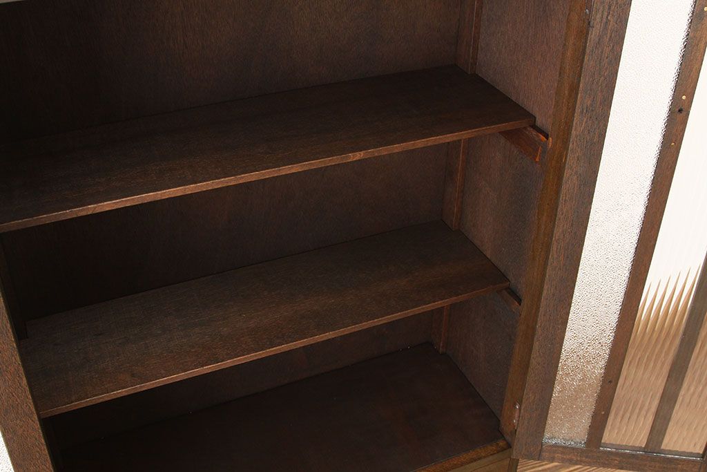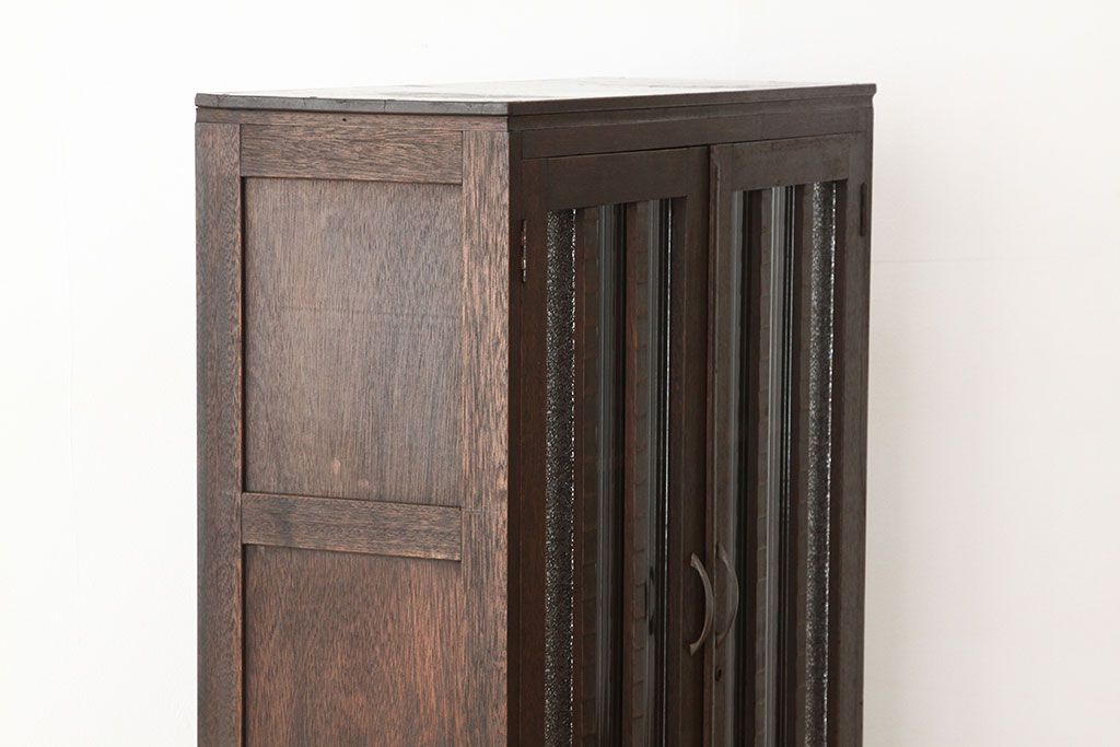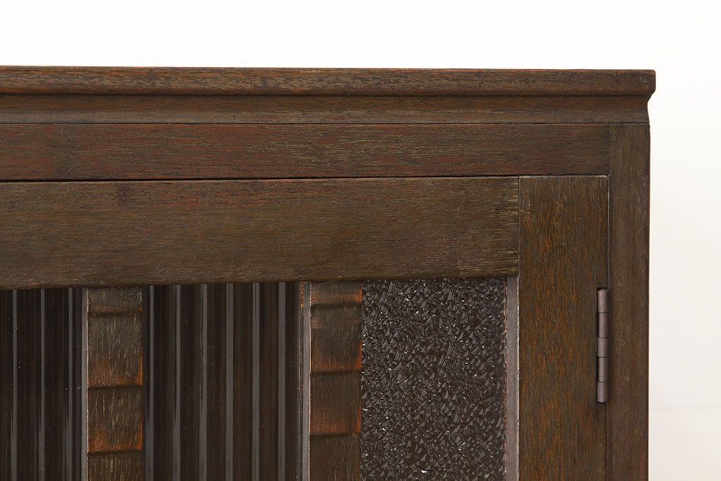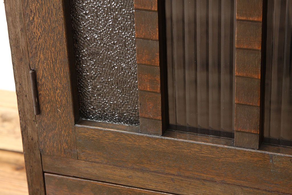 アンティーク家具 アンティーク 古い木のモールとダイヤガラス入り本箱(ブックケース)