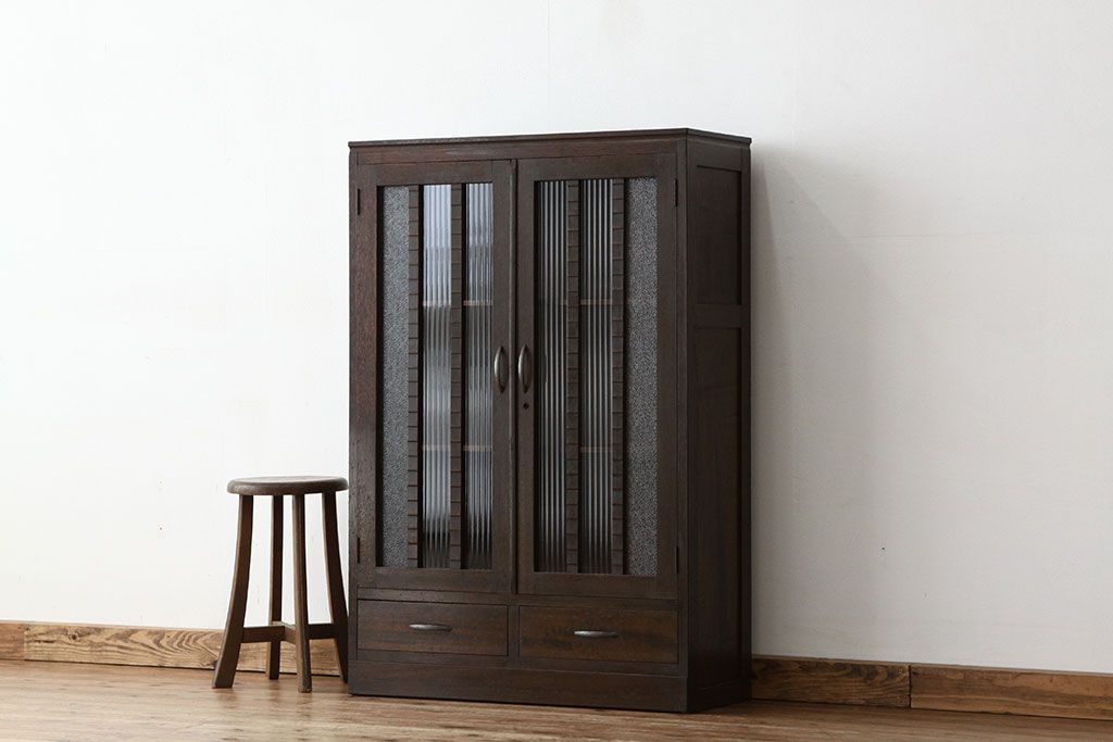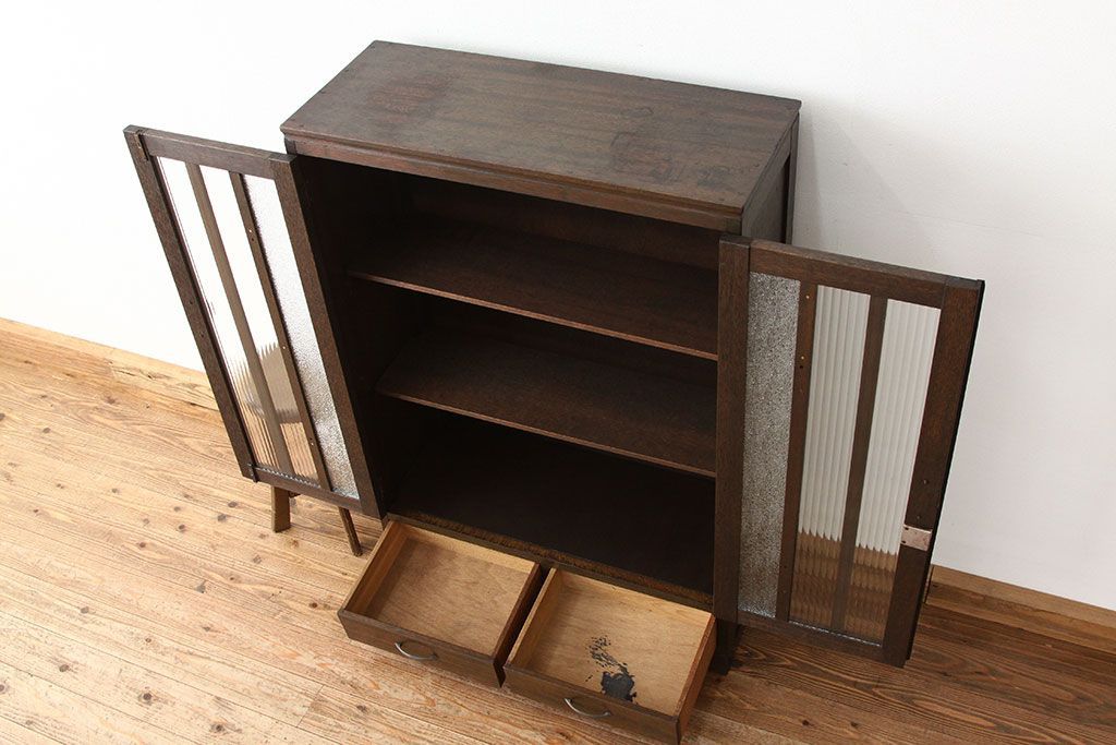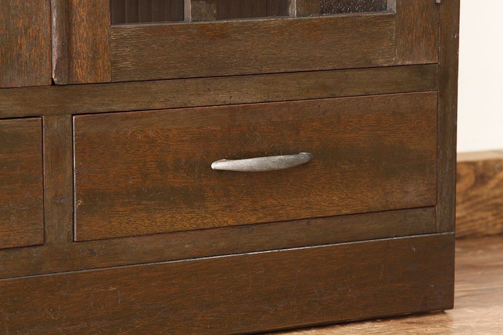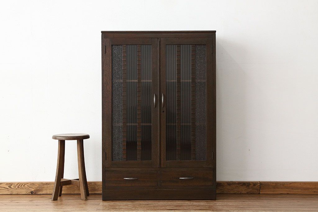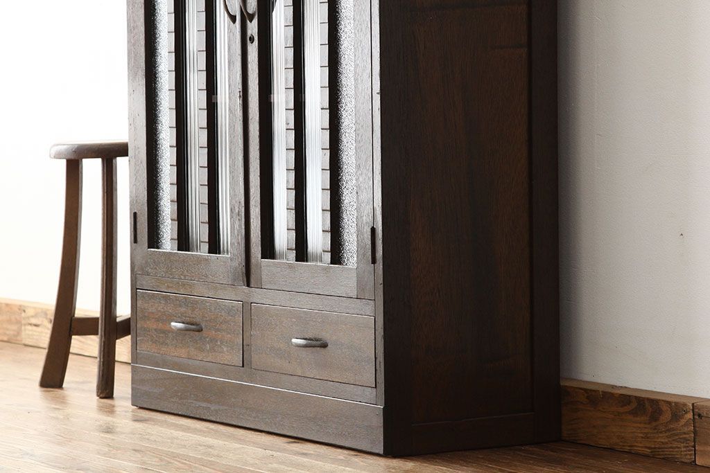 アンティーク家具 アンティーク 古い木のモールとダイヤガラス入り本箱(ブックケース)