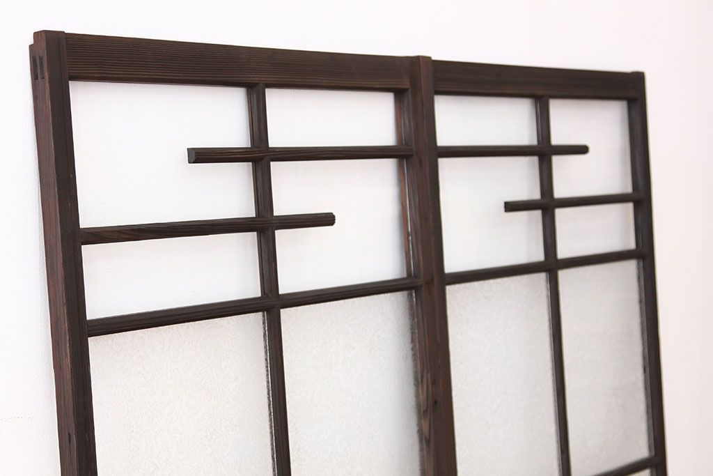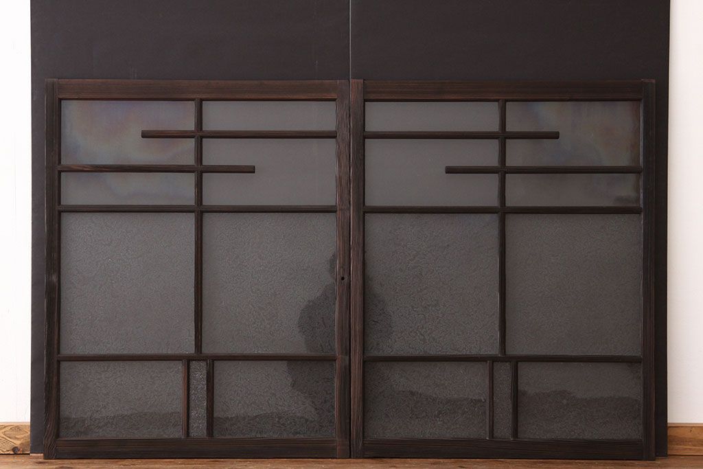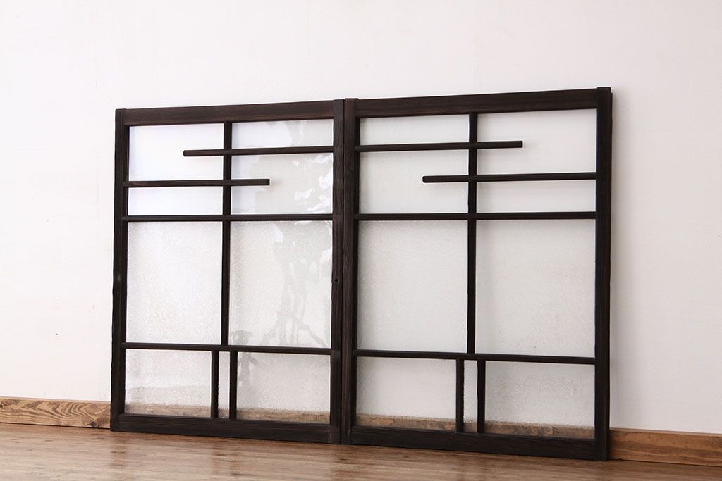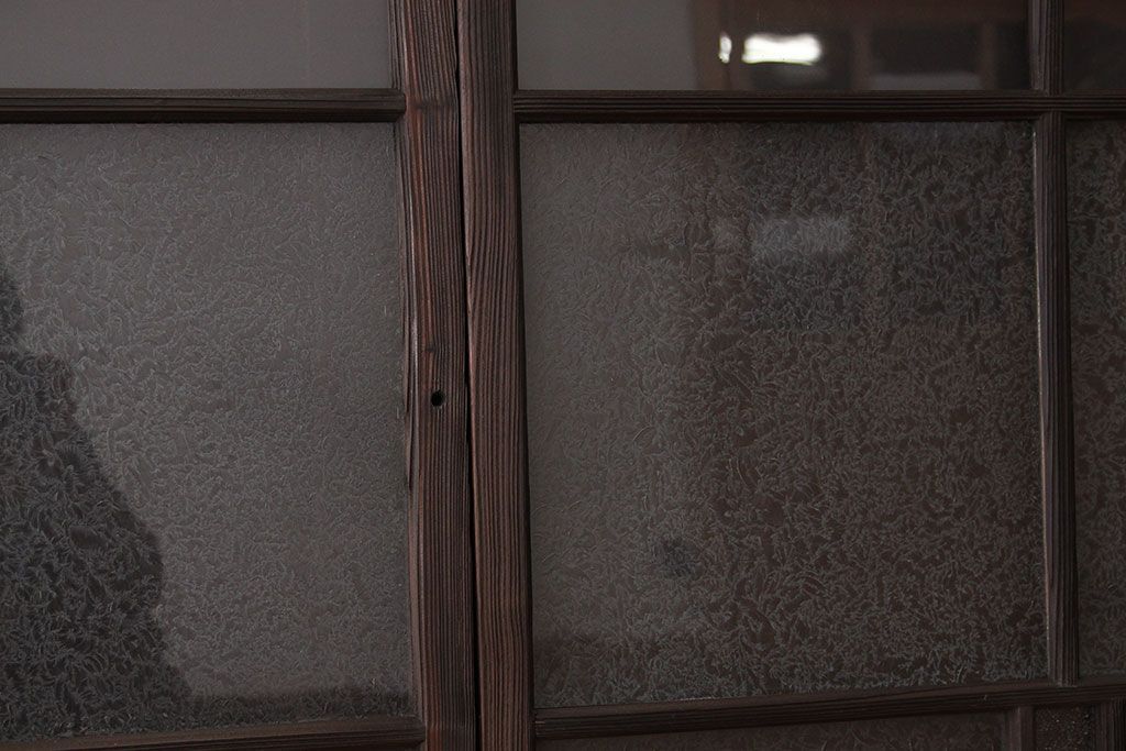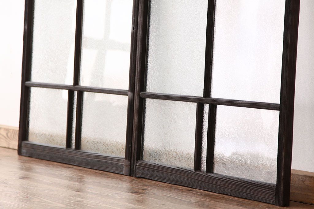 アンティーク 結霜ガラス入り使い込まれたガラス戸2枚セット(窓・引き戸)