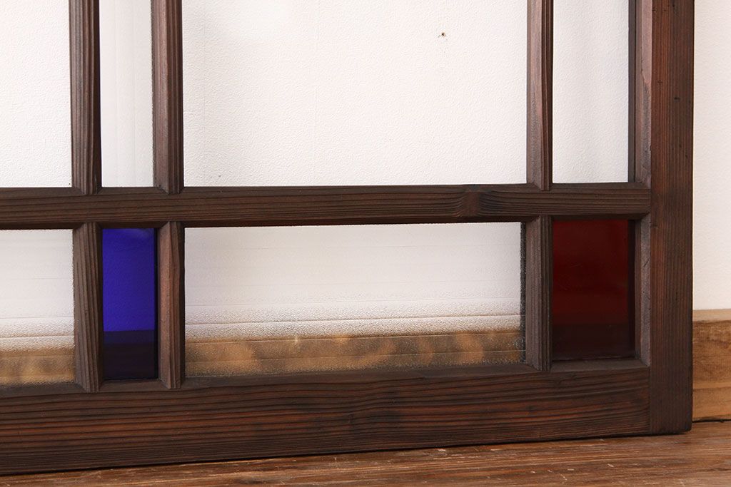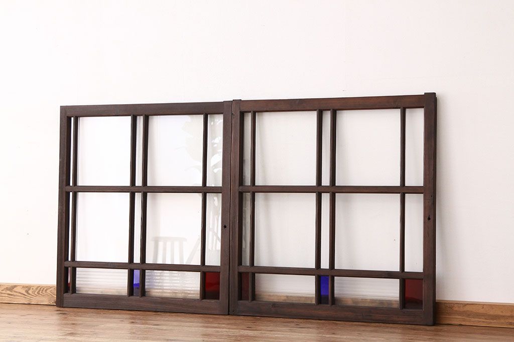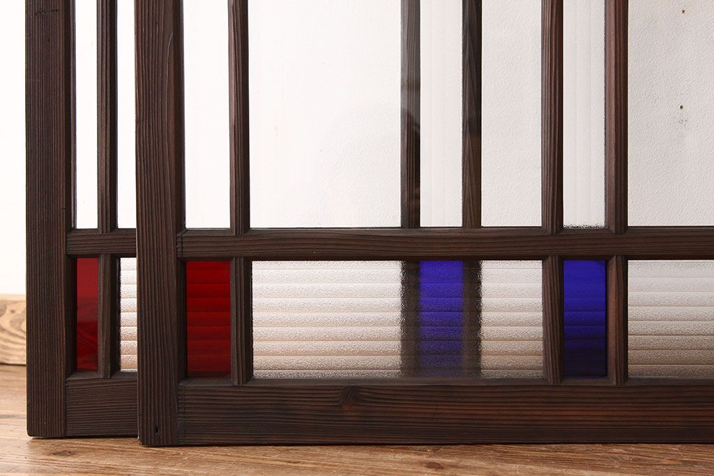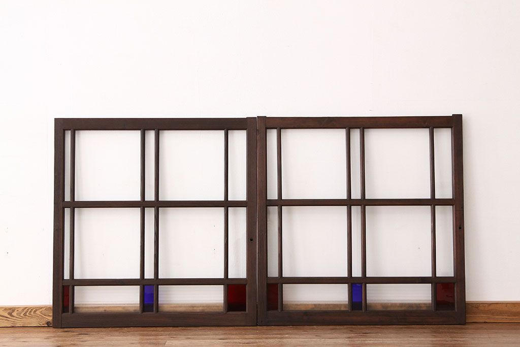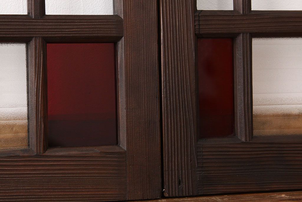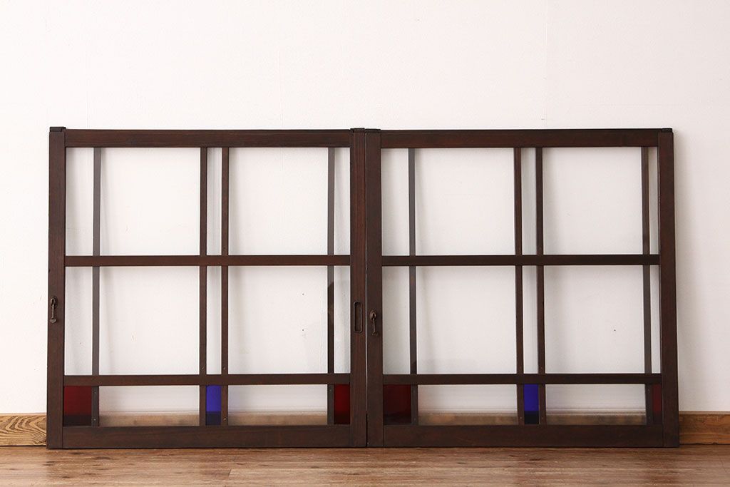 アンティーク 素敵なデザインの銀モールと色ガラス入り引き戸2枚セット?(ガラス戸・窓)