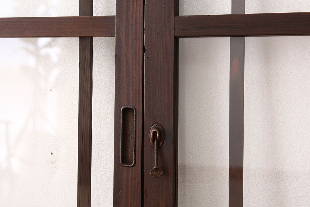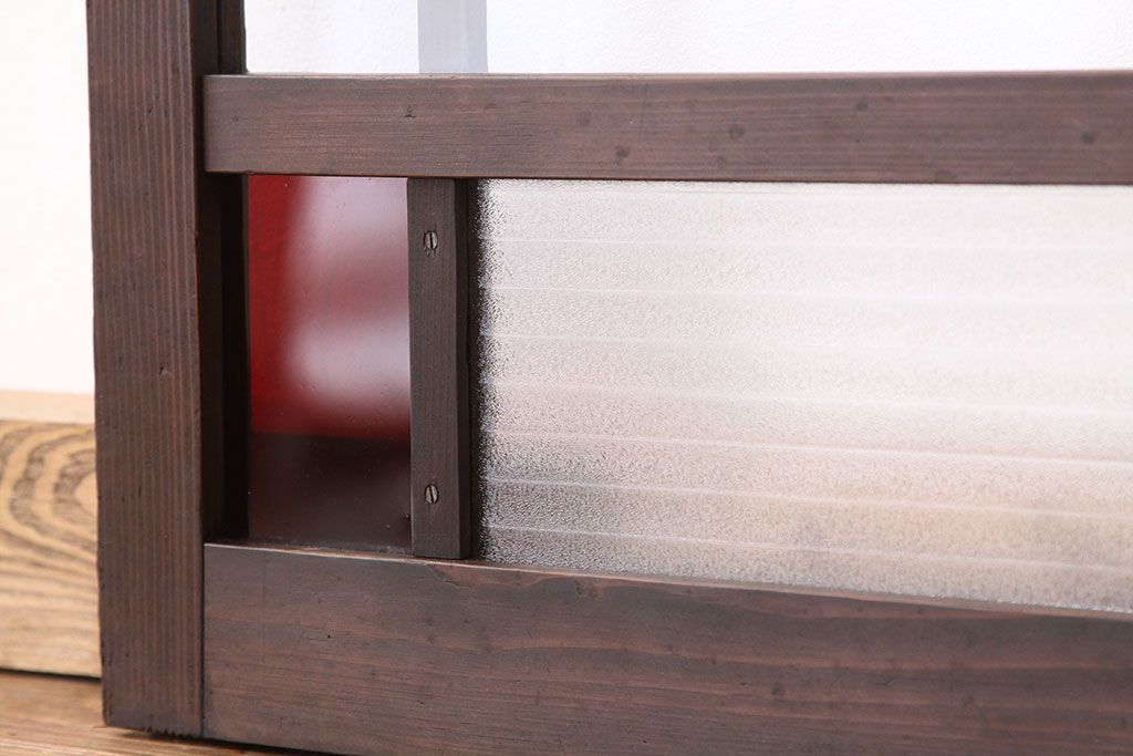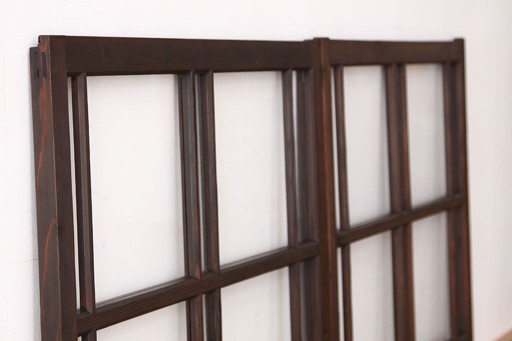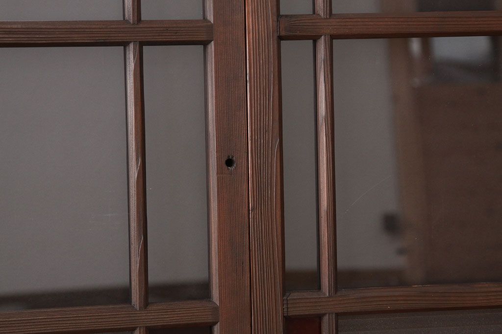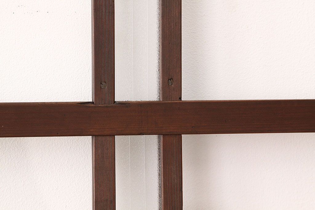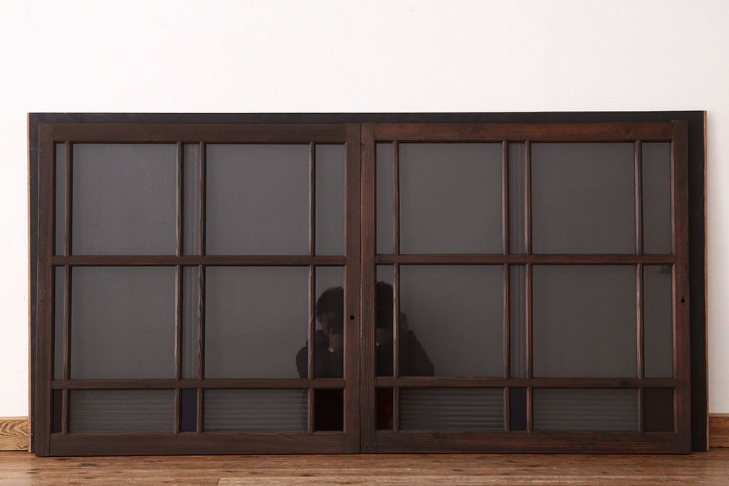 アンティーク 素敵なデザインの銀モールと色ガラス入り引き戸2枚セット?(ガラス戸・窓)