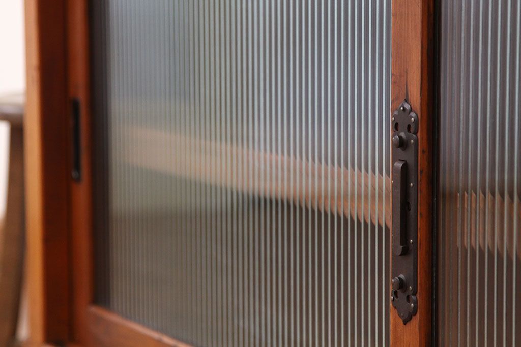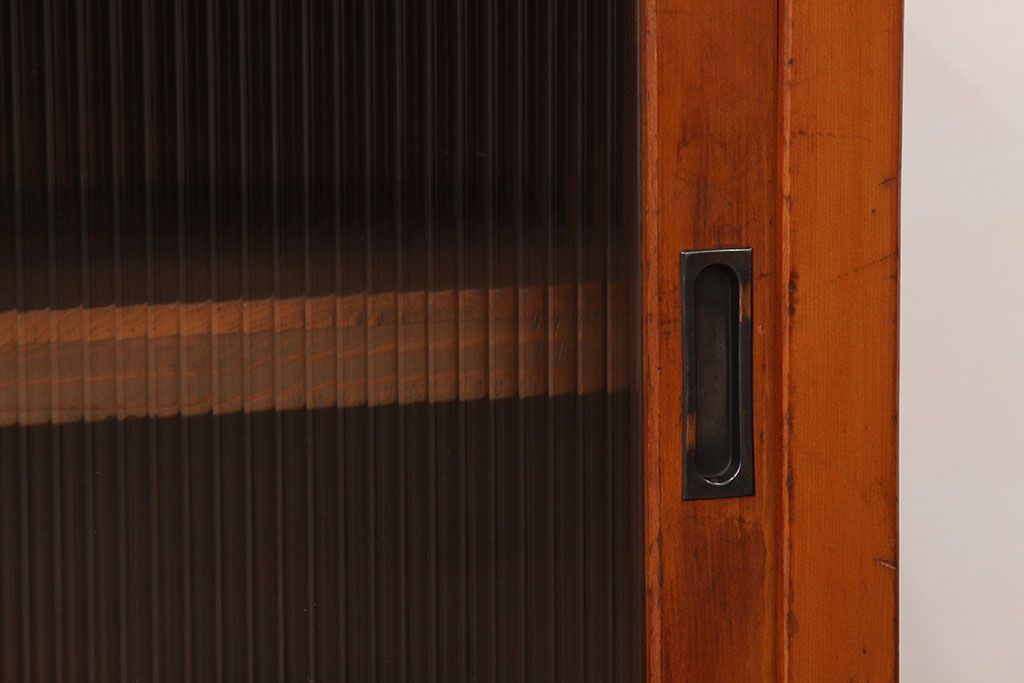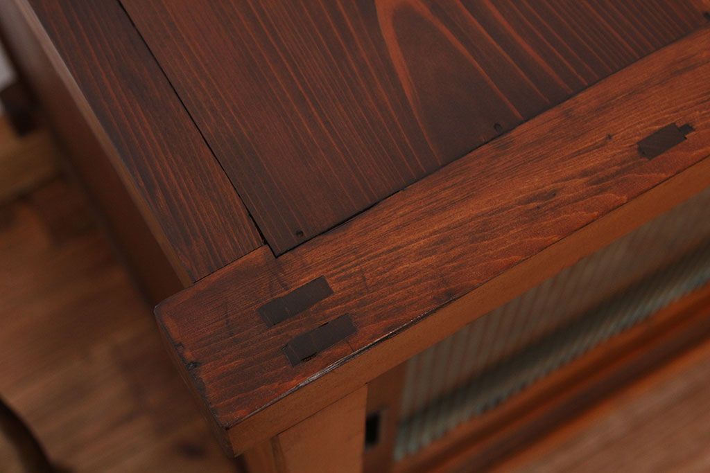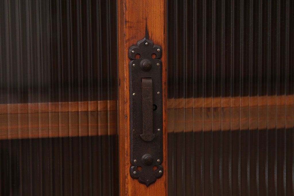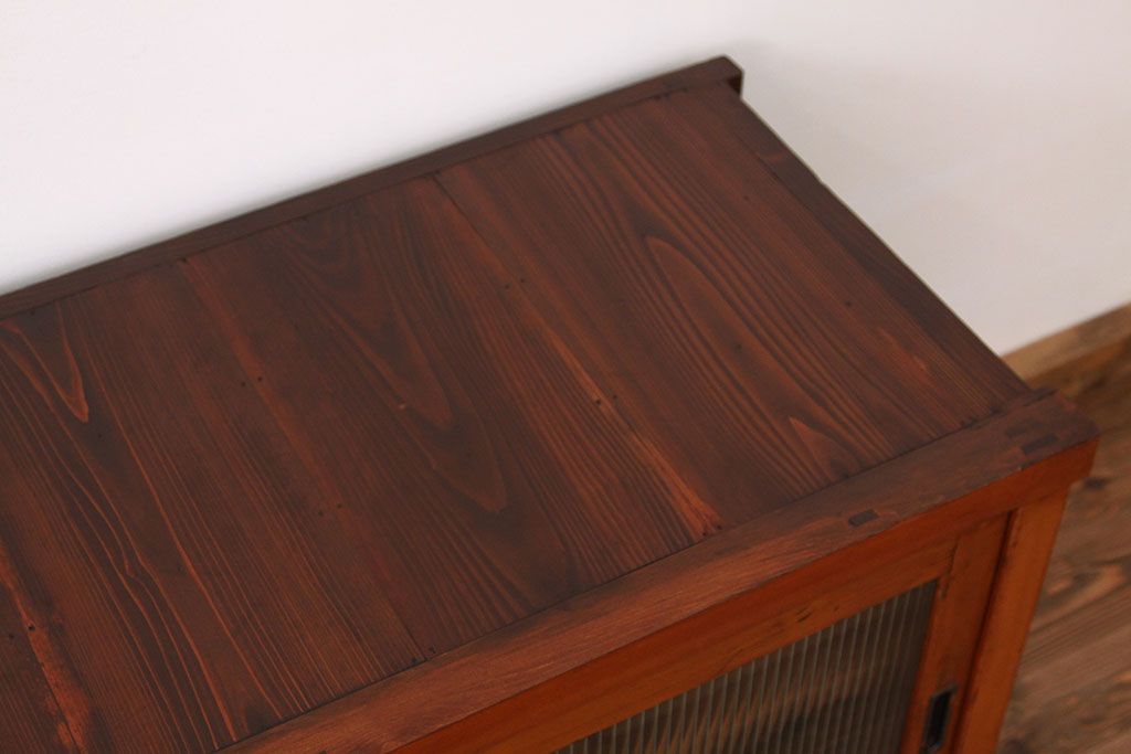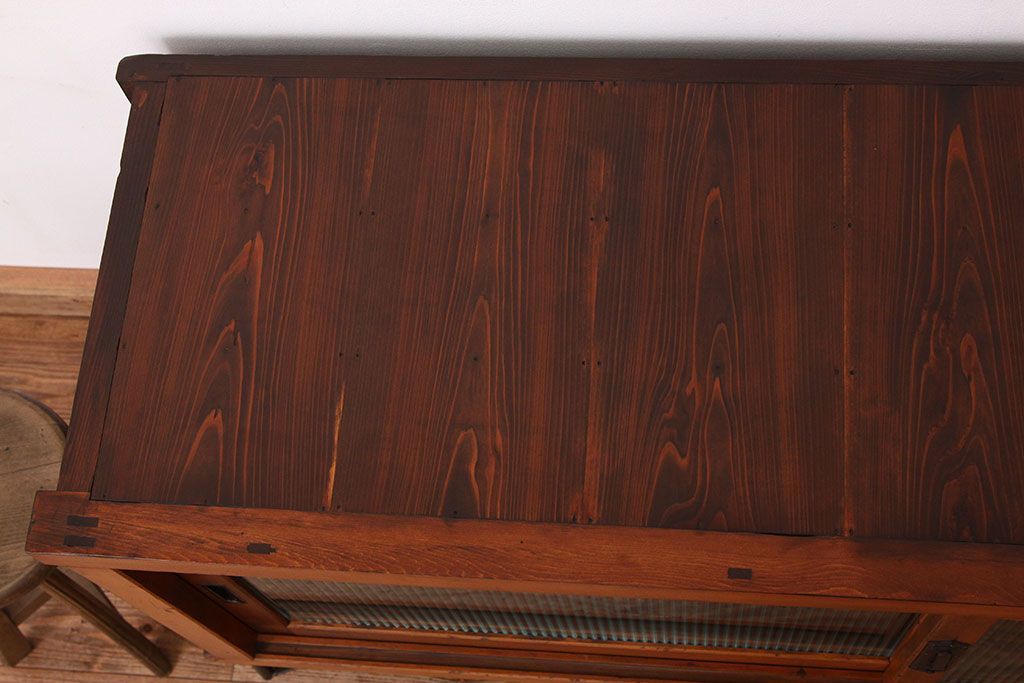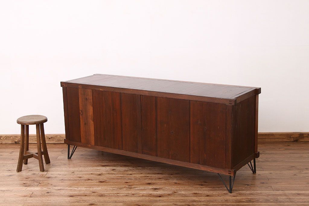 アンティーク家具 アンティーク 古い木のモールガラス入り鉄脚付き収納棚(ローボード)