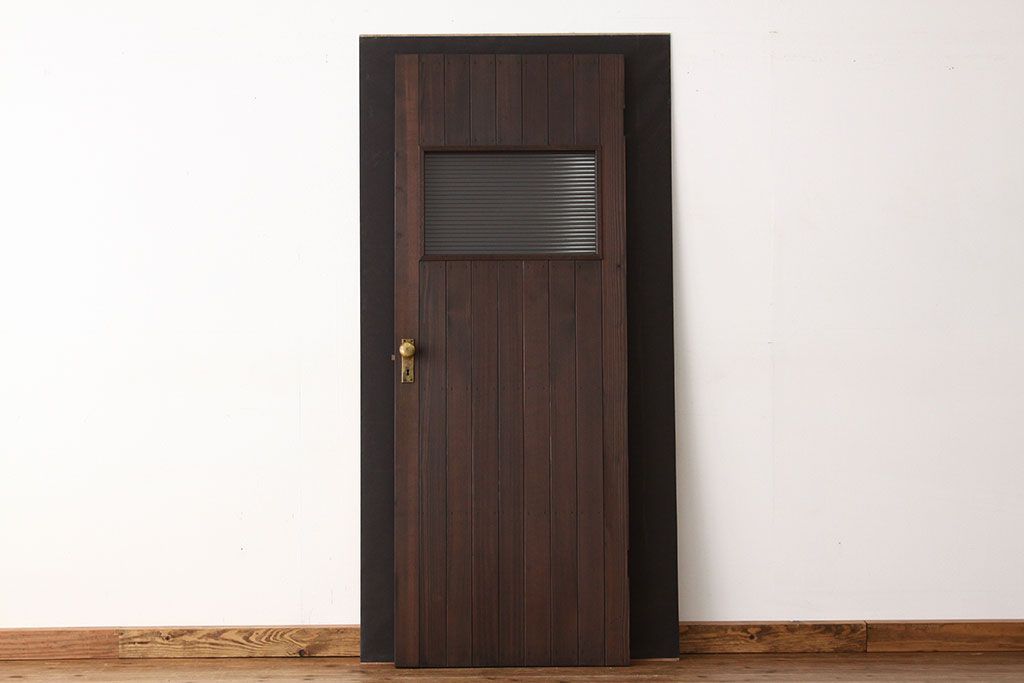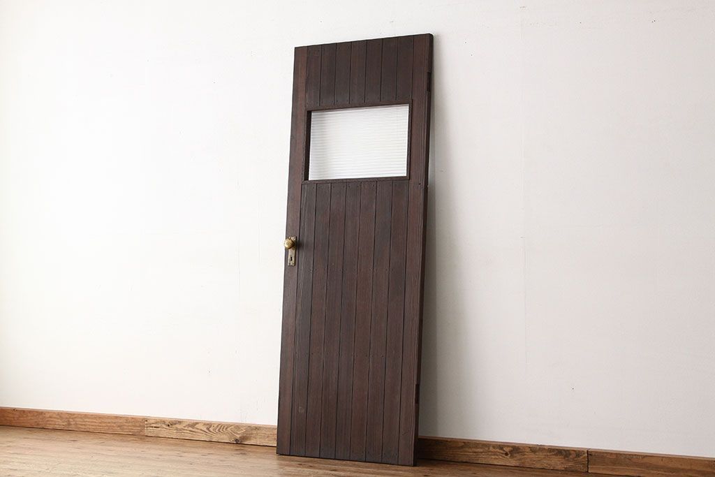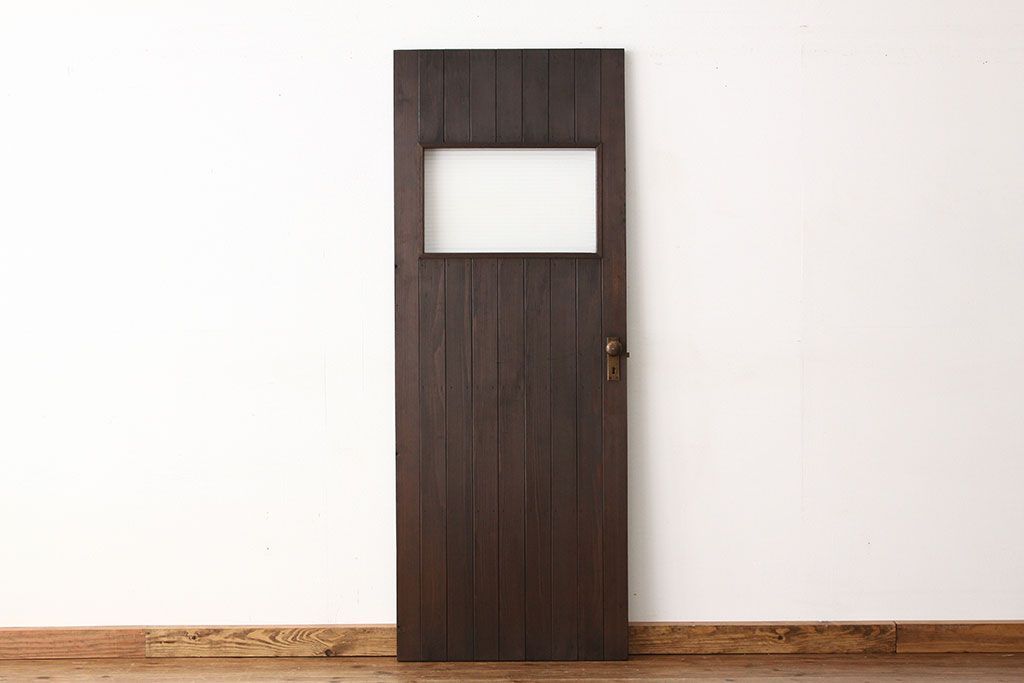 アンティーク 古い木のモールガラス入りドア1枚(扉・建具)です。
