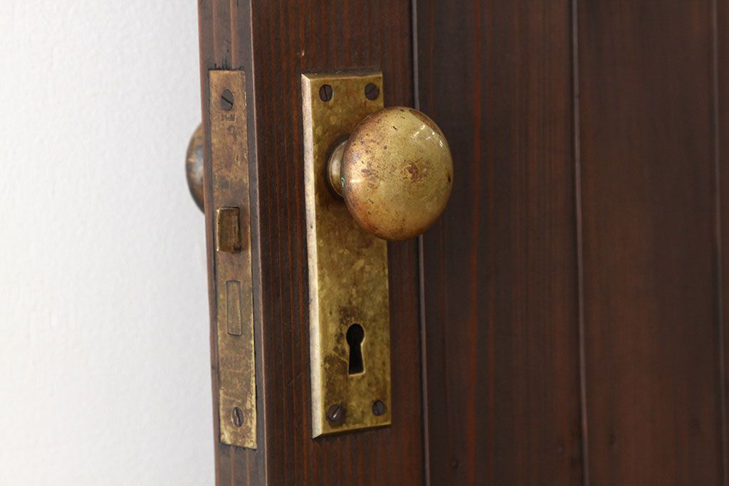 アンティーク 古い木のモールガラス入りドア1枚(扉・建具)