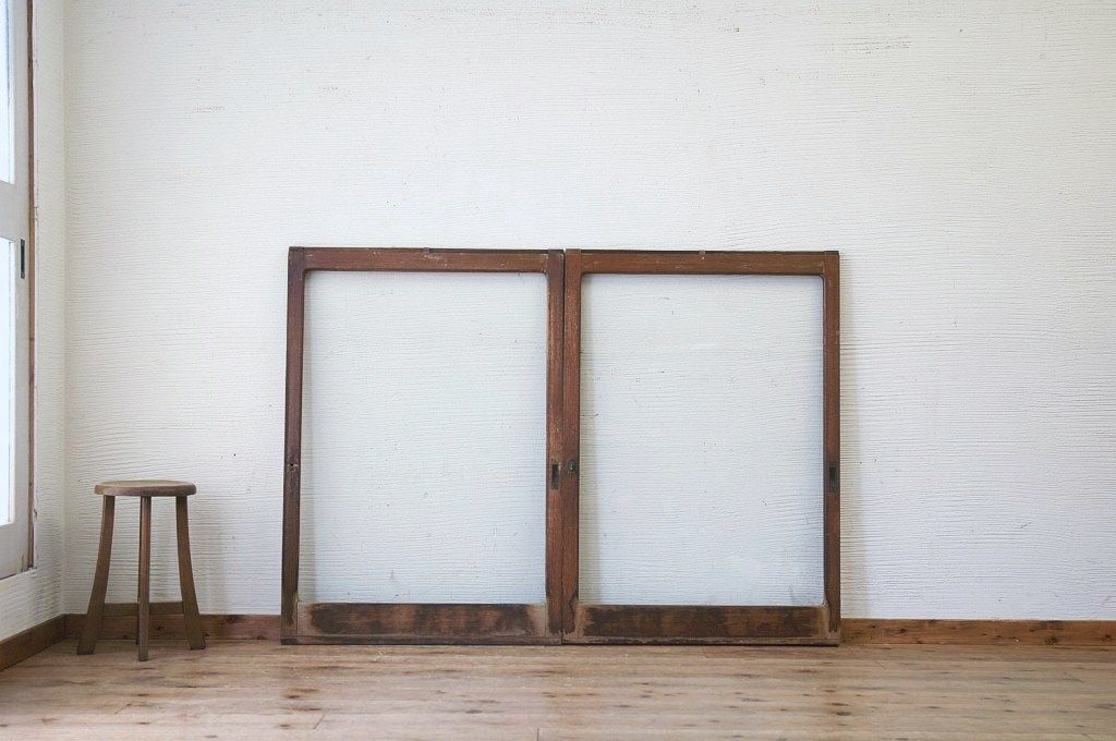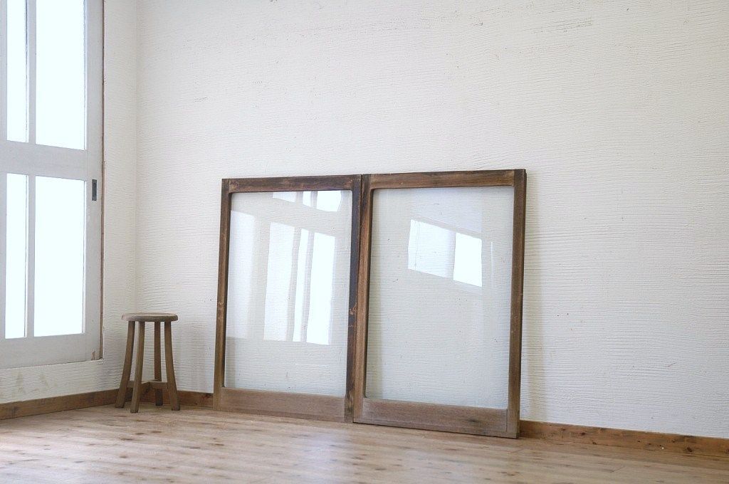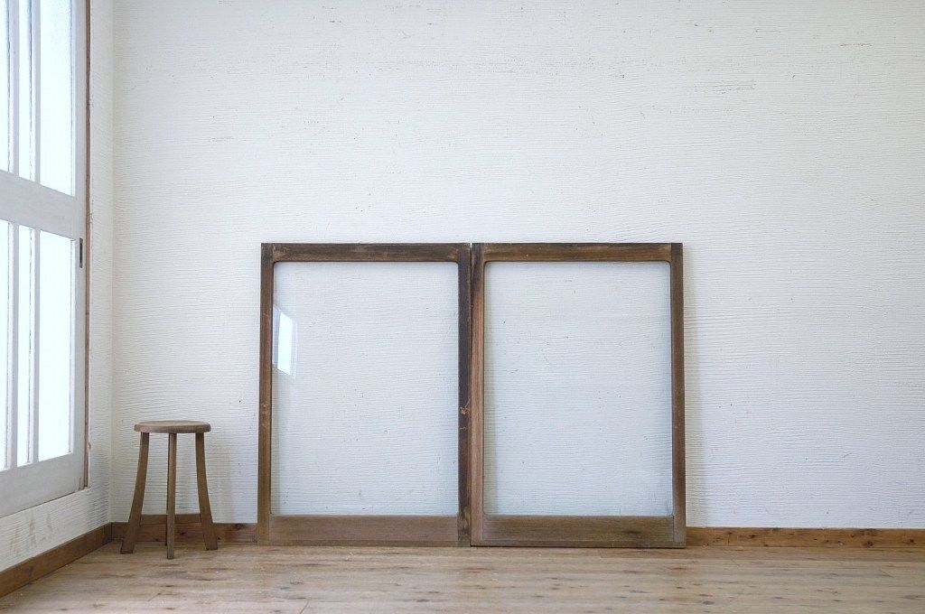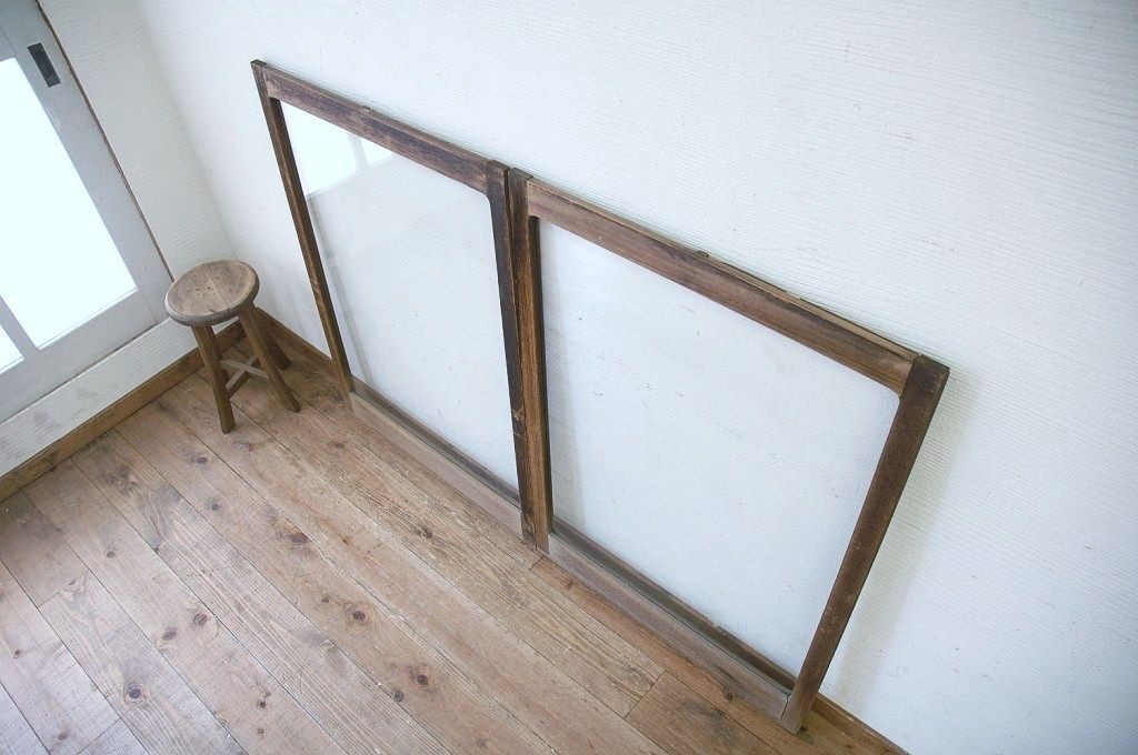 古い木のシンプルなガラス戸2枚セット6(窓)