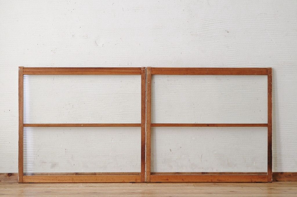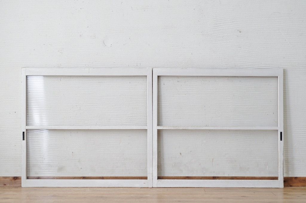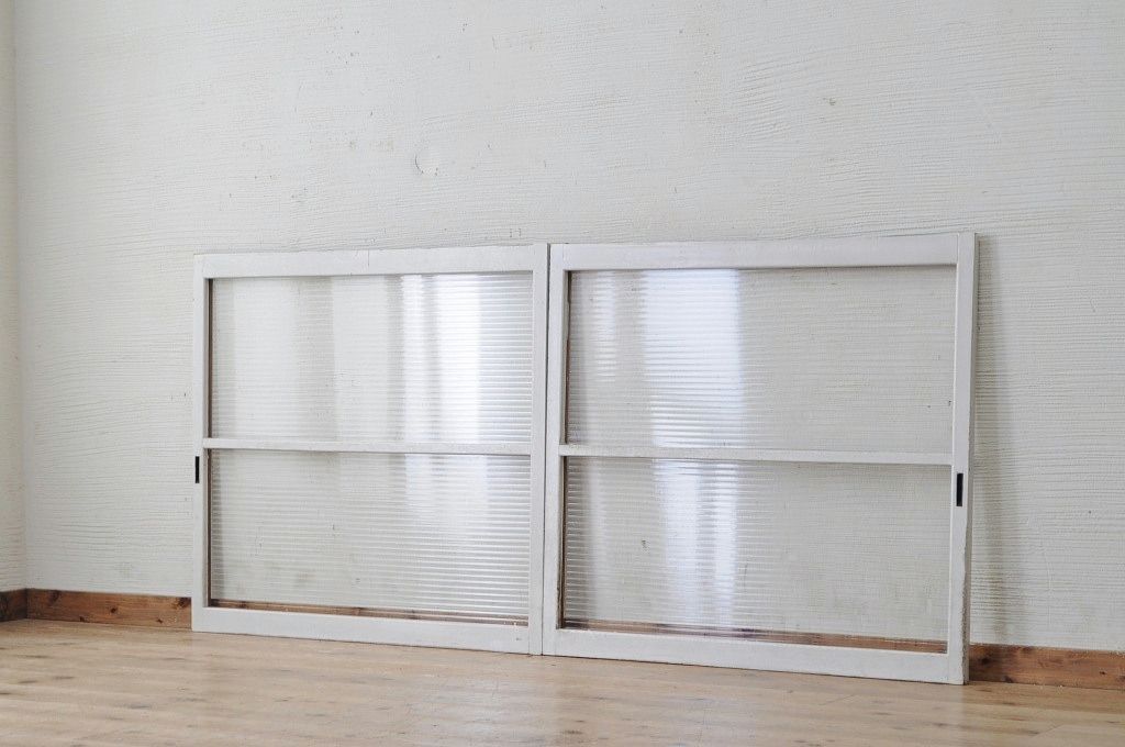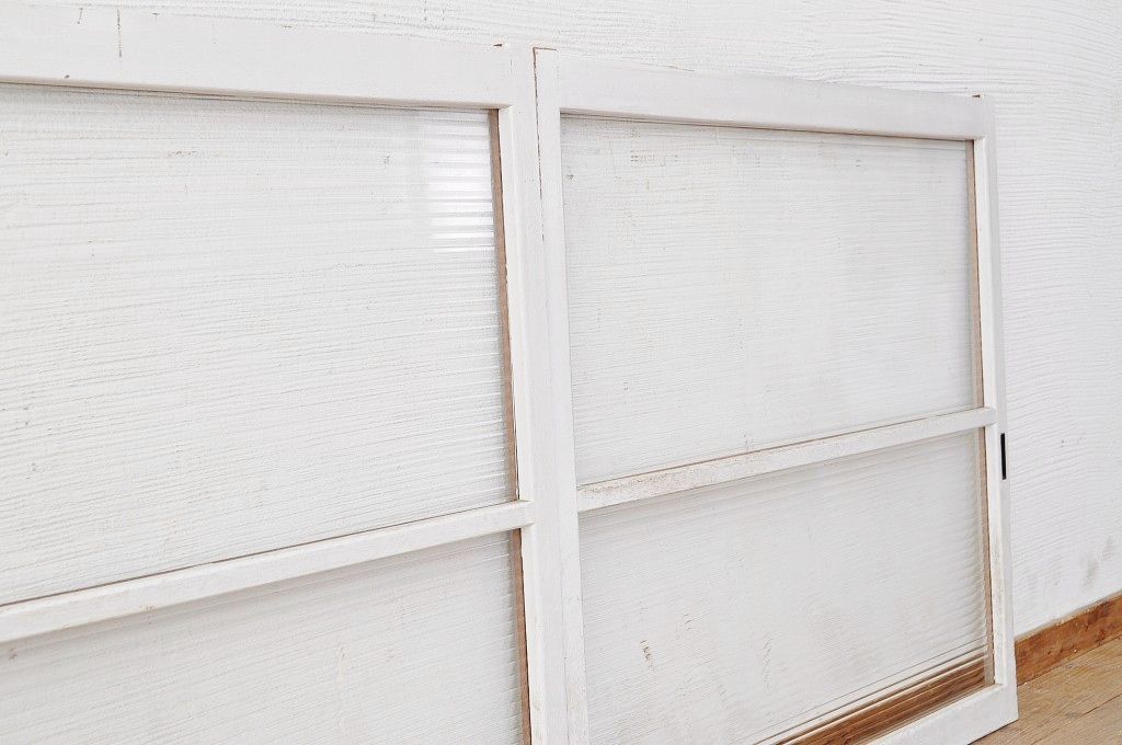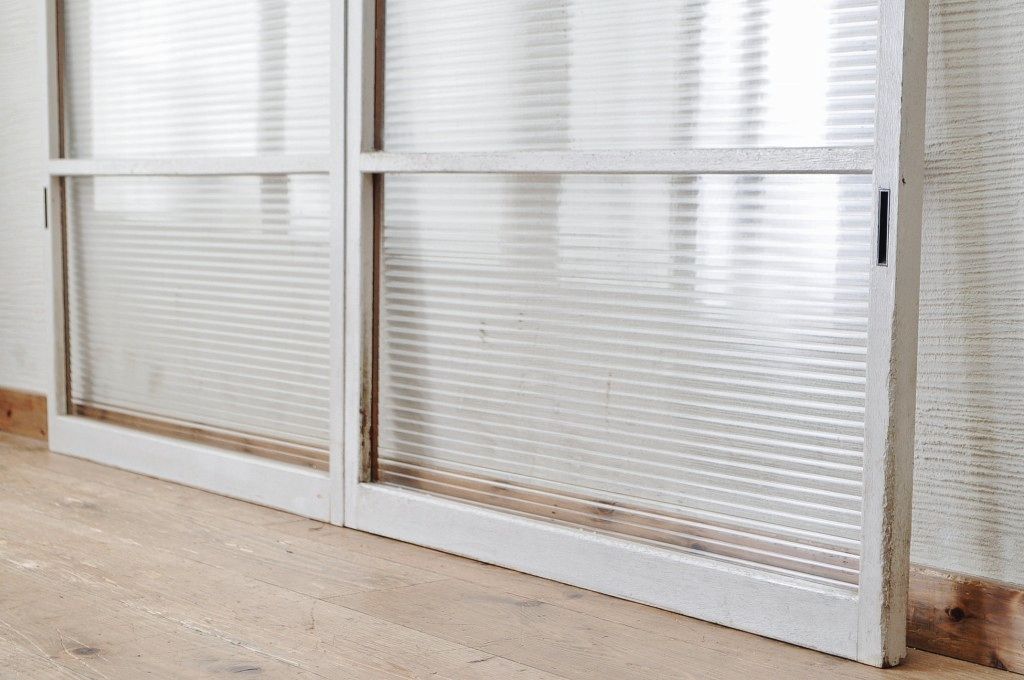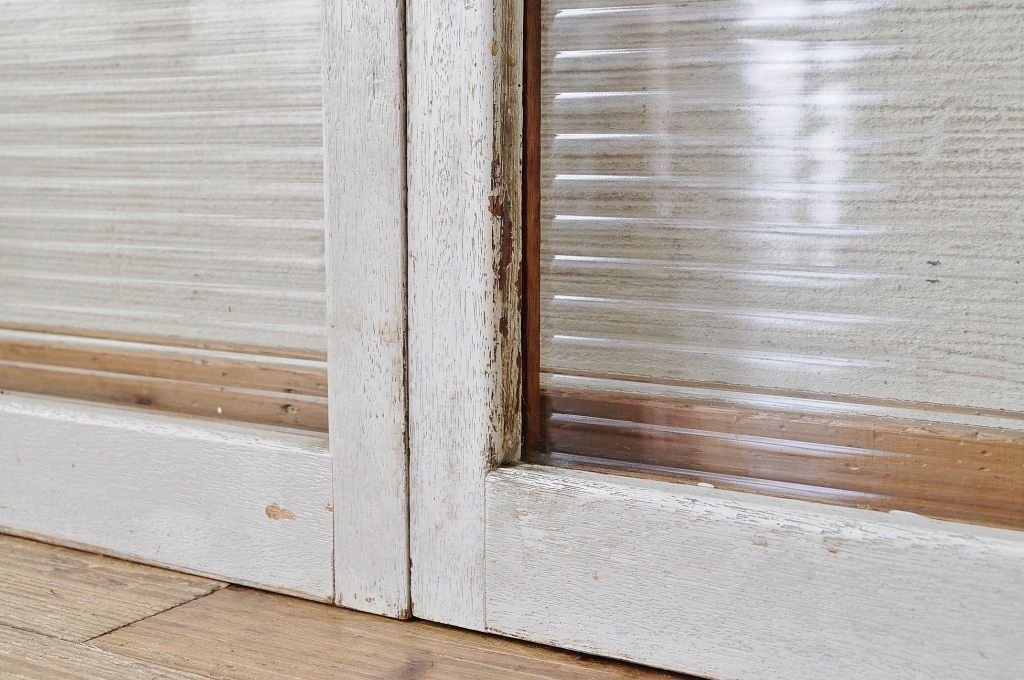 ペンキの剥げたレトロなモールガラス引き戸2枚セット