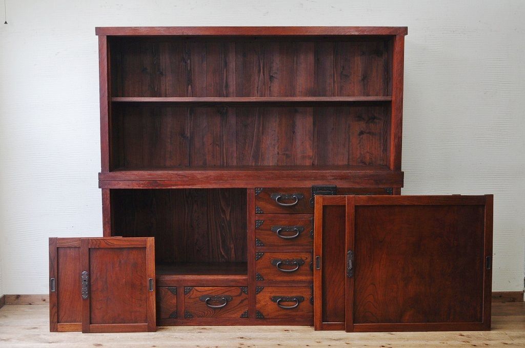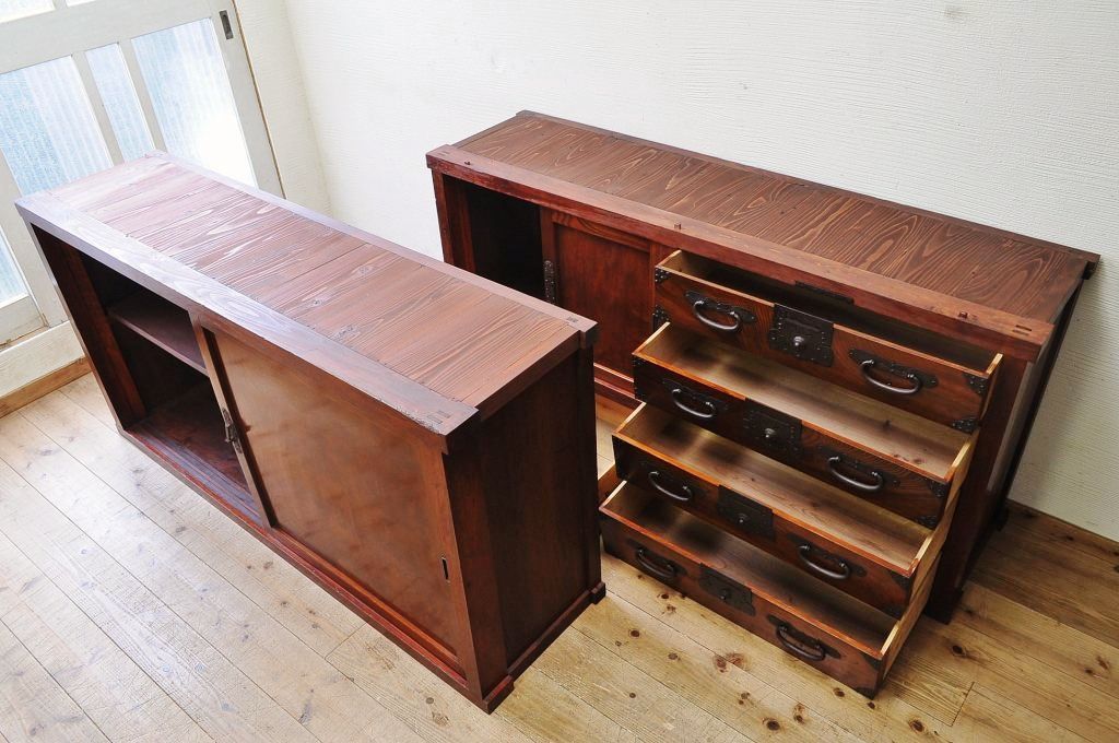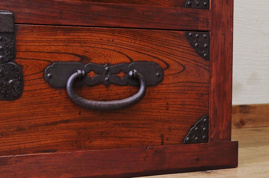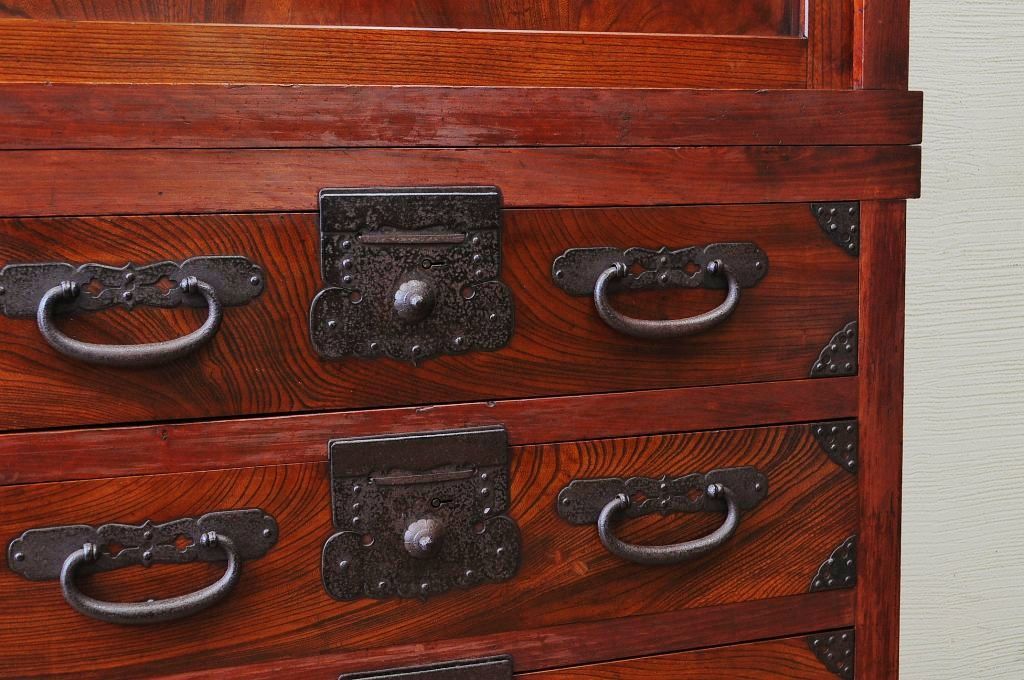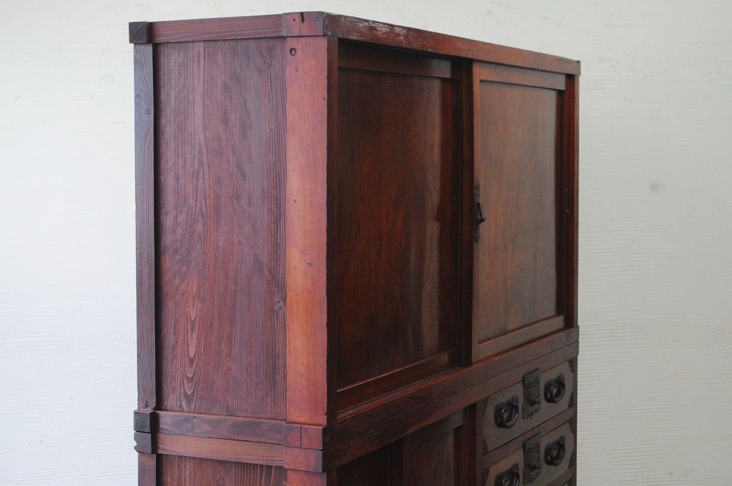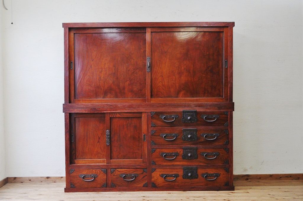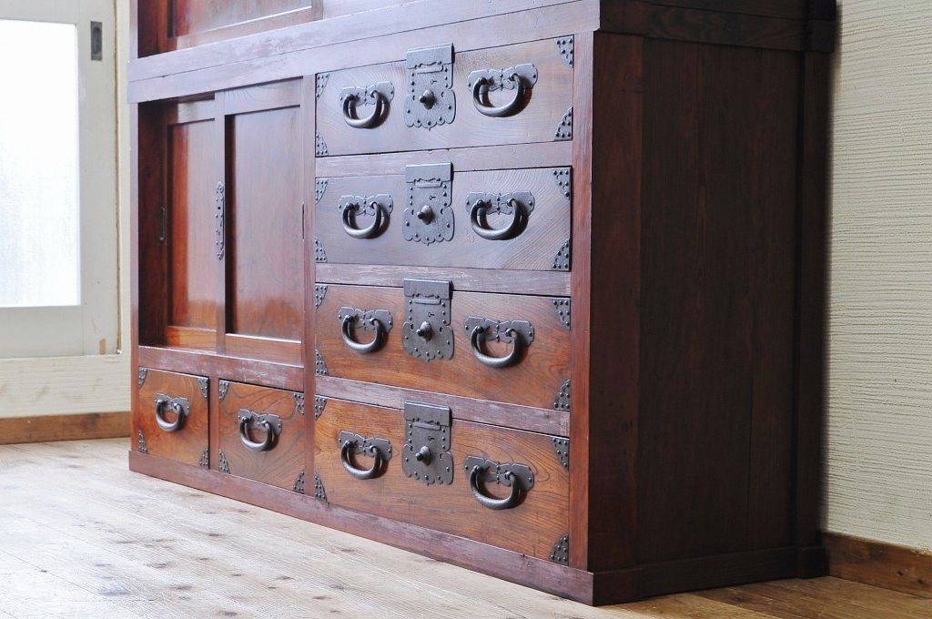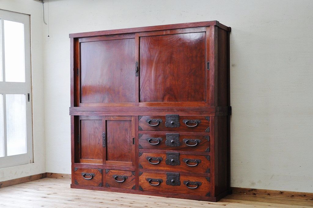 アンティーク家具 極上!古い欅材の重厚な二段重ね収納箪笥