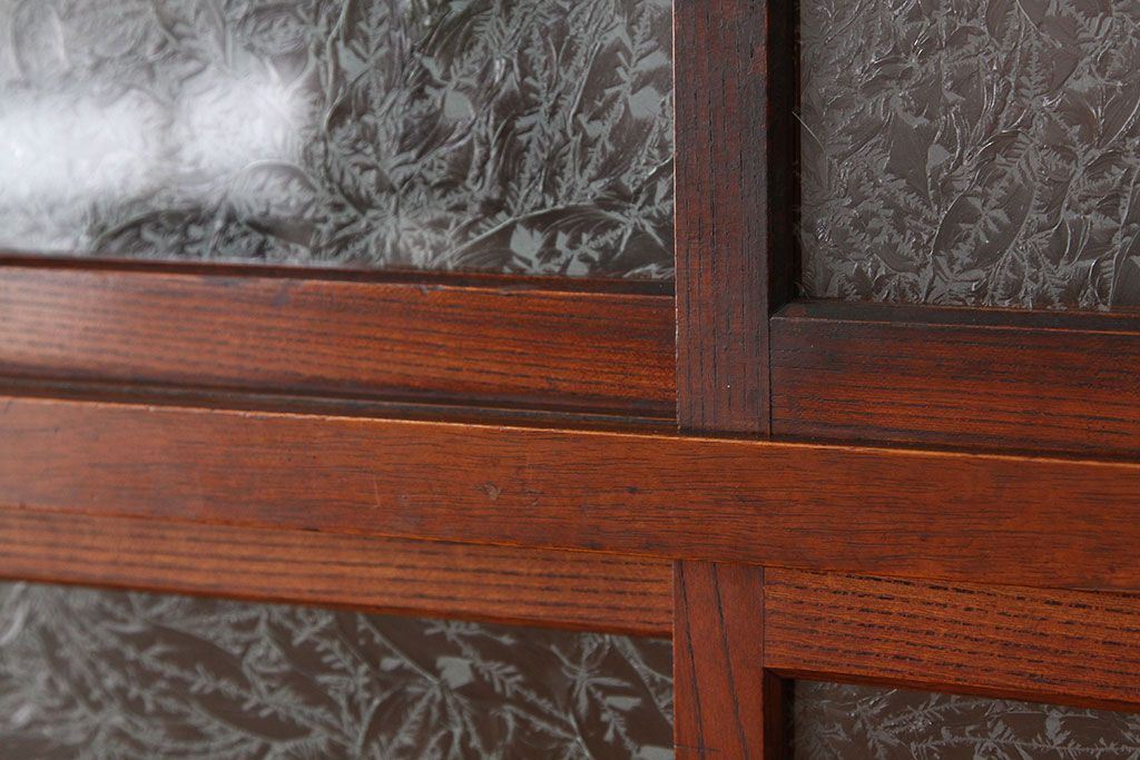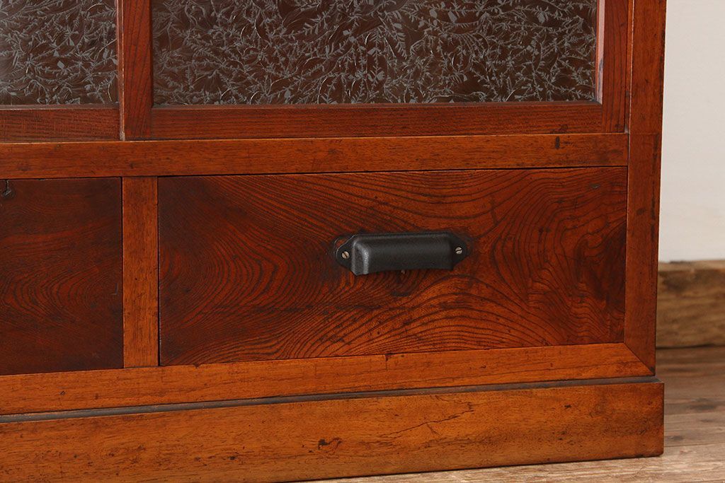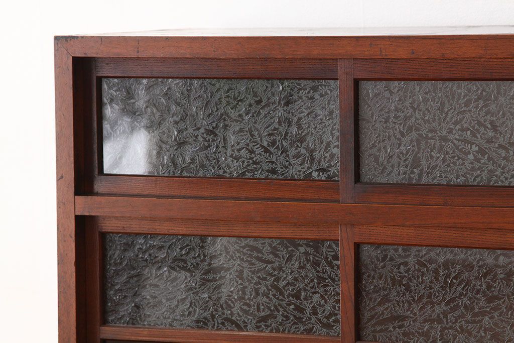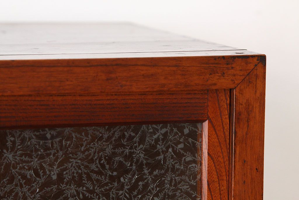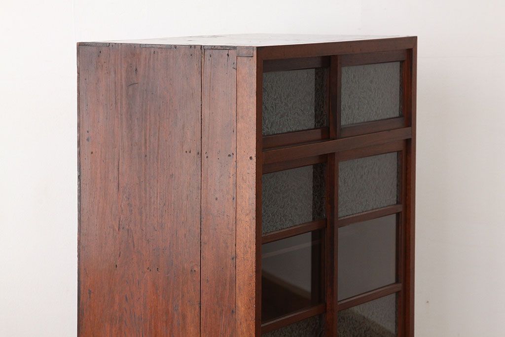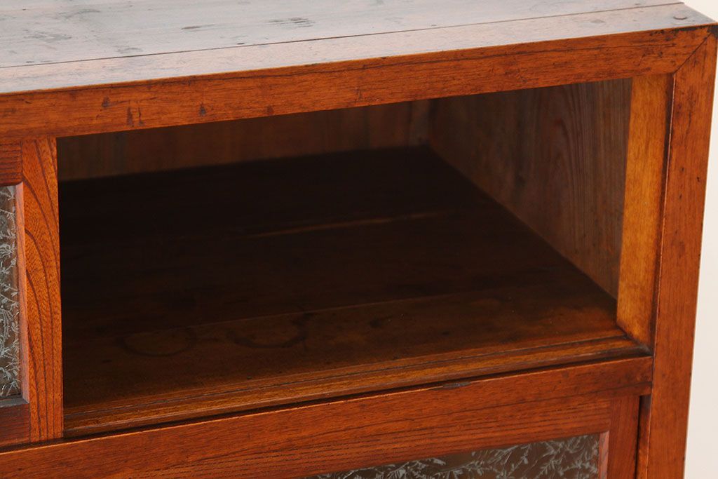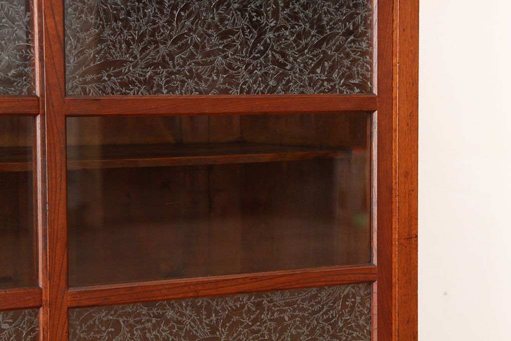 アンティーク家具 アンティーク 古い木の結霜ガラス入り収納棚