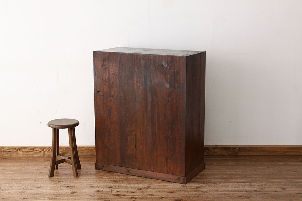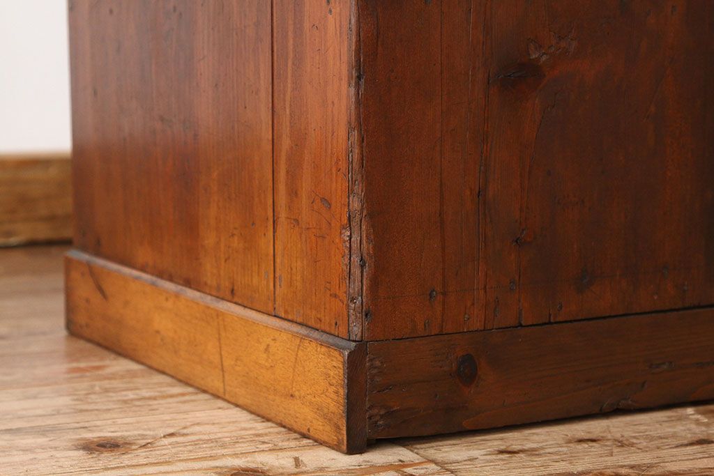 アンティーク 古い木の結霜ガラス入り収納棚です。
