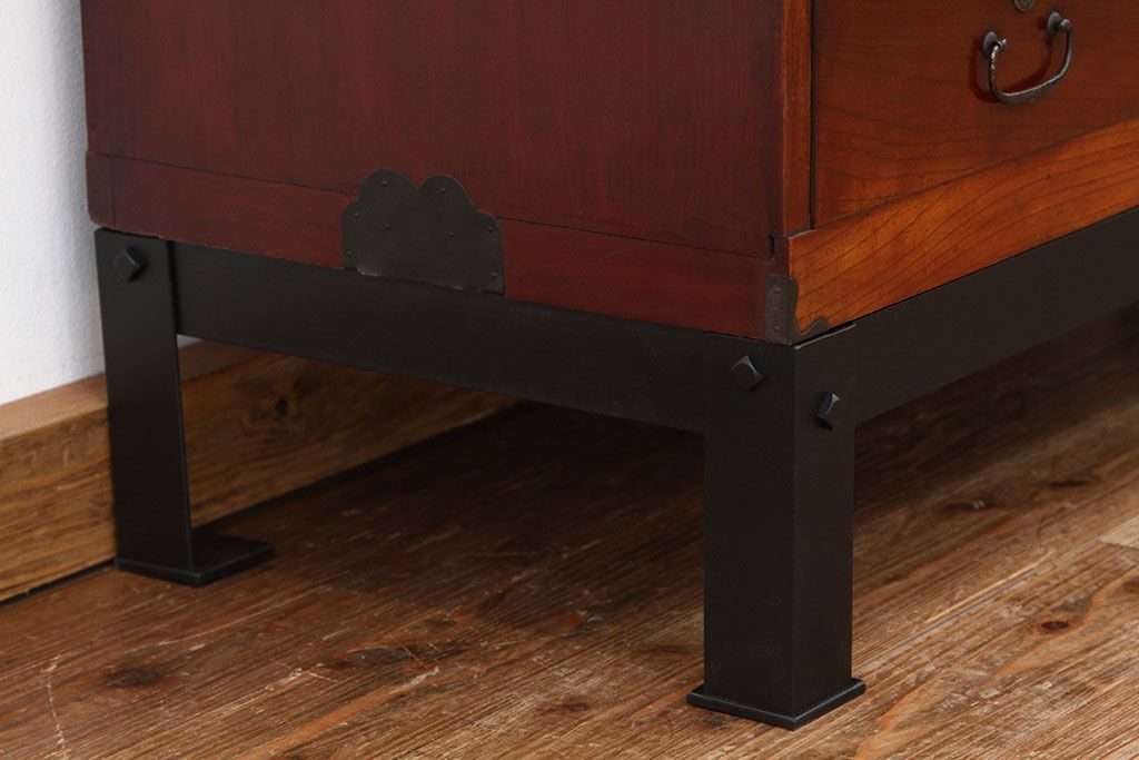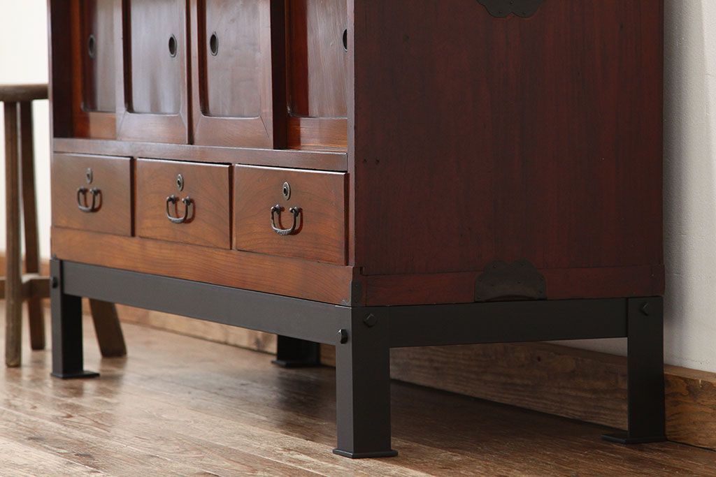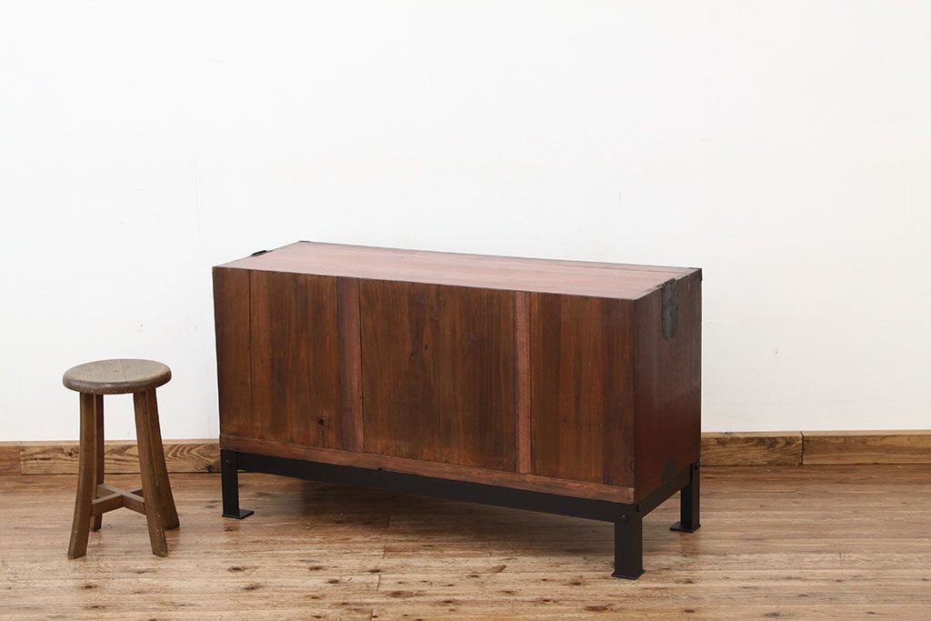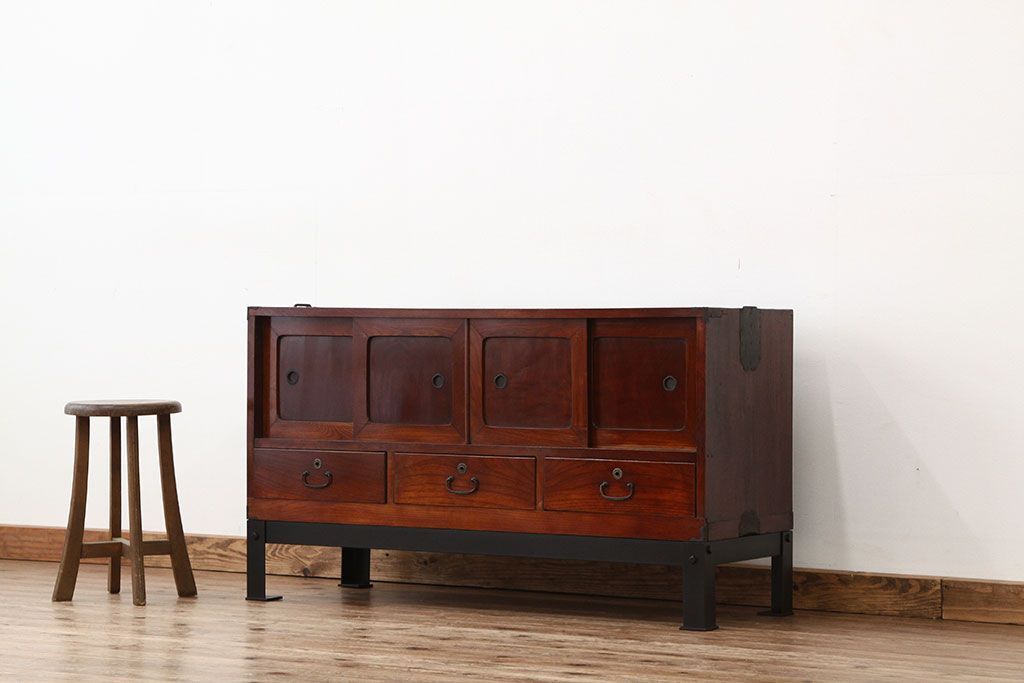 和箪笥 > アンティーク家具 アンティーク 前欅アイアンスタンド付きローボード(鉄脚・箪笥・リビングボード)