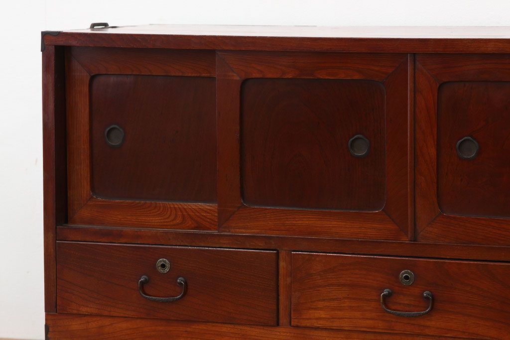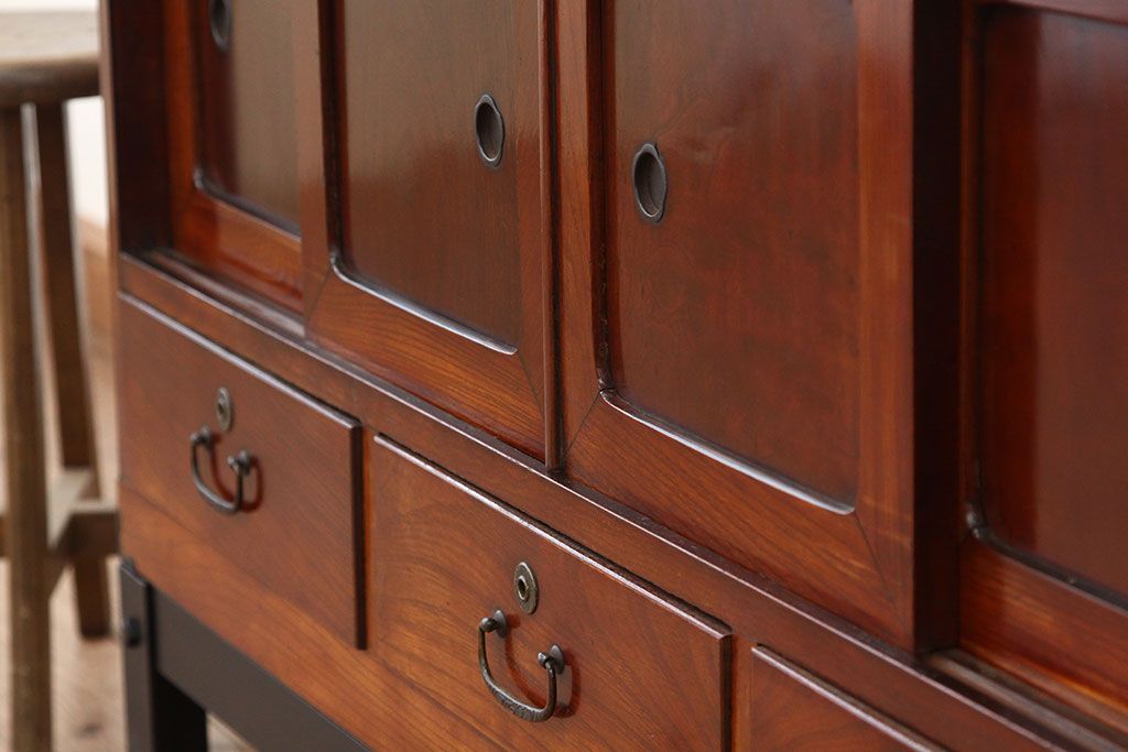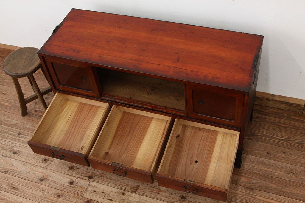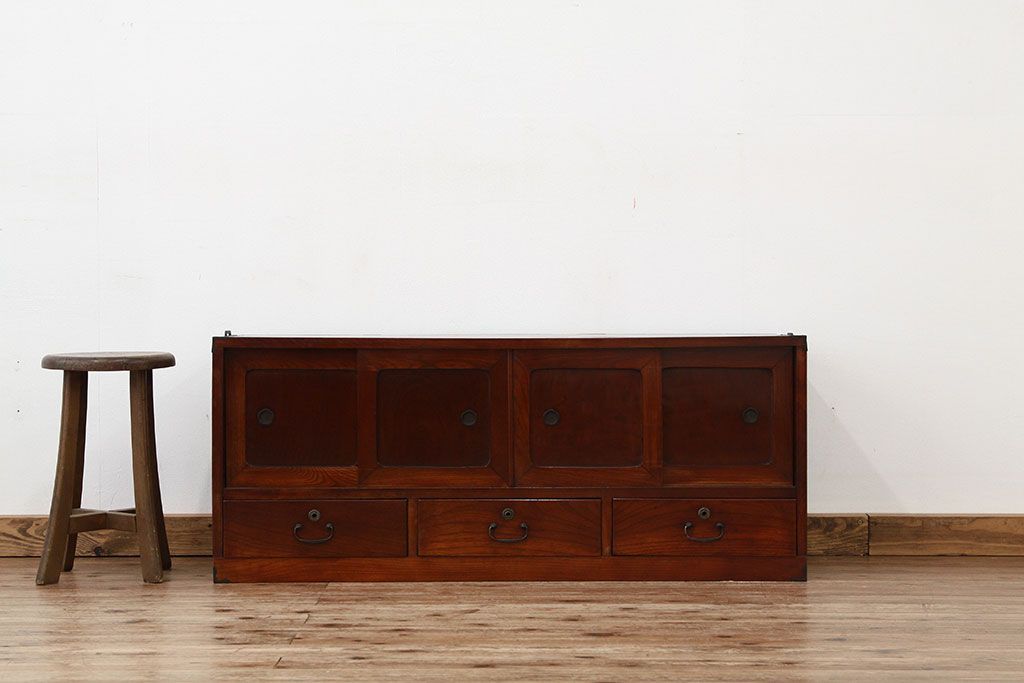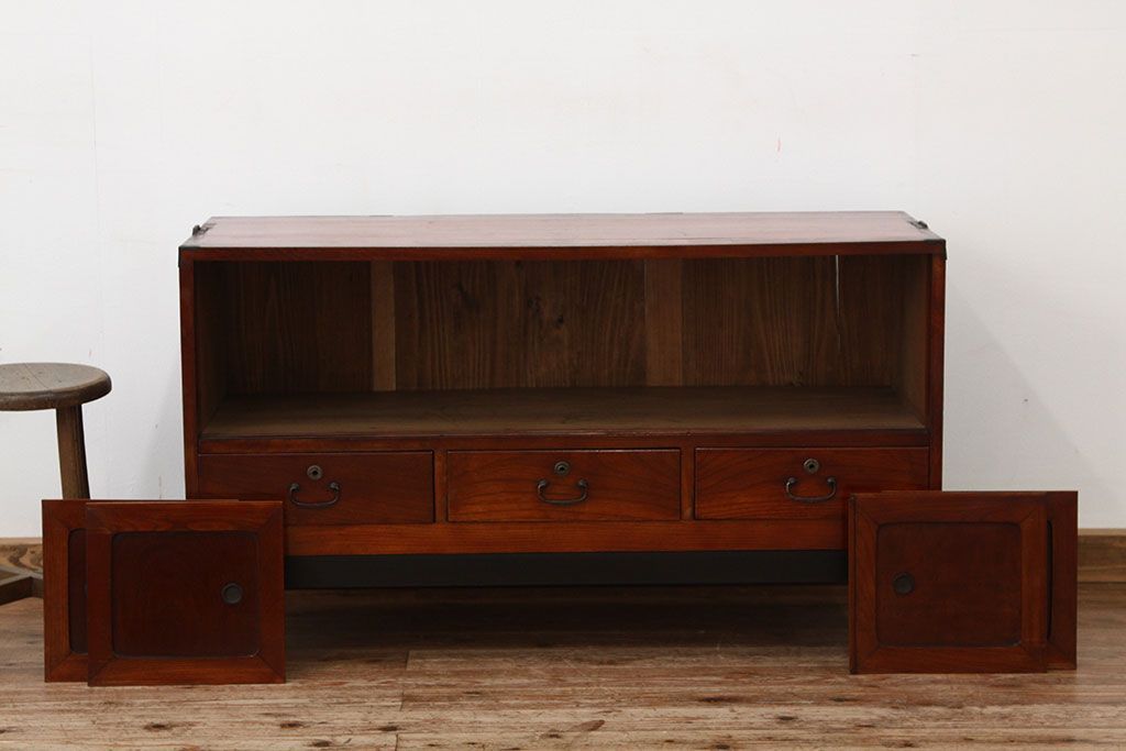 和箪笥 > アンティーク家具 アンティーク 前欅アイアンスタンド付きローボード(鉄脚・箪笥・リビングボード)