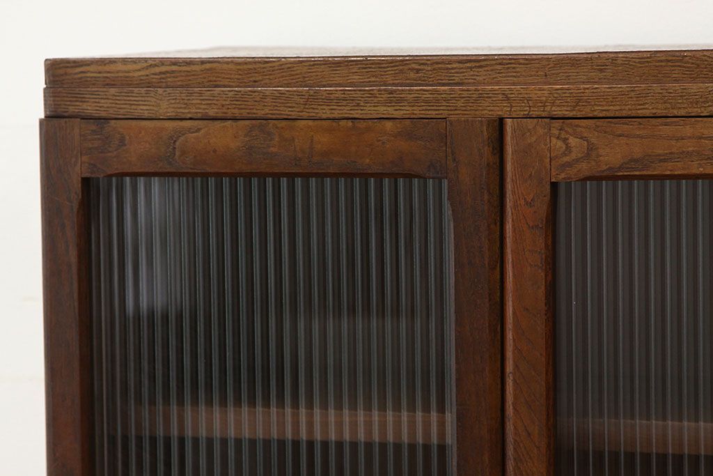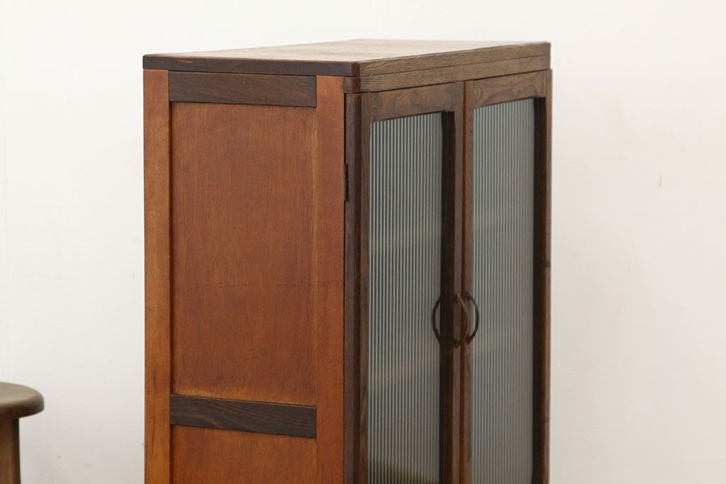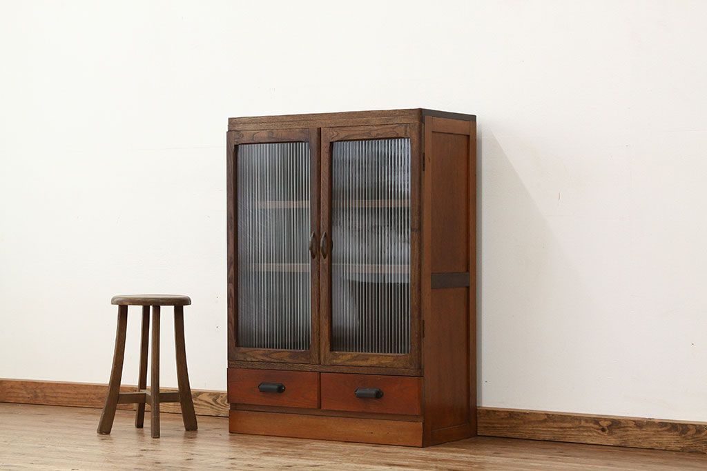 レトロ家具 アンティーク モールガラス入りレトロな本箱(収納棚)