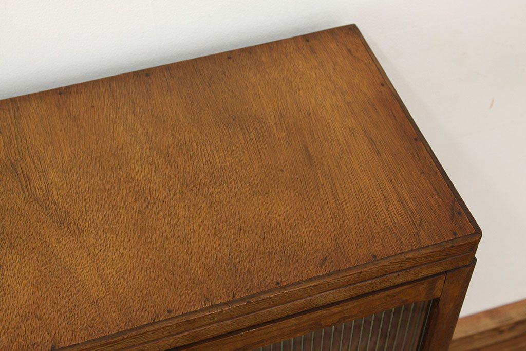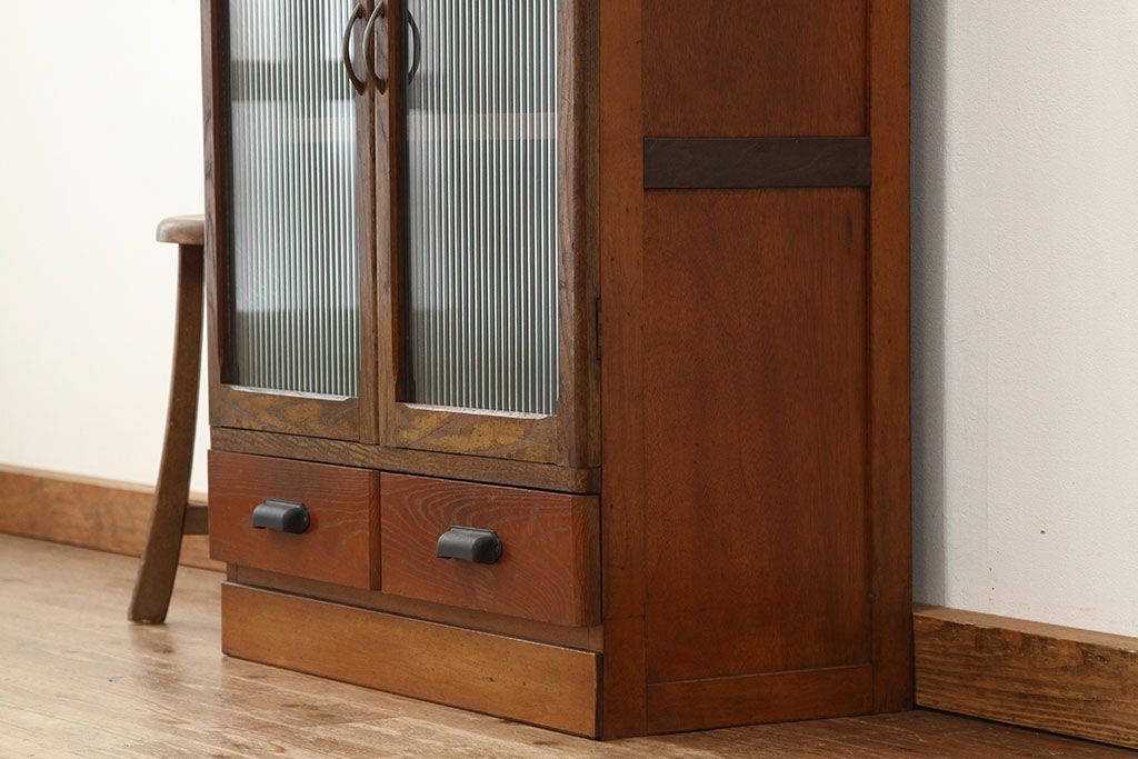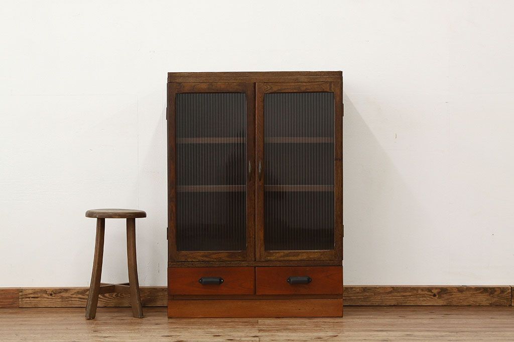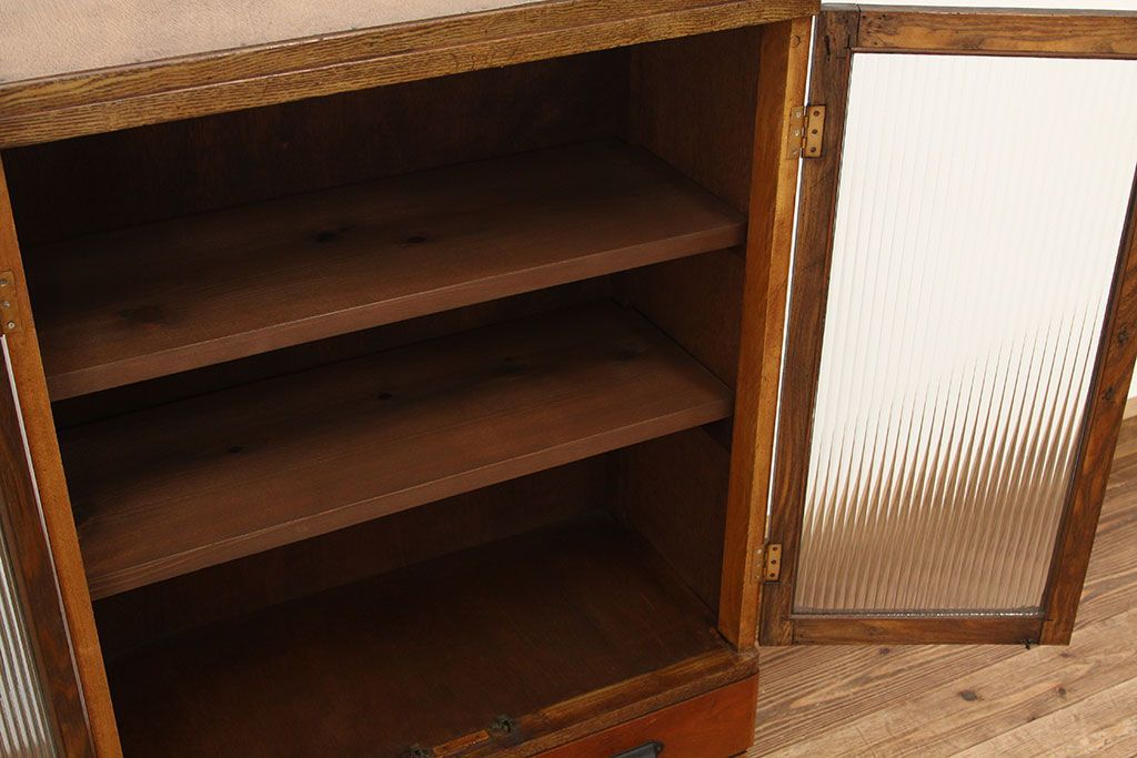 アンティーク モールガラス入りレトロな本箱(収納棚)です。
