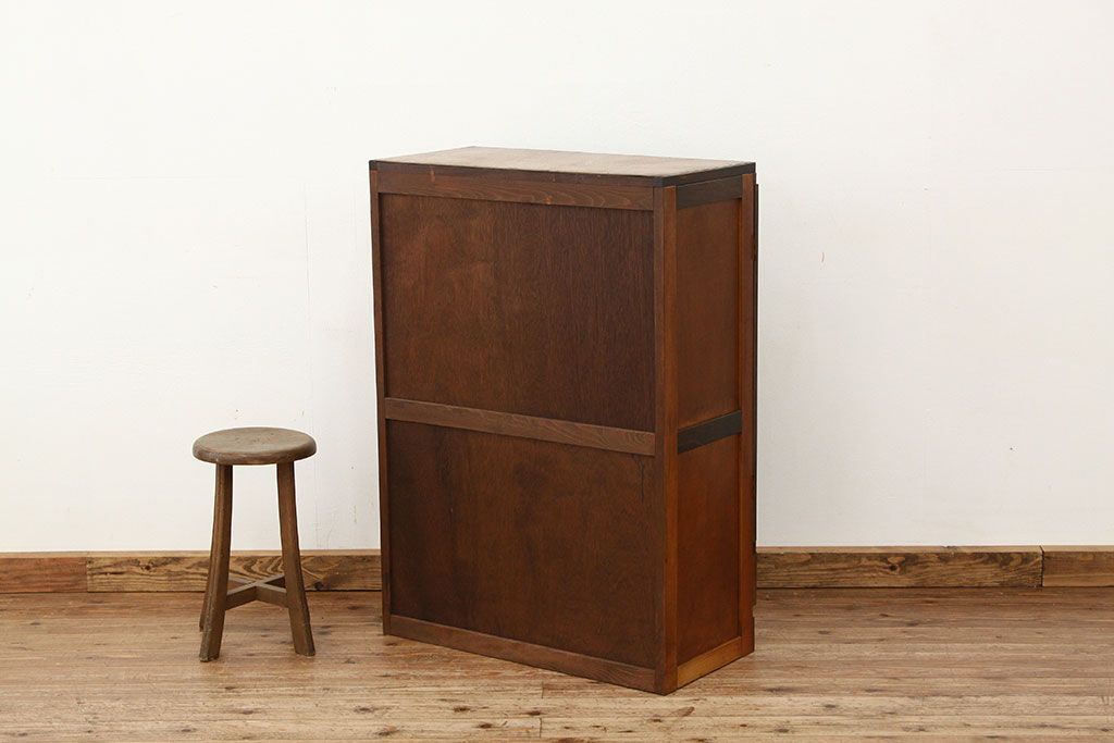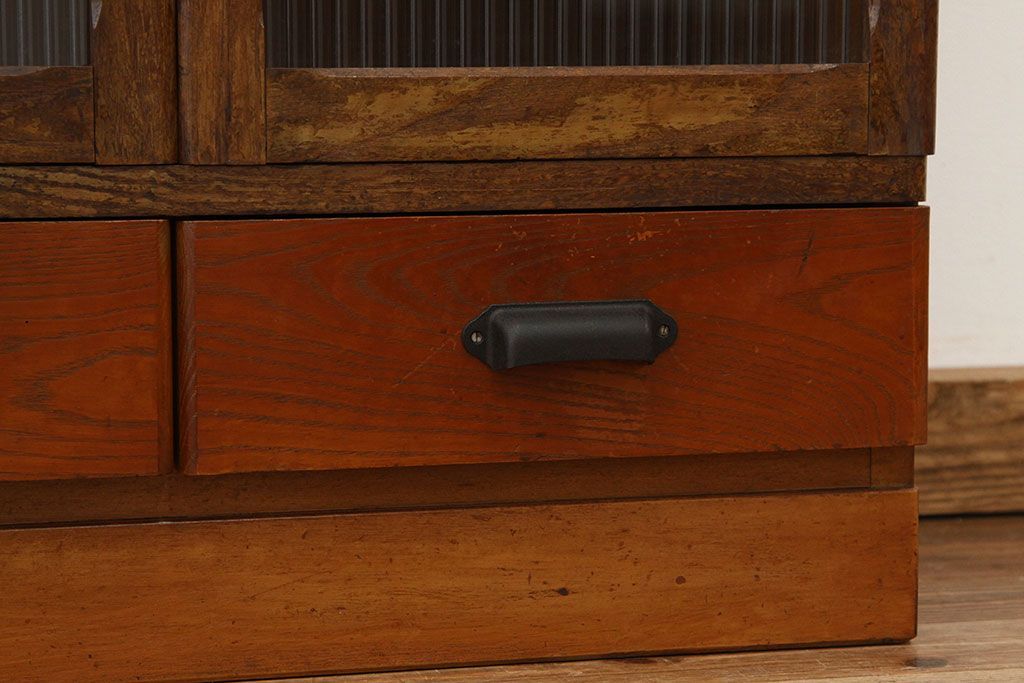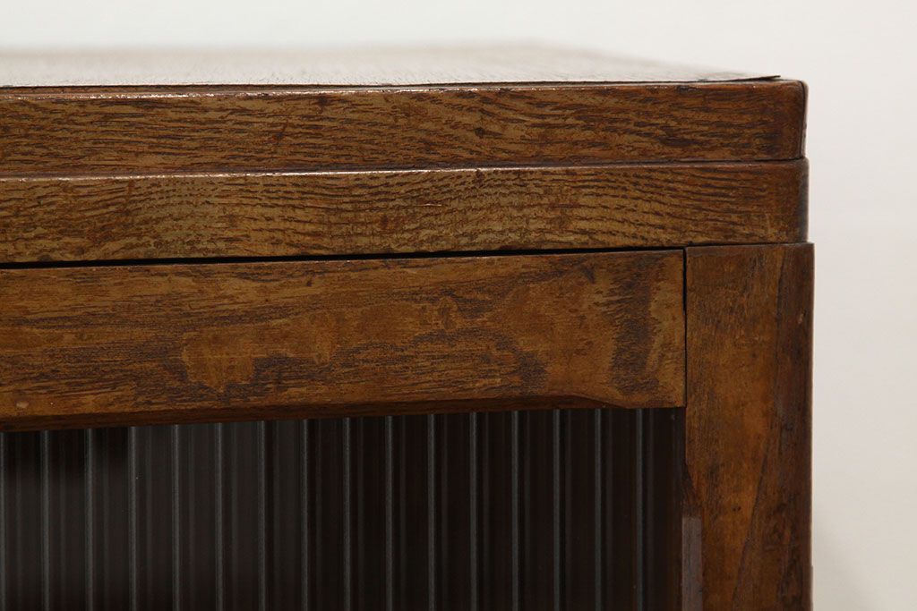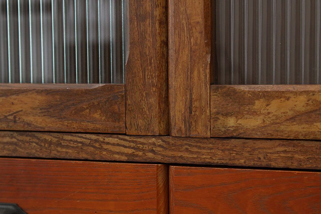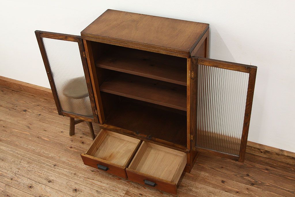 アンティーク モールガラス入りレトロな本箱(収納棚)です。
