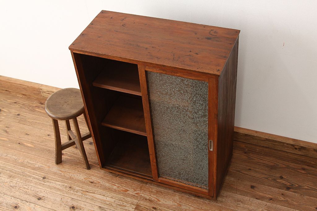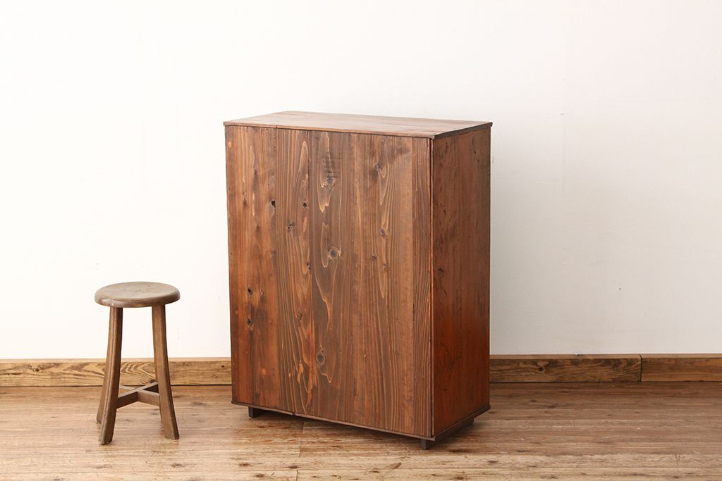 アンティーク家具 アンティーク 古い木のシンプルな脚付き下駄箱(収納棚)
