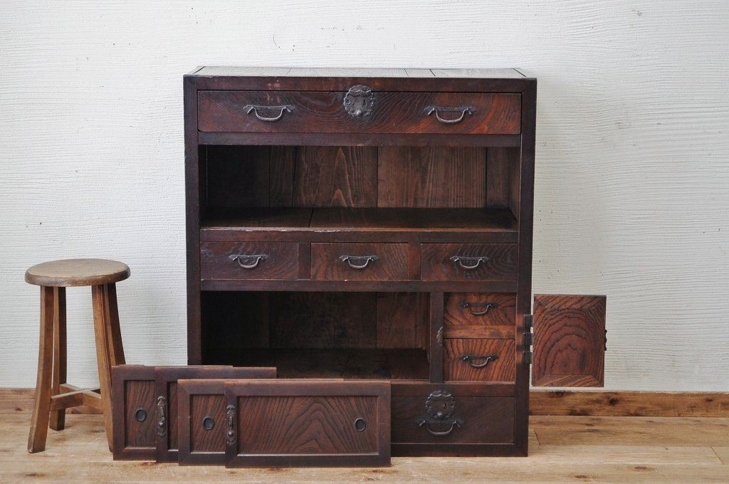 アンティーク家具 前面欅と檜!小振りな関西帳場