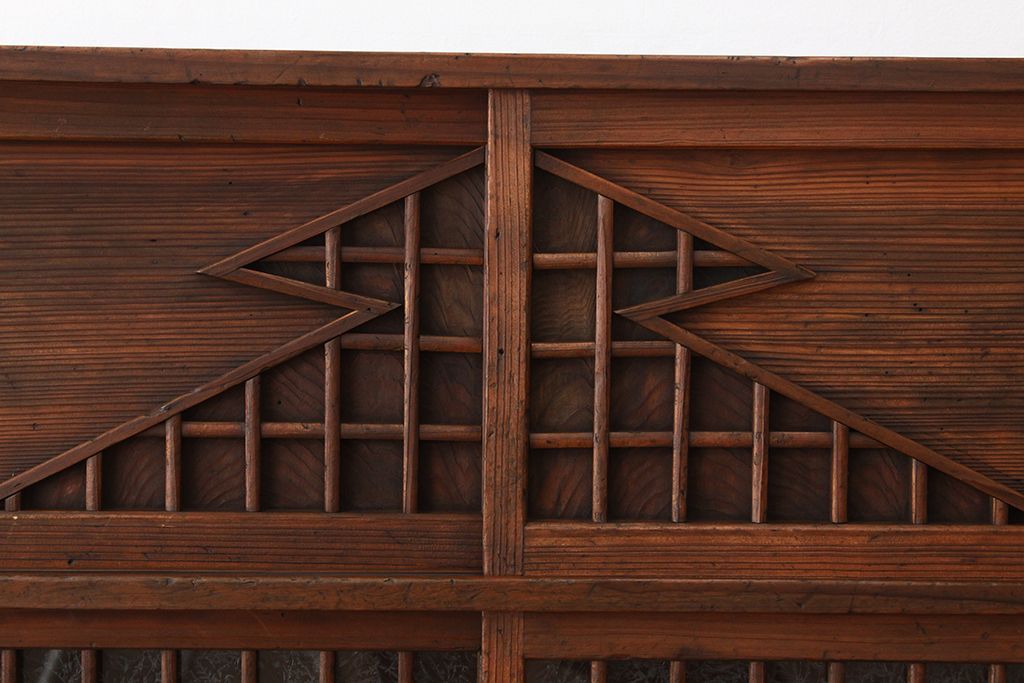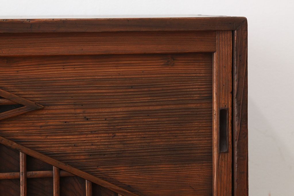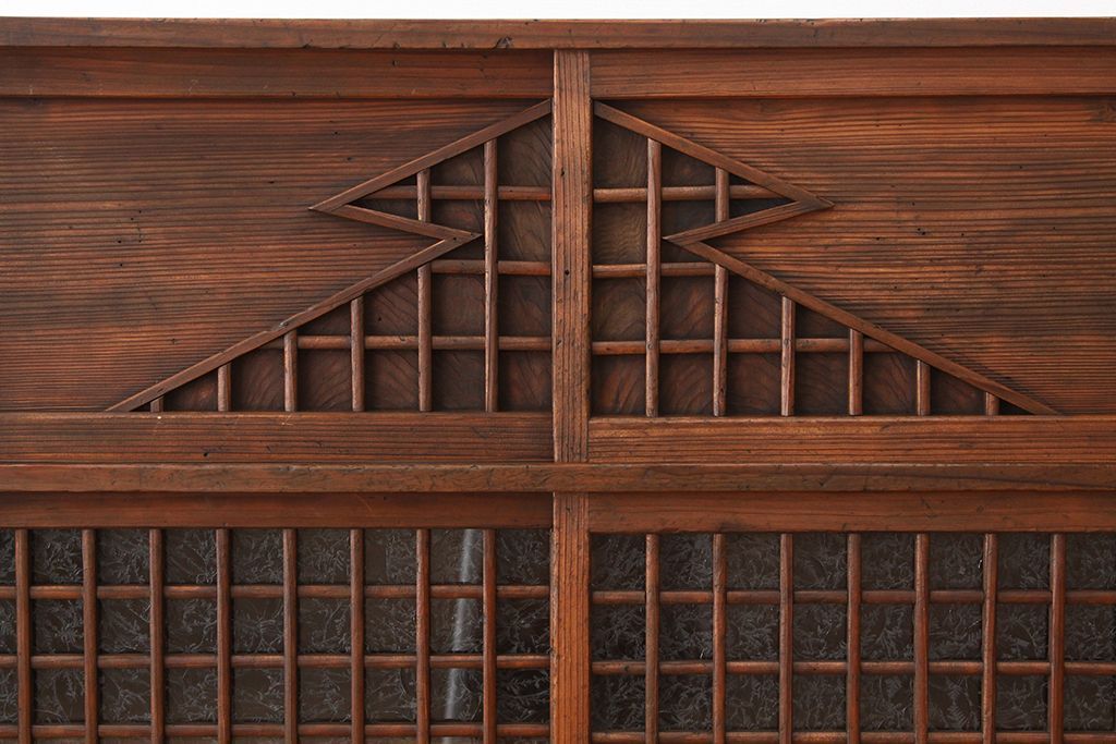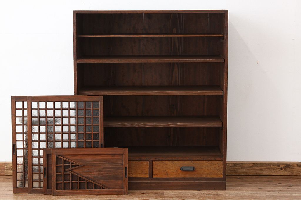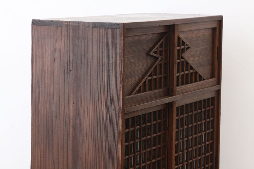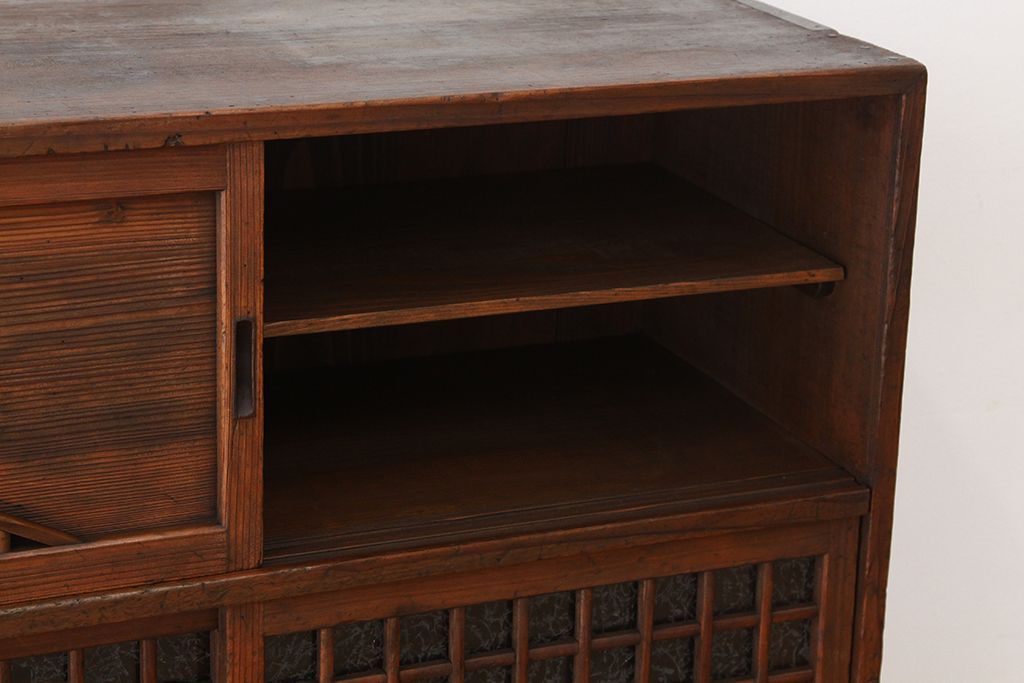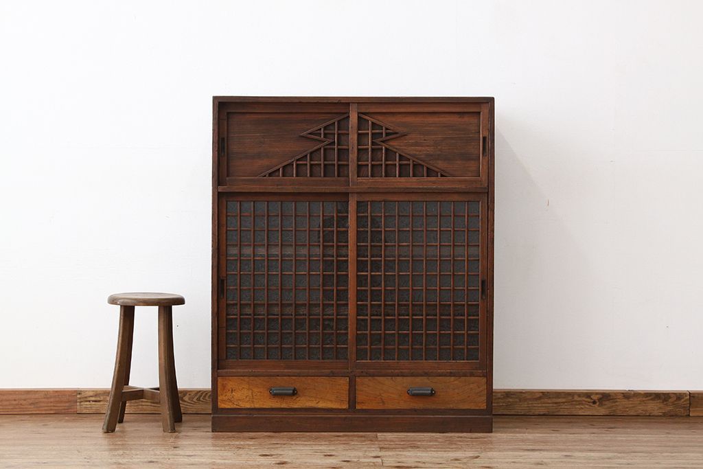 アンティーク家具 アンティーク 素敵なデザイン!格子引き戸の結霜ガラス下駄箱(収納棚)