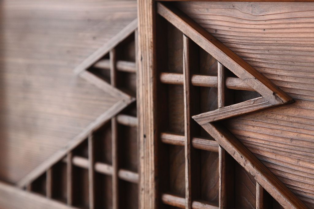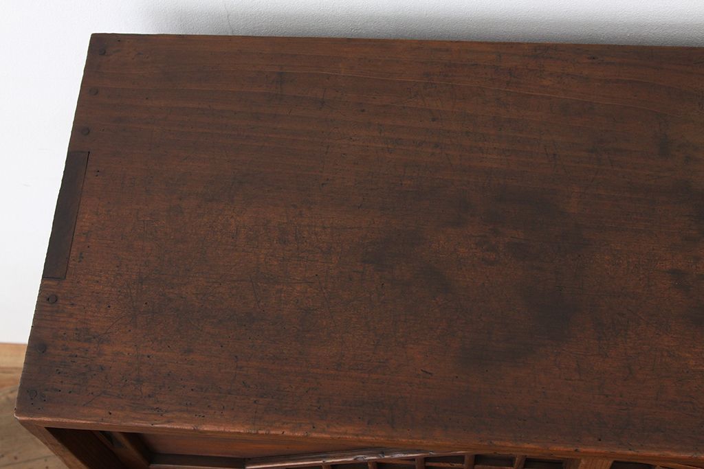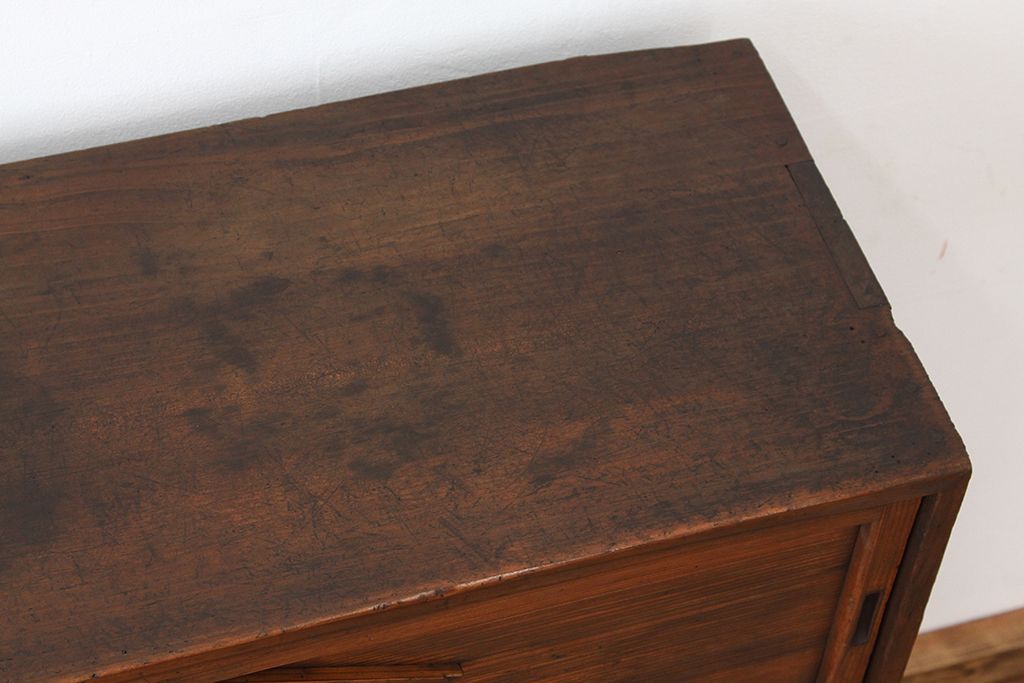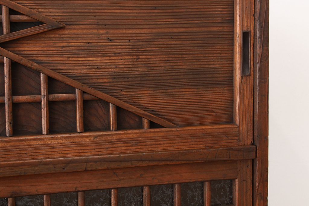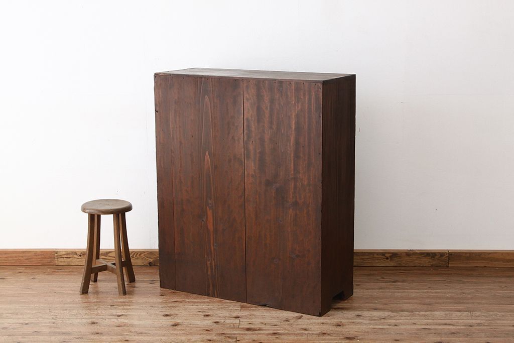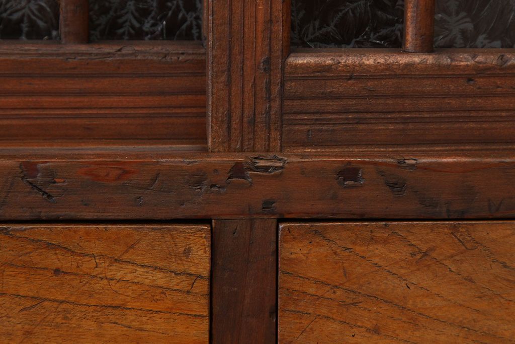 アンティーク家具 アンティーク 素敵なデザイン!格子引き戸の結霜ガラス下駄箱(収納棚)