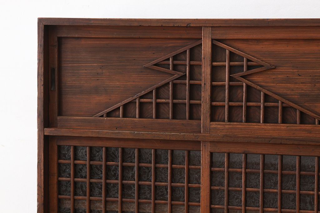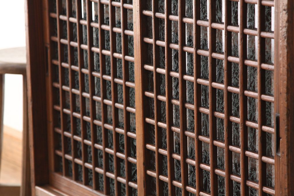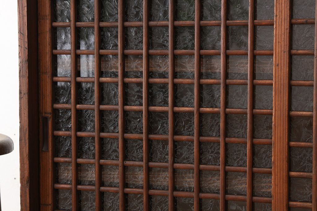 アンティーク 素敵なデザイン!格子引き戸の結霜ガラス下駄箱(収納棚)です。