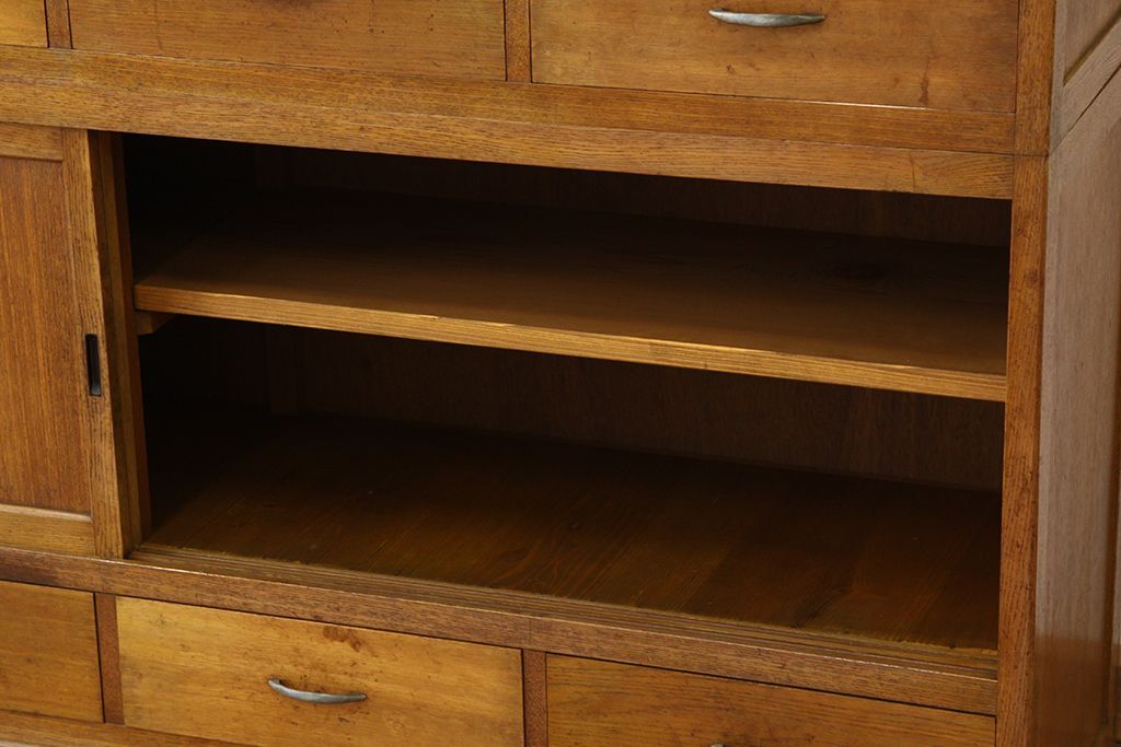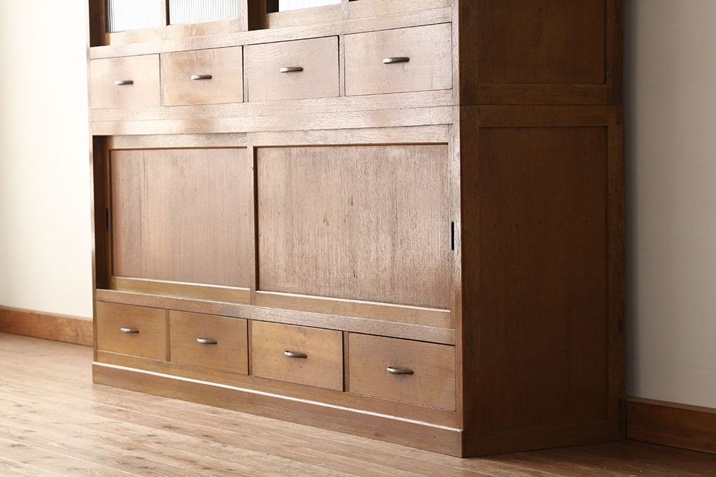 アンティーク レトロなデザインの銀モールガラス食器棚(収納棚・水屋タンス)です。