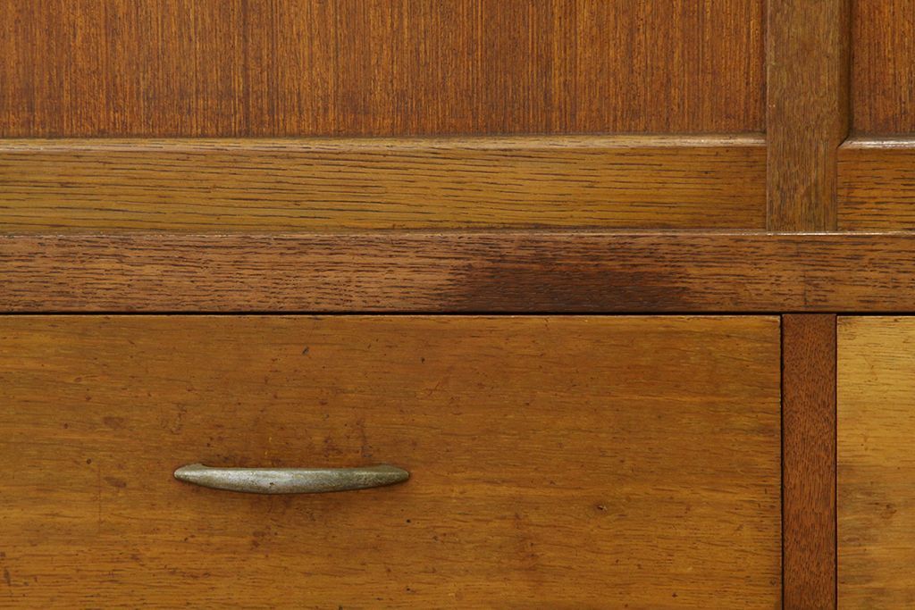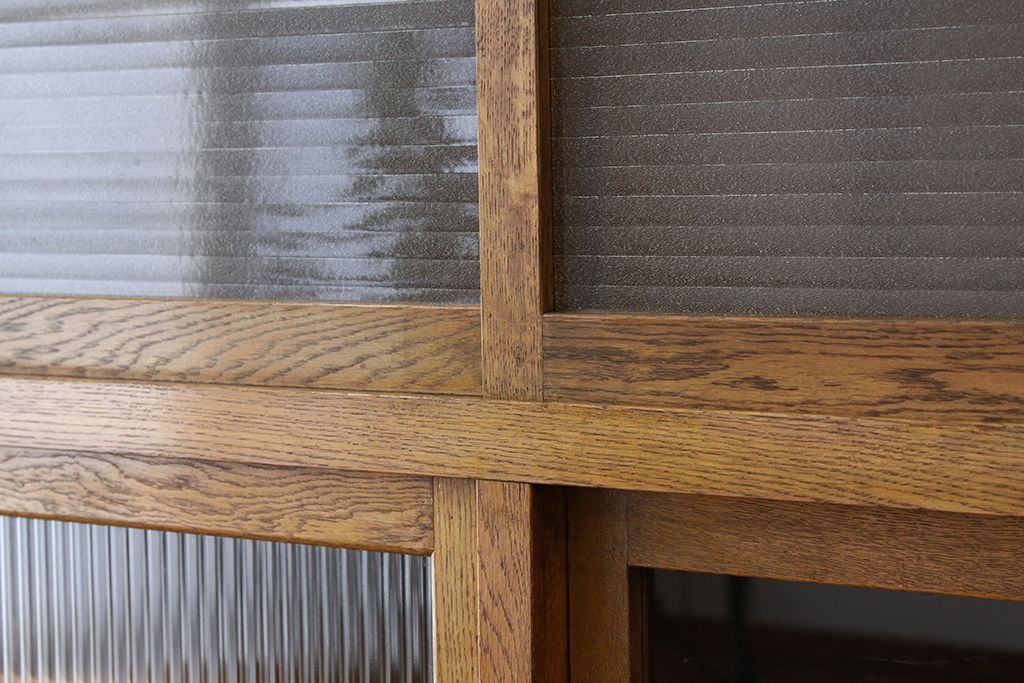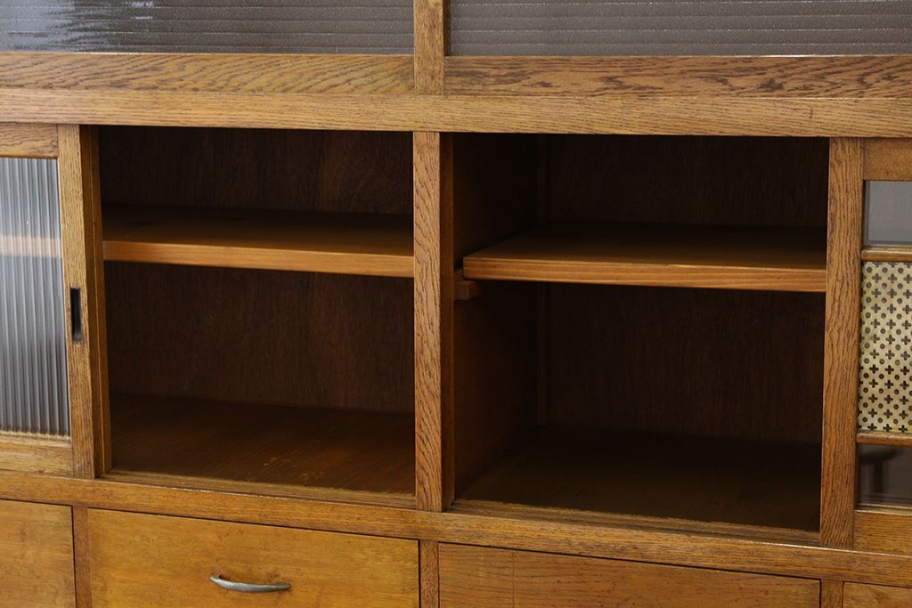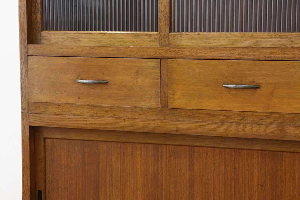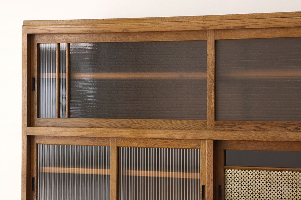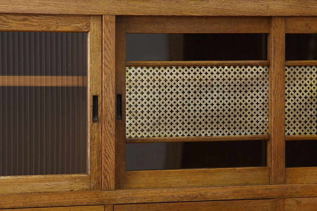 レトロ家具 アンティーク レトロなデザインの銀モールガラス食器棚(収納棚・水屋タンス)