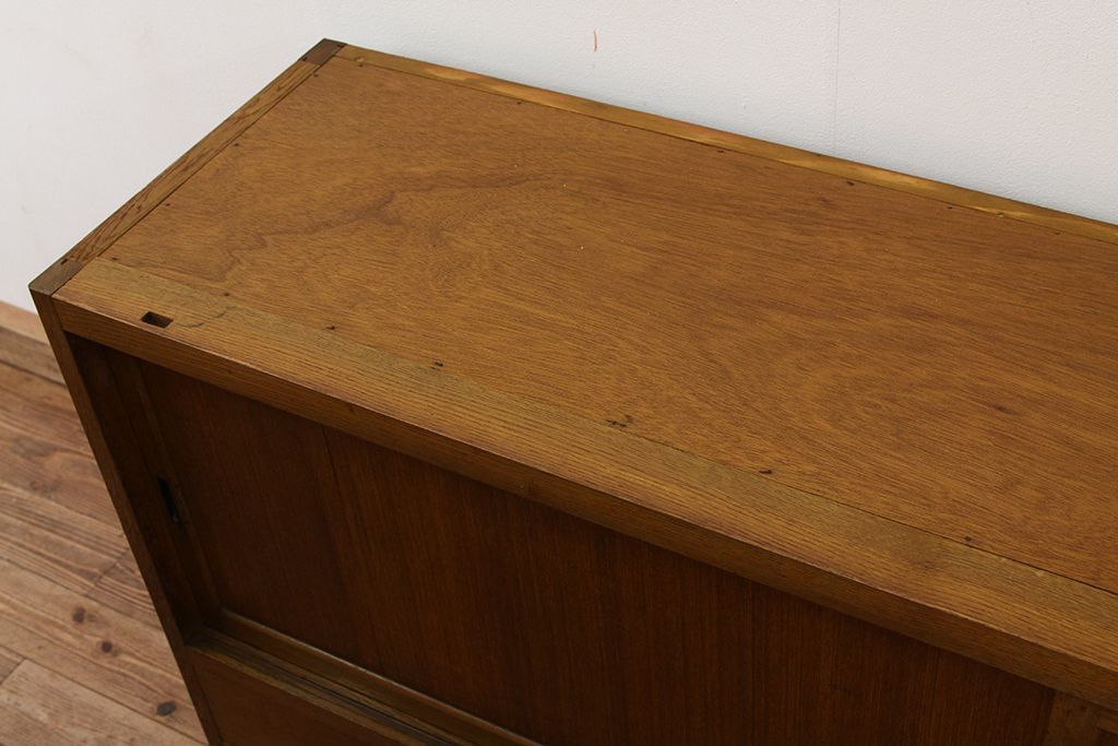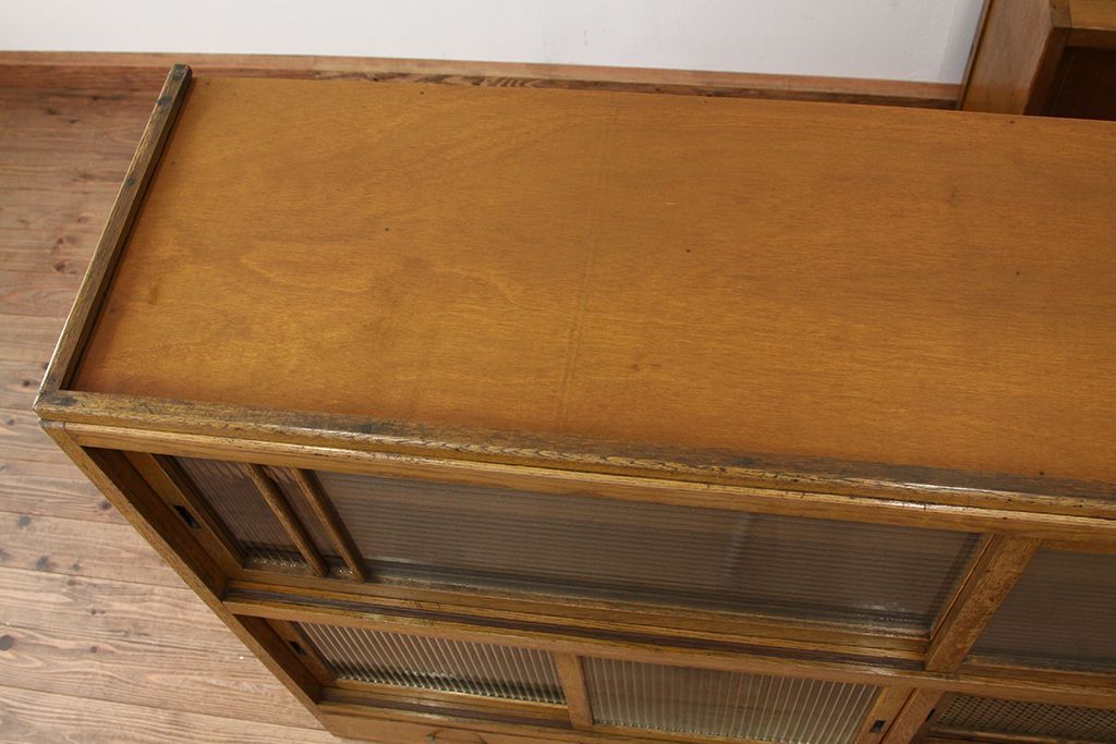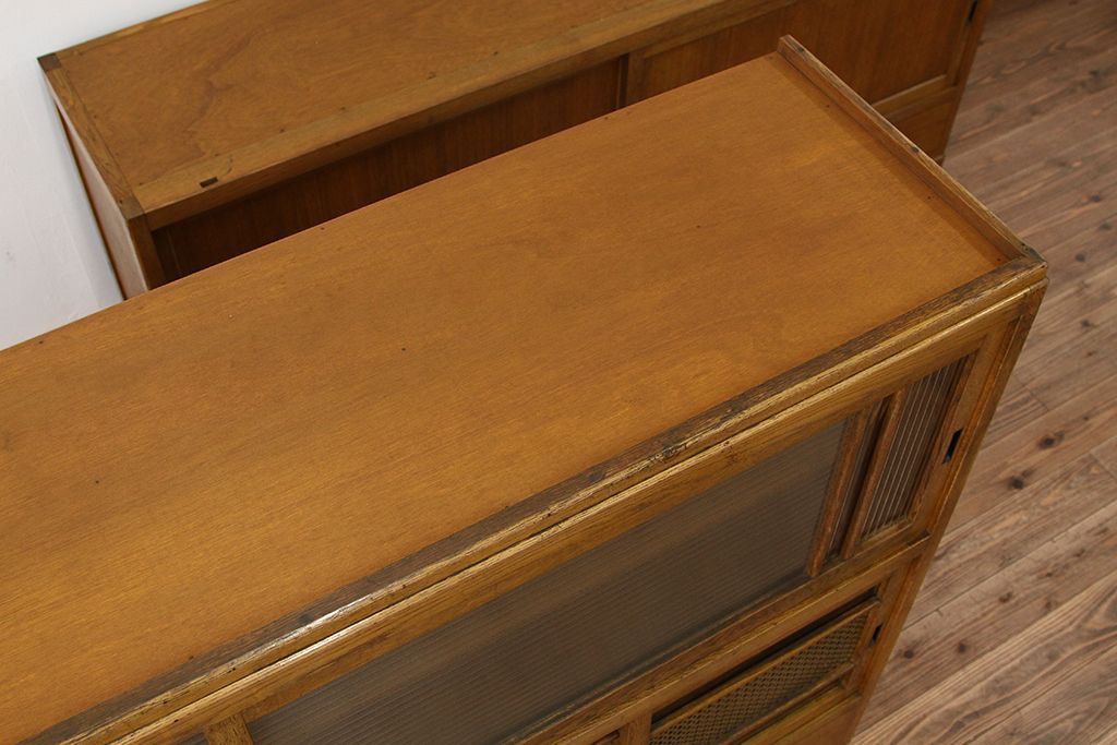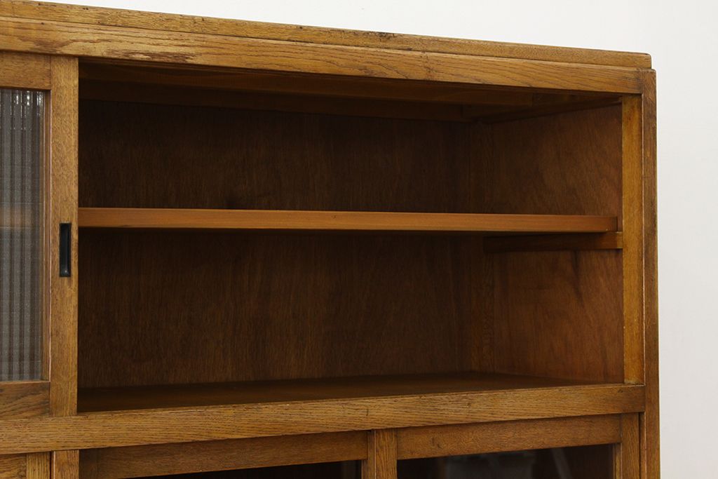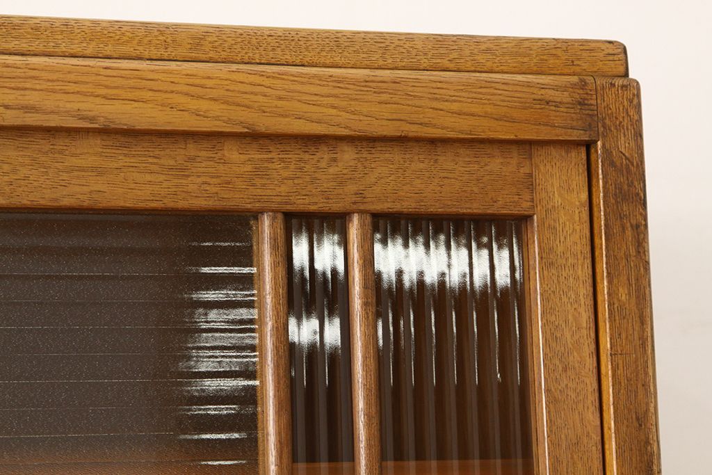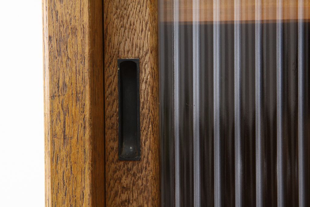 レトロ家具 アンティーク レトロなデザインの銀モールガラス食器棚(収納棚・水屋タンス)
