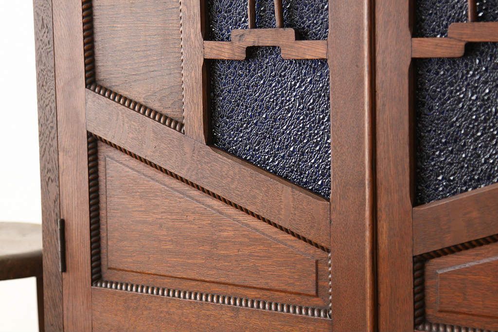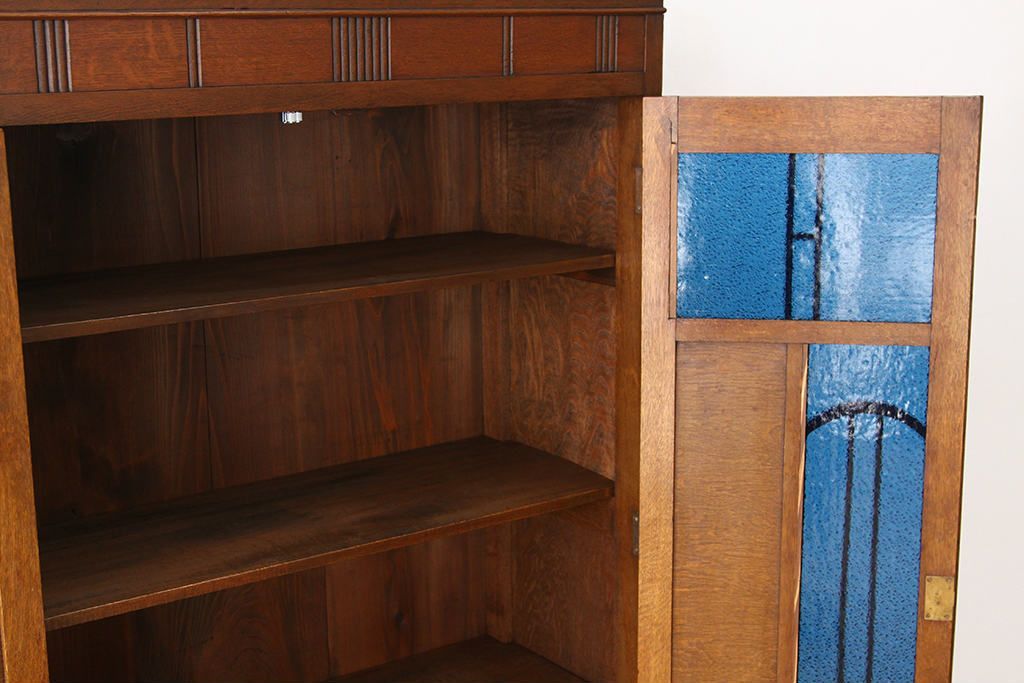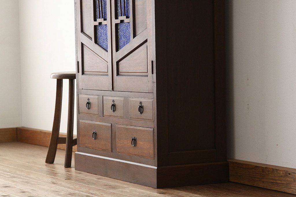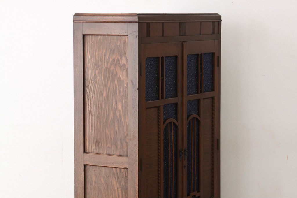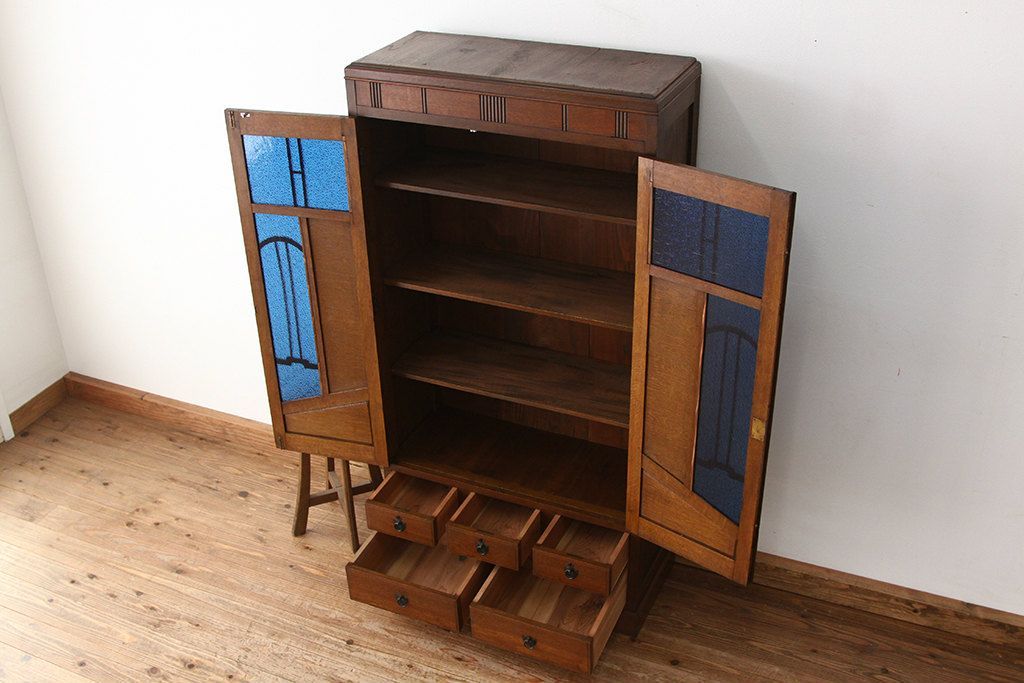 アンティーク家具 アンティーク 大正ロマン 希少な青色ダイヤガラス本箱(ブックケース)