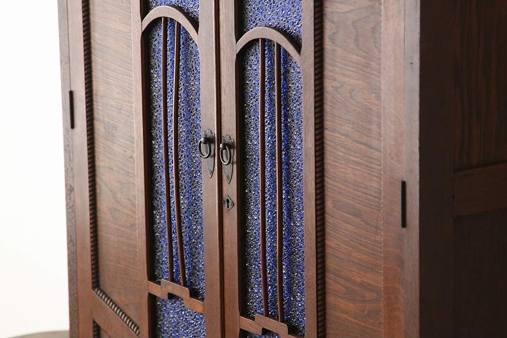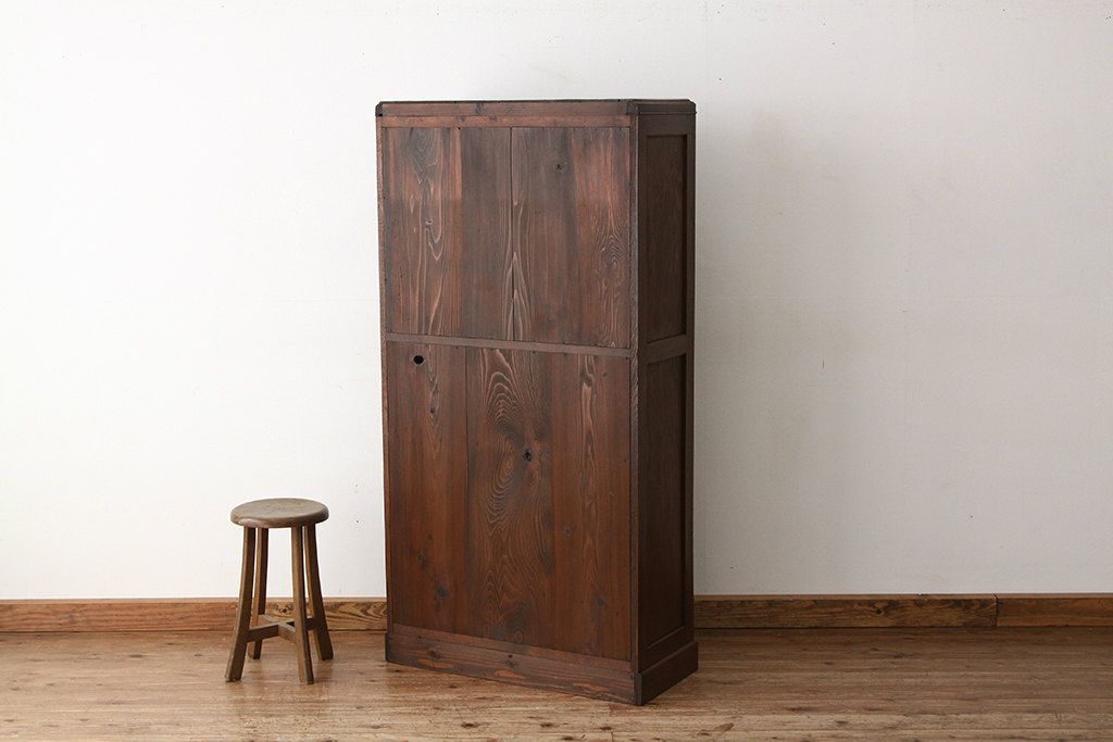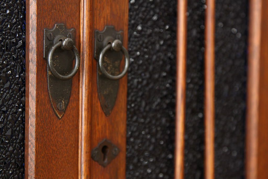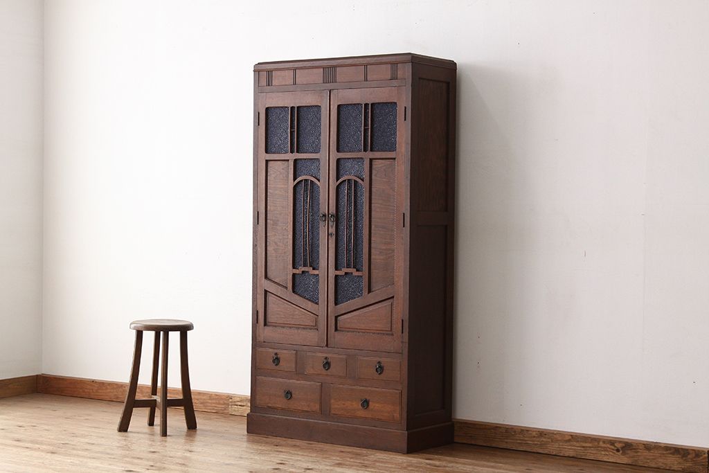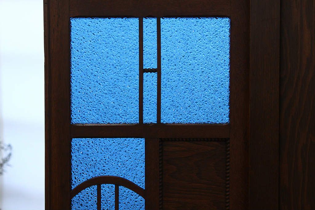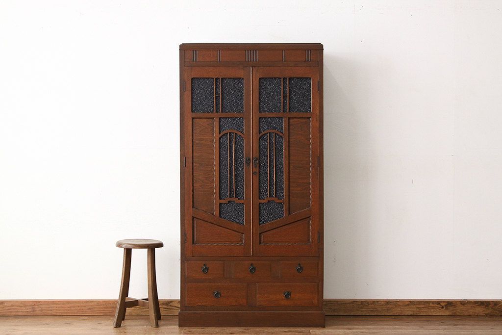 アンティーク家具 アンティーク 大正ロマン 希少な青色ダイヤガラス本箱(ブックケース)