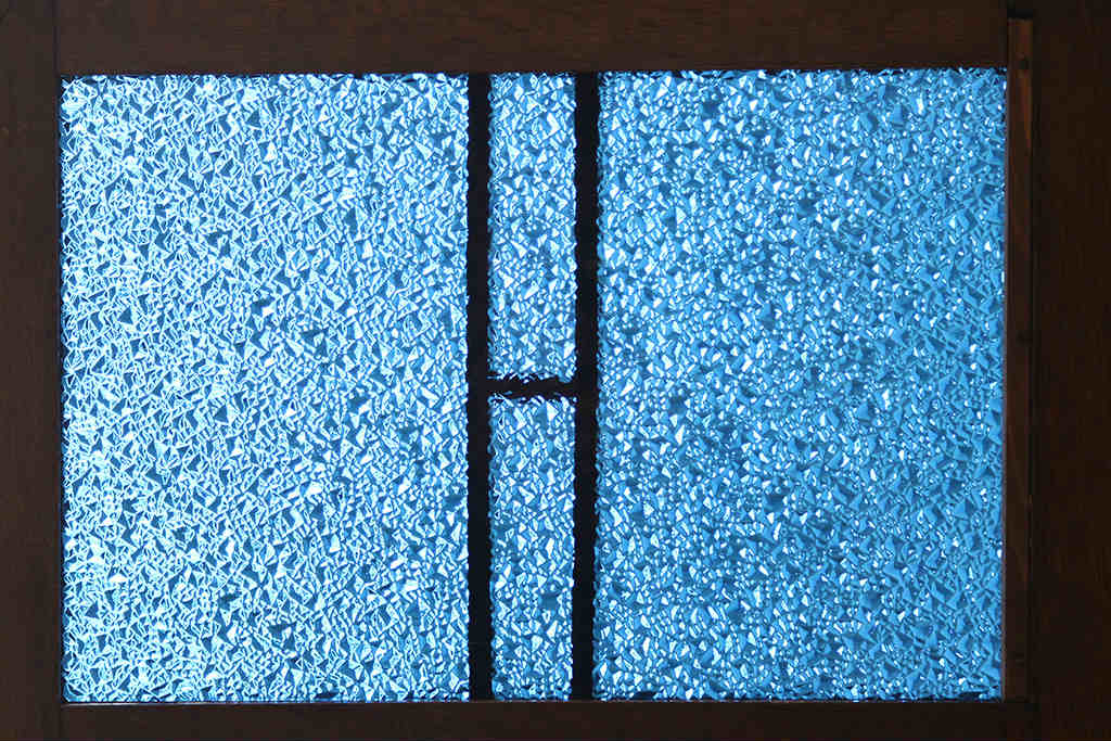 アンティーク 大正ロマン 希少な青色ダイヤガラス本箱(ブックケース)です。