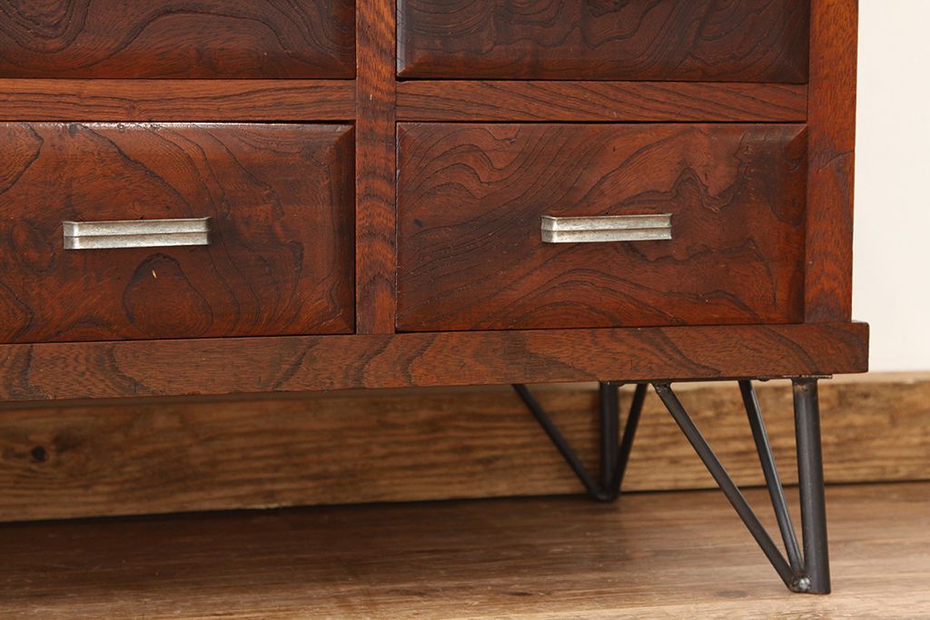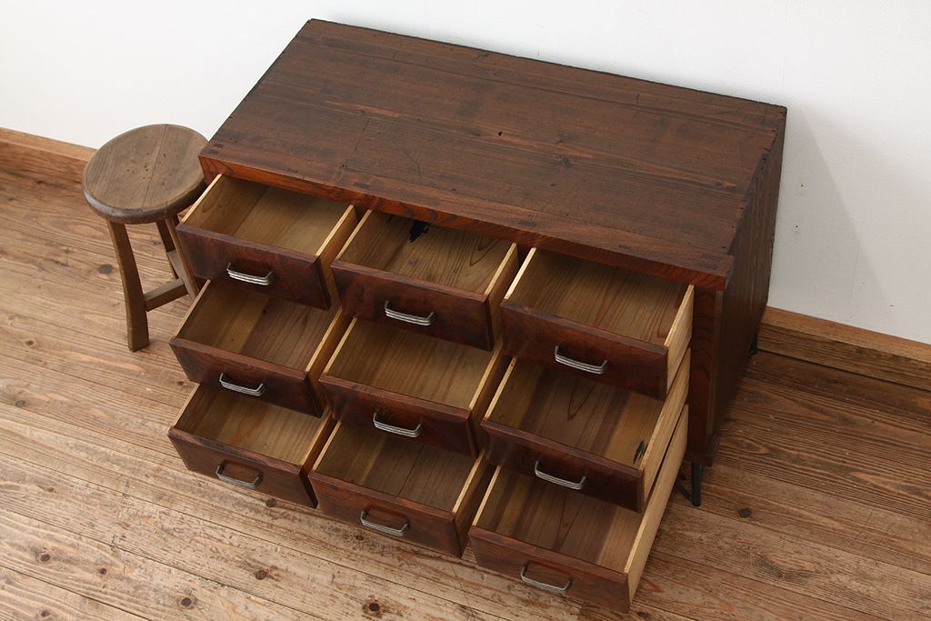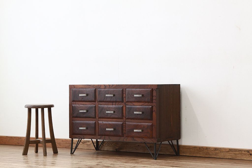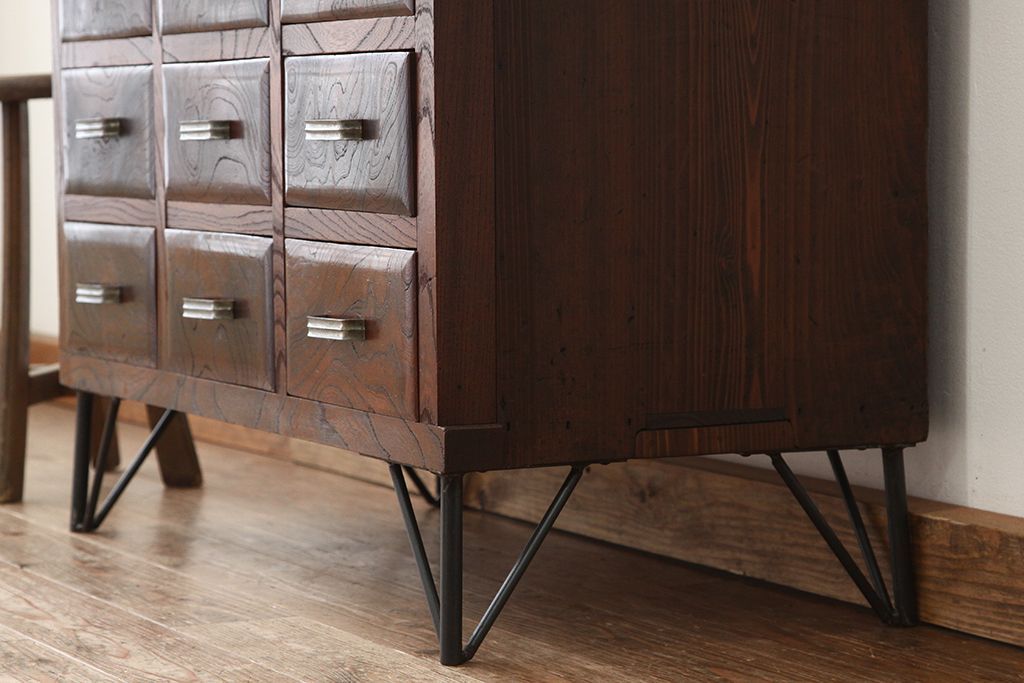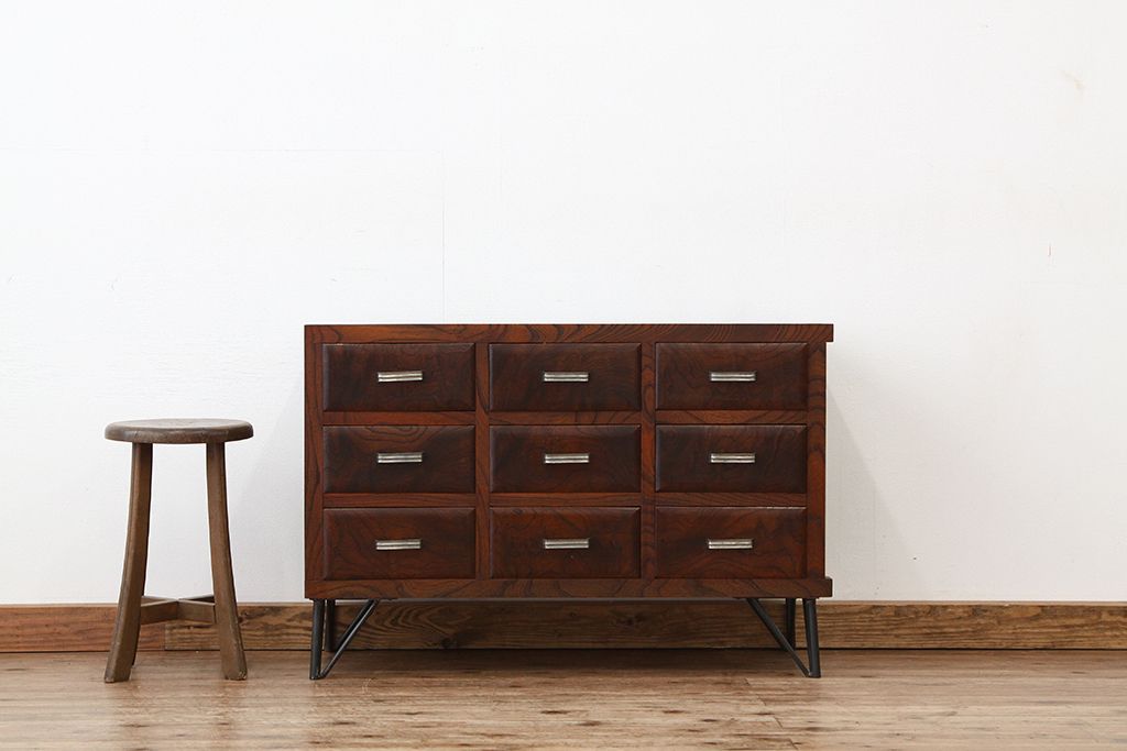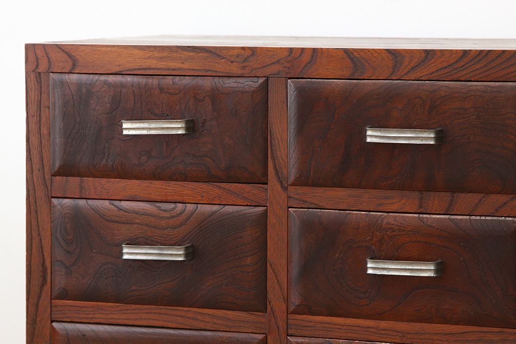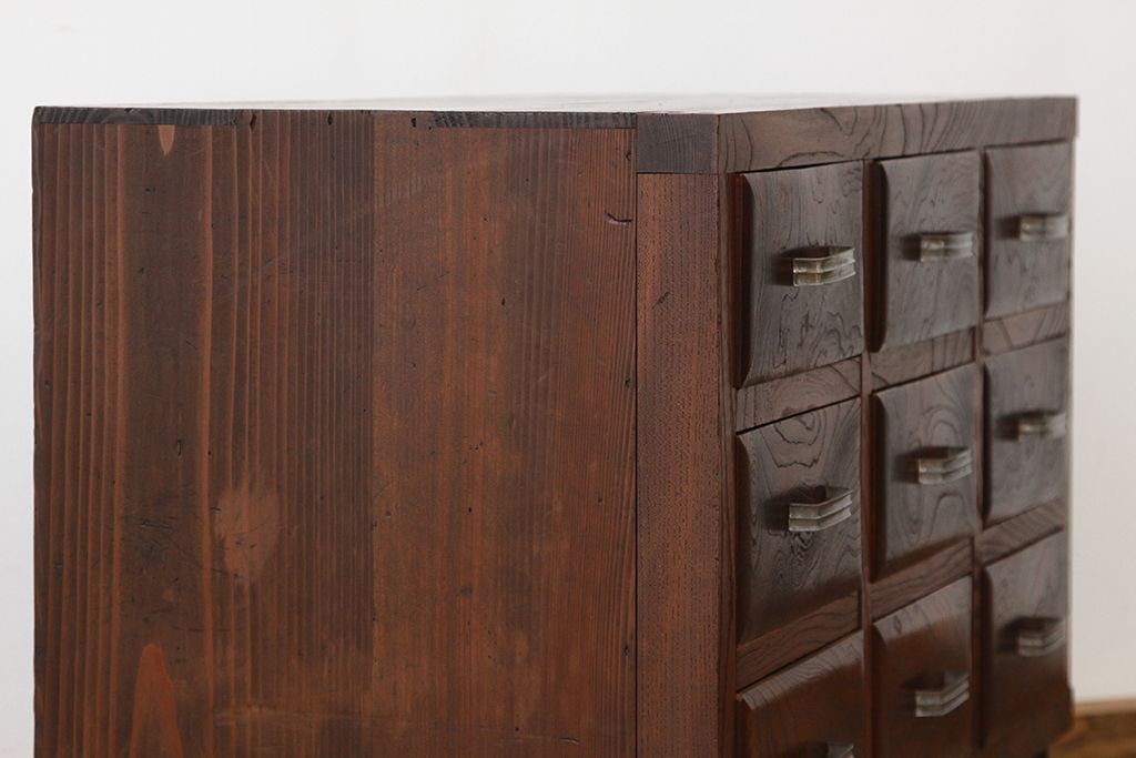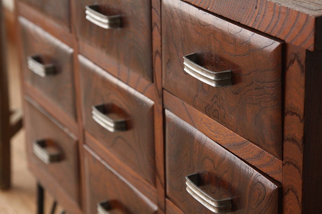 和箪笥 > アンティーク家具 アンティーク 古い欅材の木目の素晴らしい脚付き9杯引き出し(チェスト、薬箪笥)