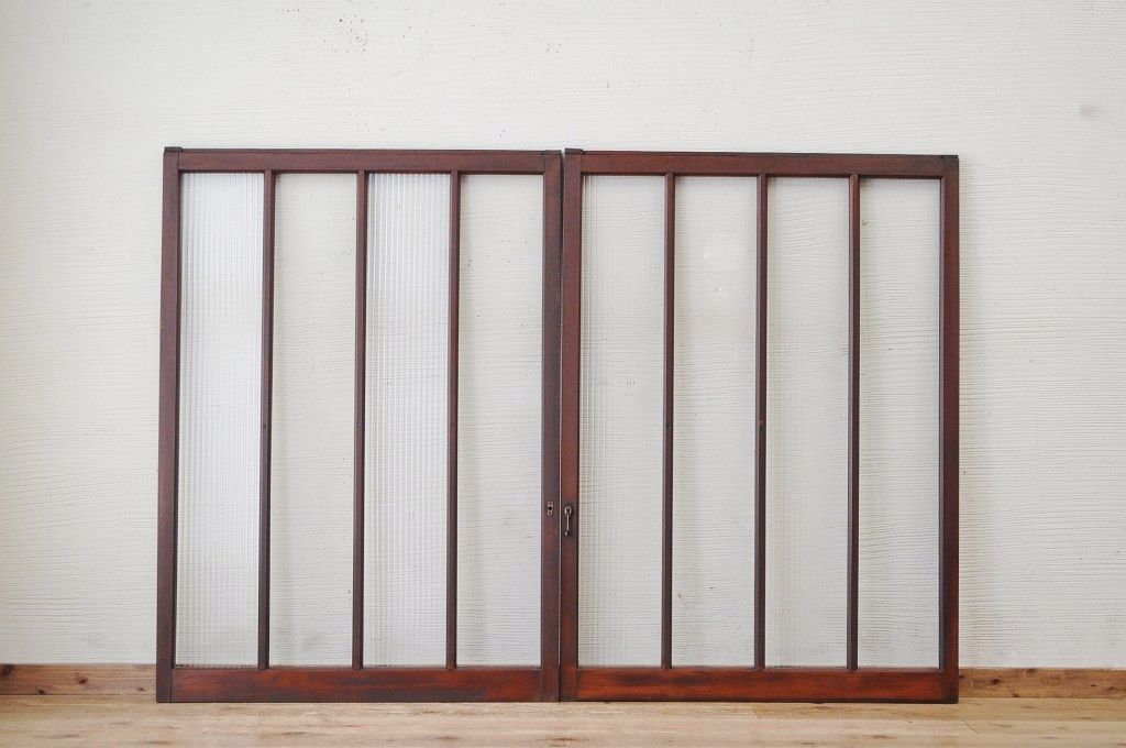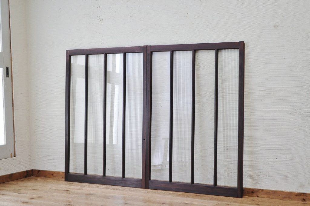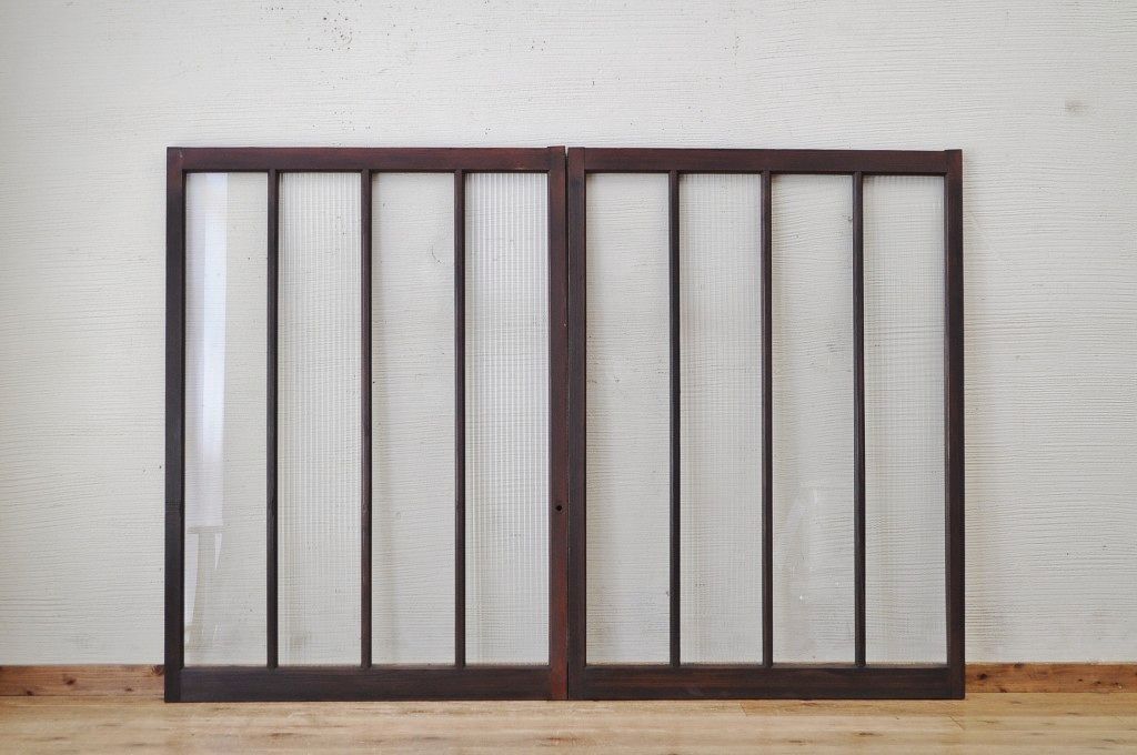 古いモールガラス引き戸2枚セット