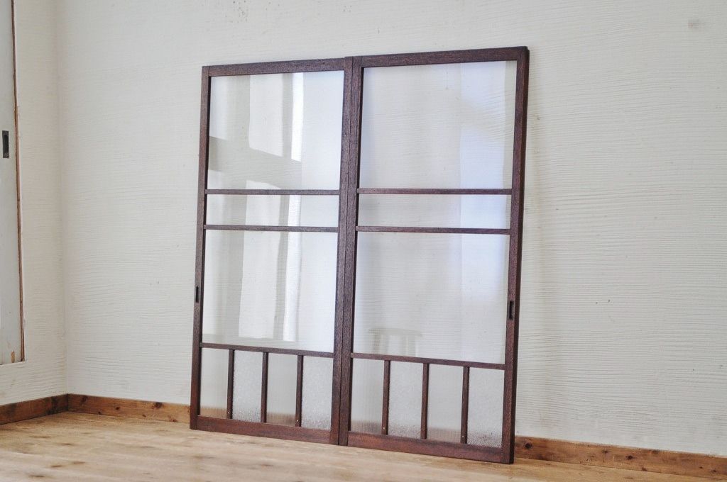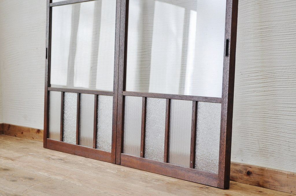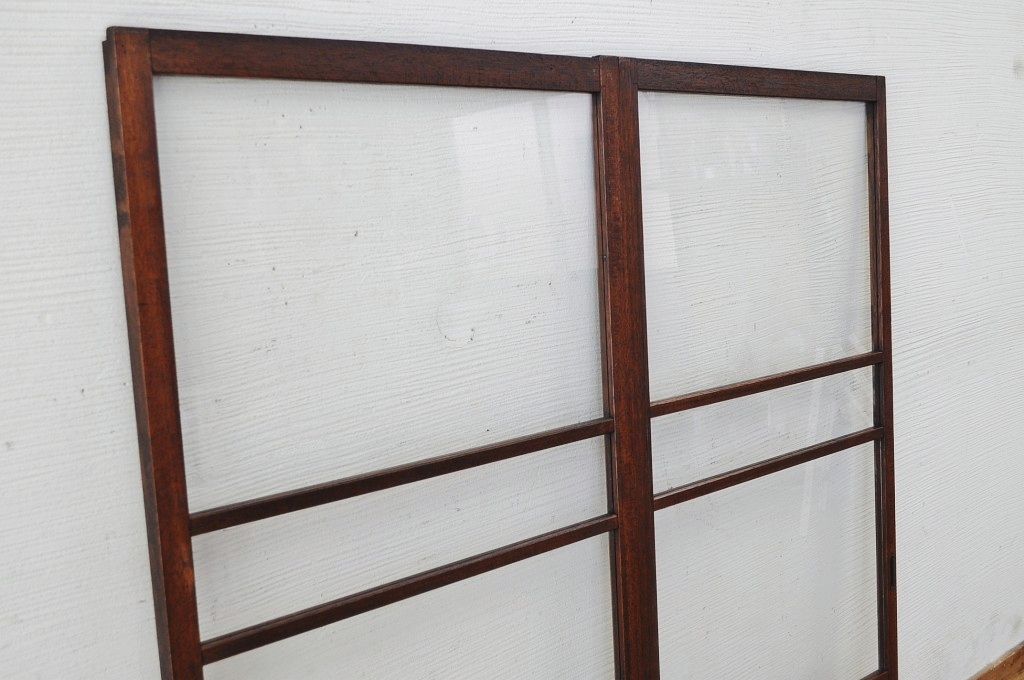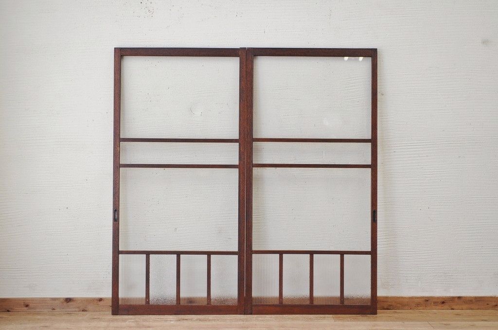 古いダイヤガラス銀モールガラス引き戸2枚セット