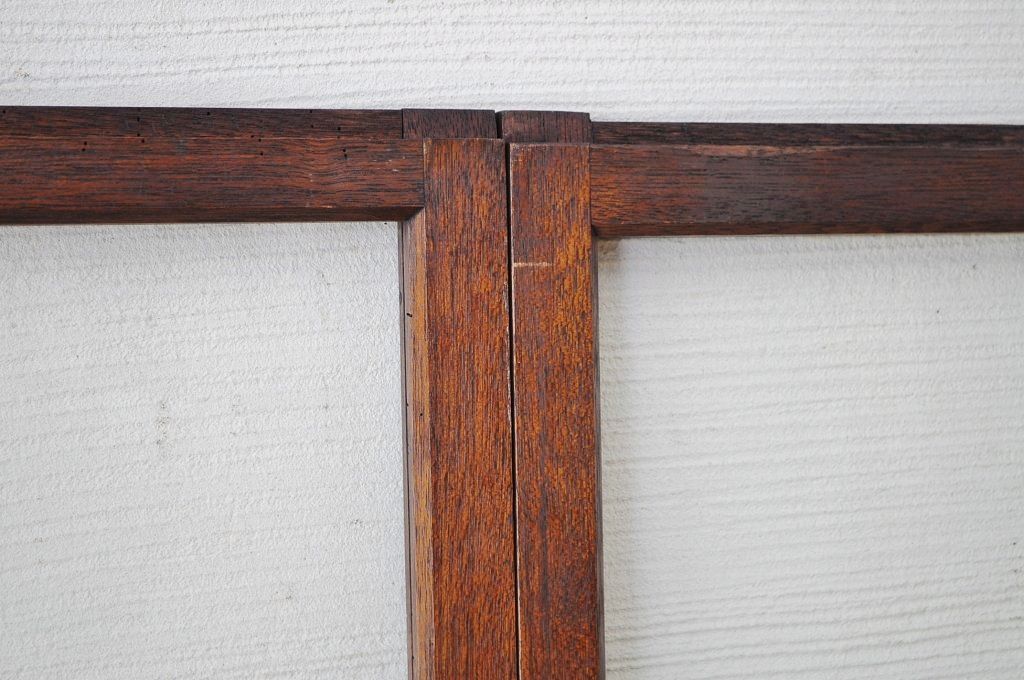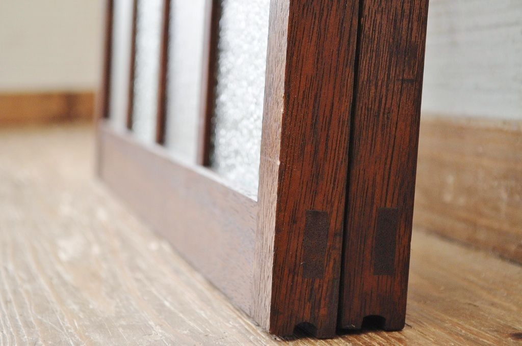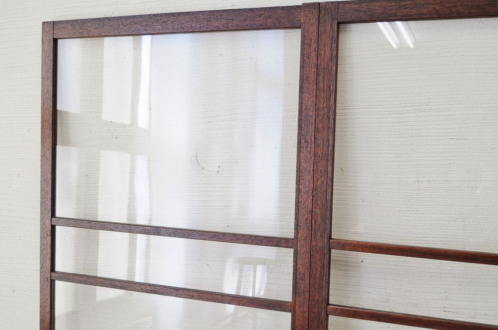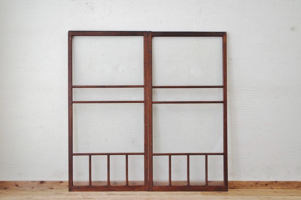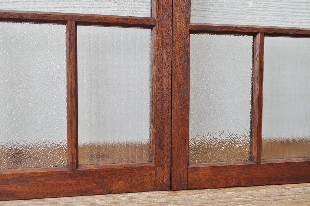 古いダイヤガラス銀モールガラス引き戸2枚セット