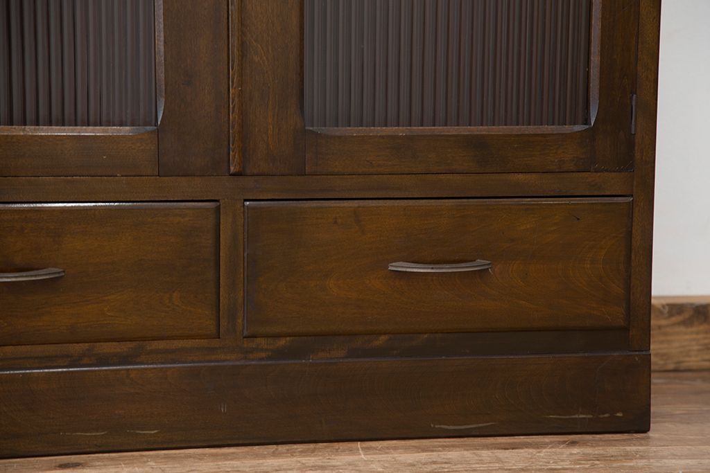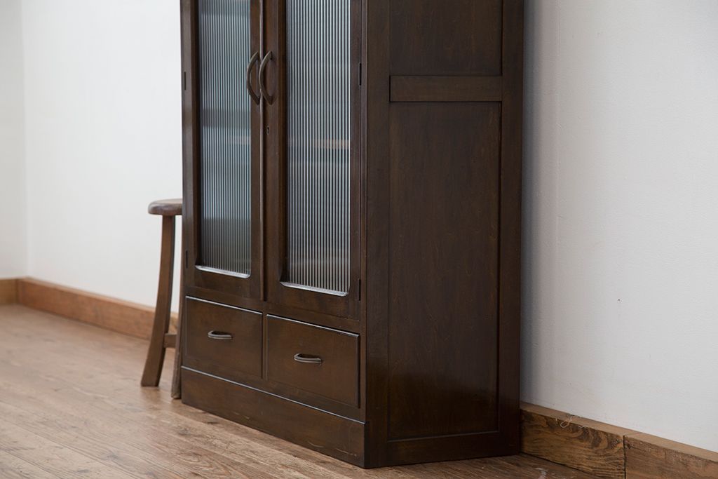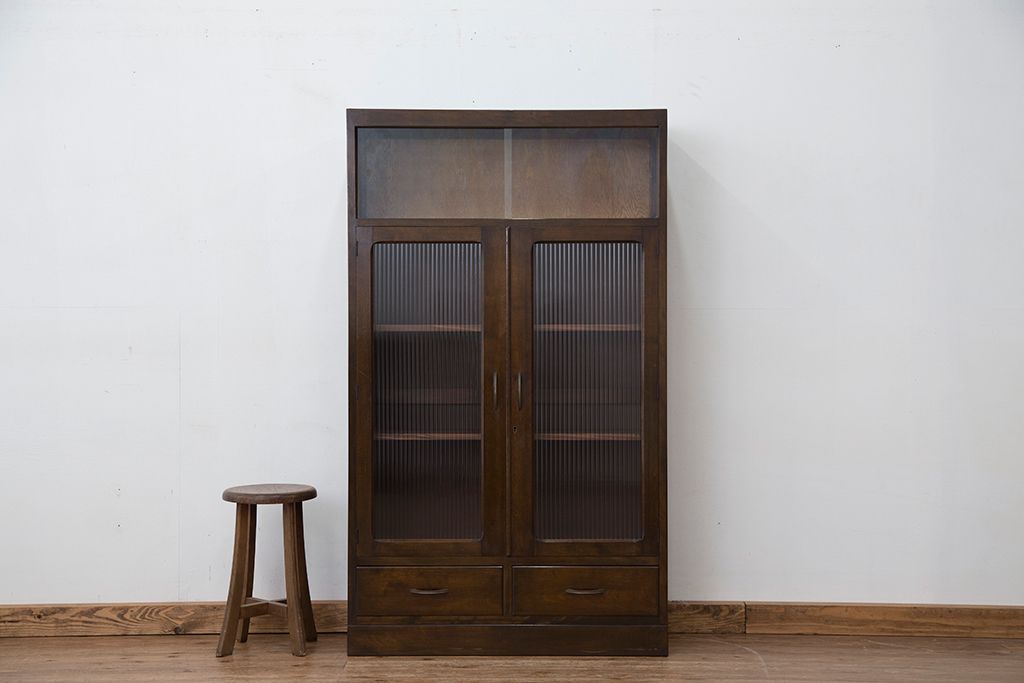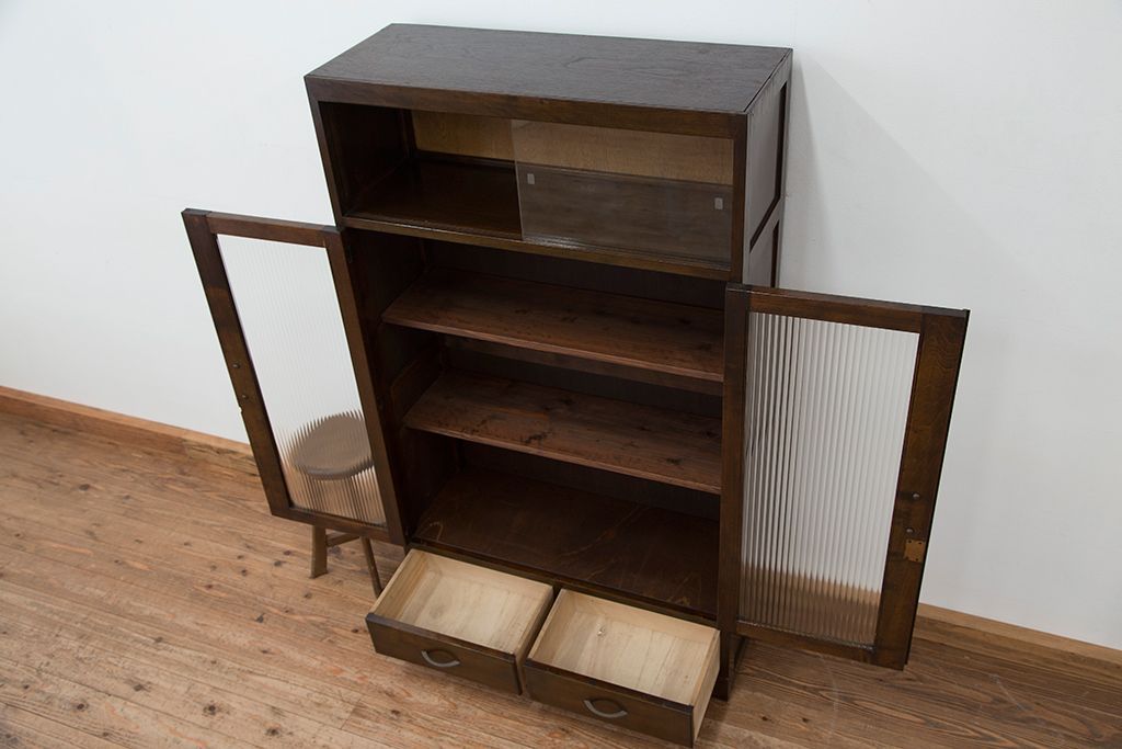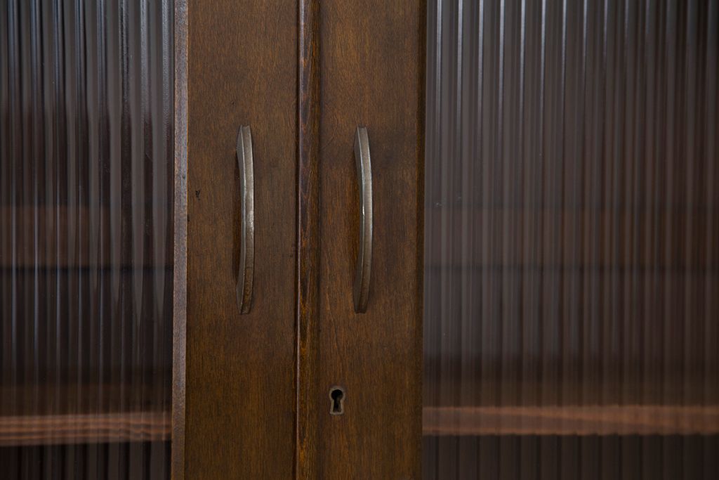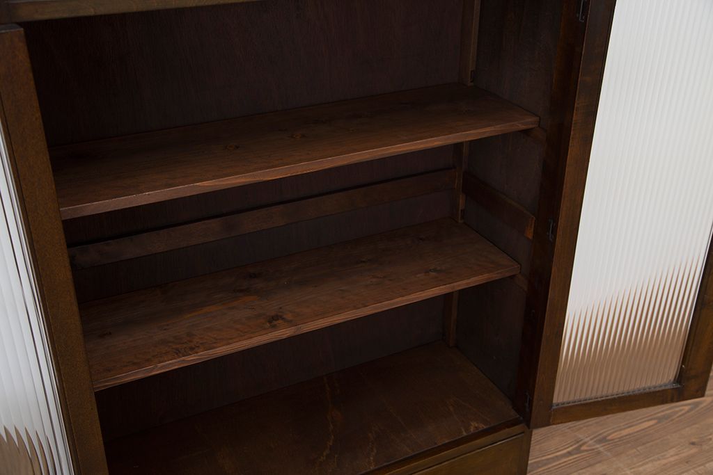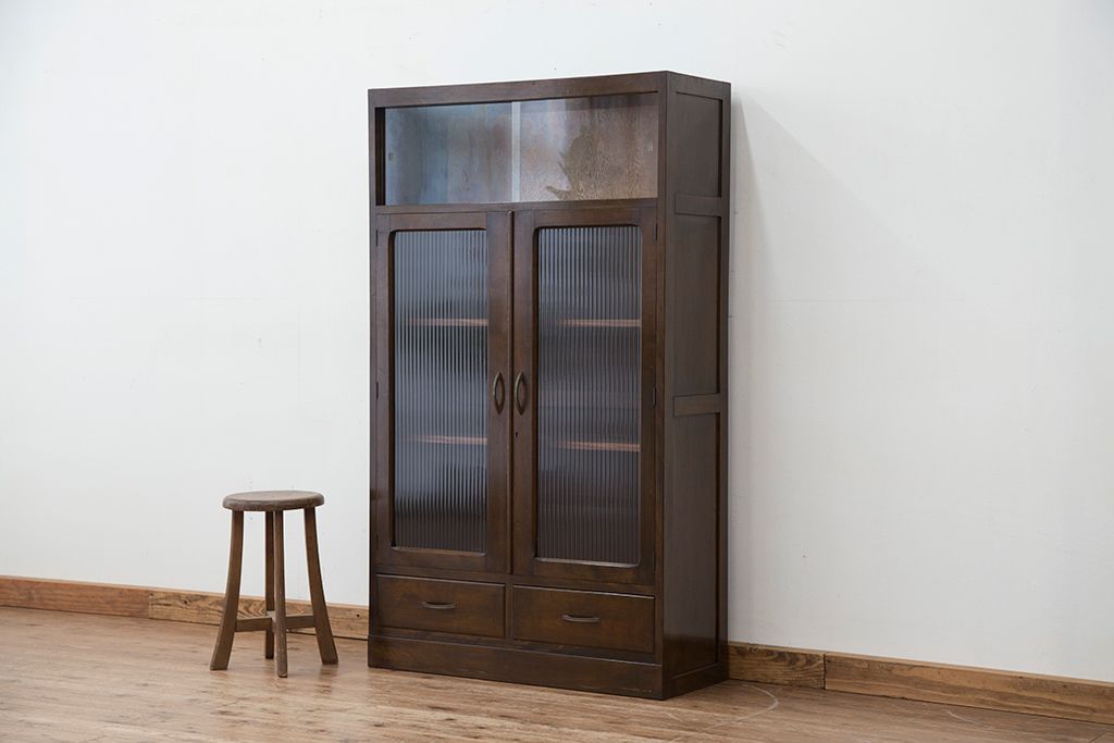 レトロ家具 アンティーク レトロなデザインのモールガラス本箱(収納棚・飾り棚)