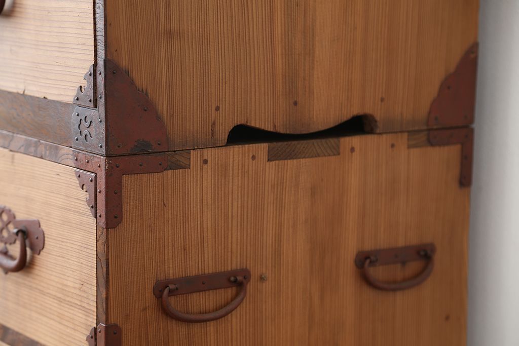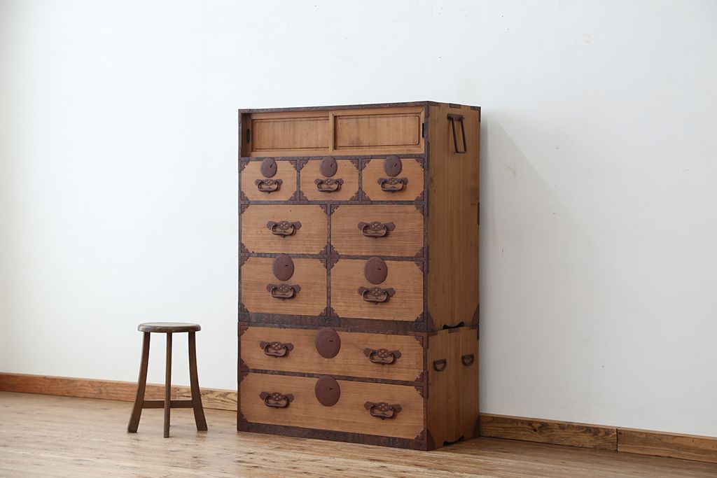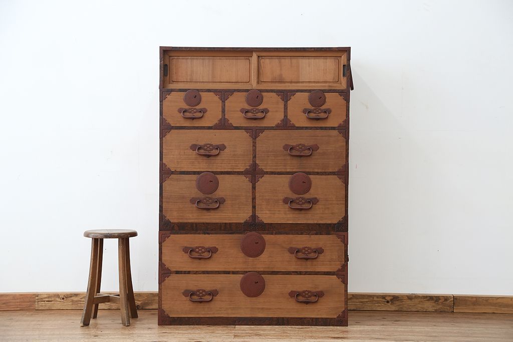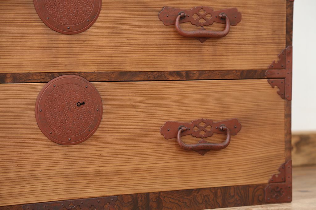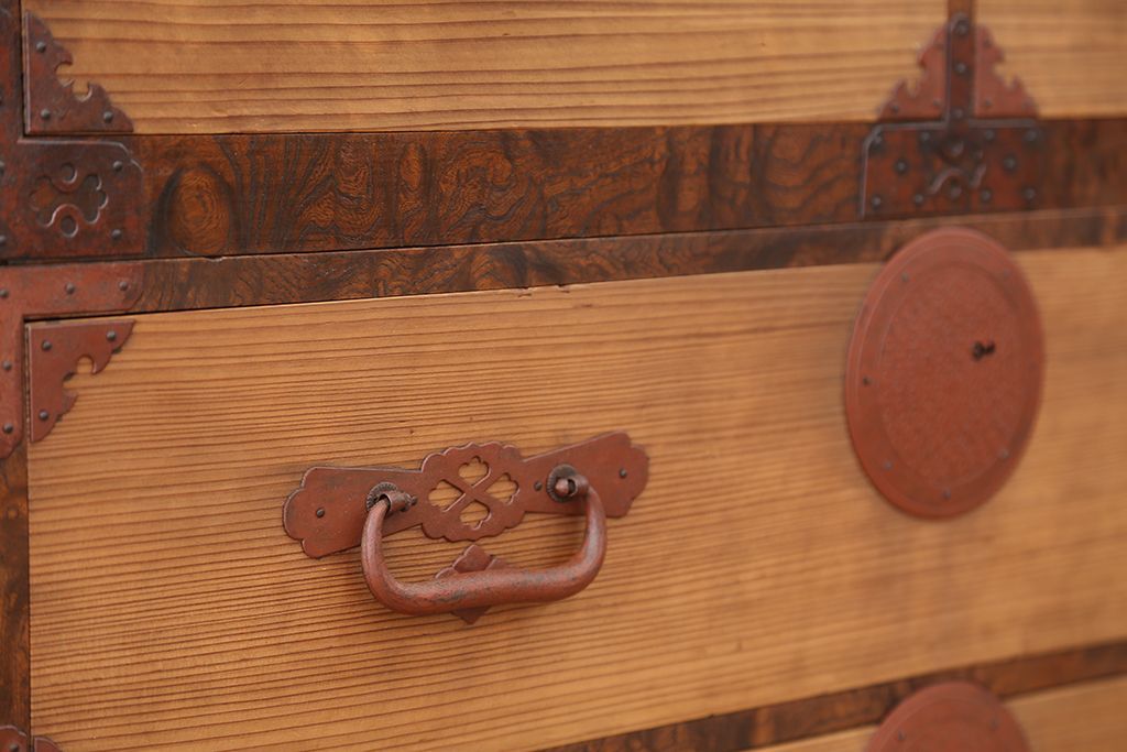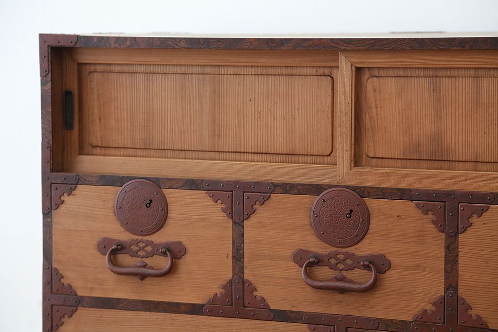 和箪笥 > アンティーク家具 大正ロマン 特別注文造り ケヤキ玉杢縁上質な前桐重ね最上箪笥(桐箪笥、桐たんす)