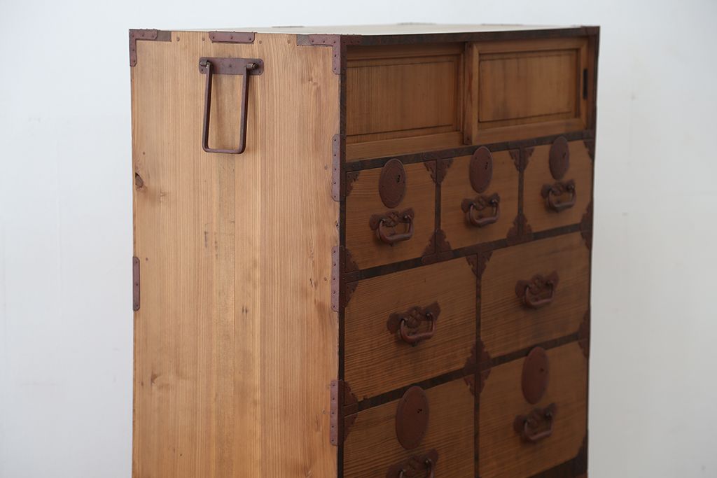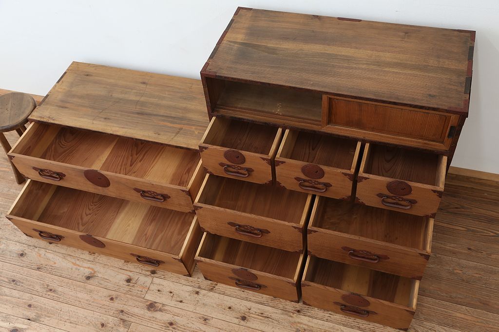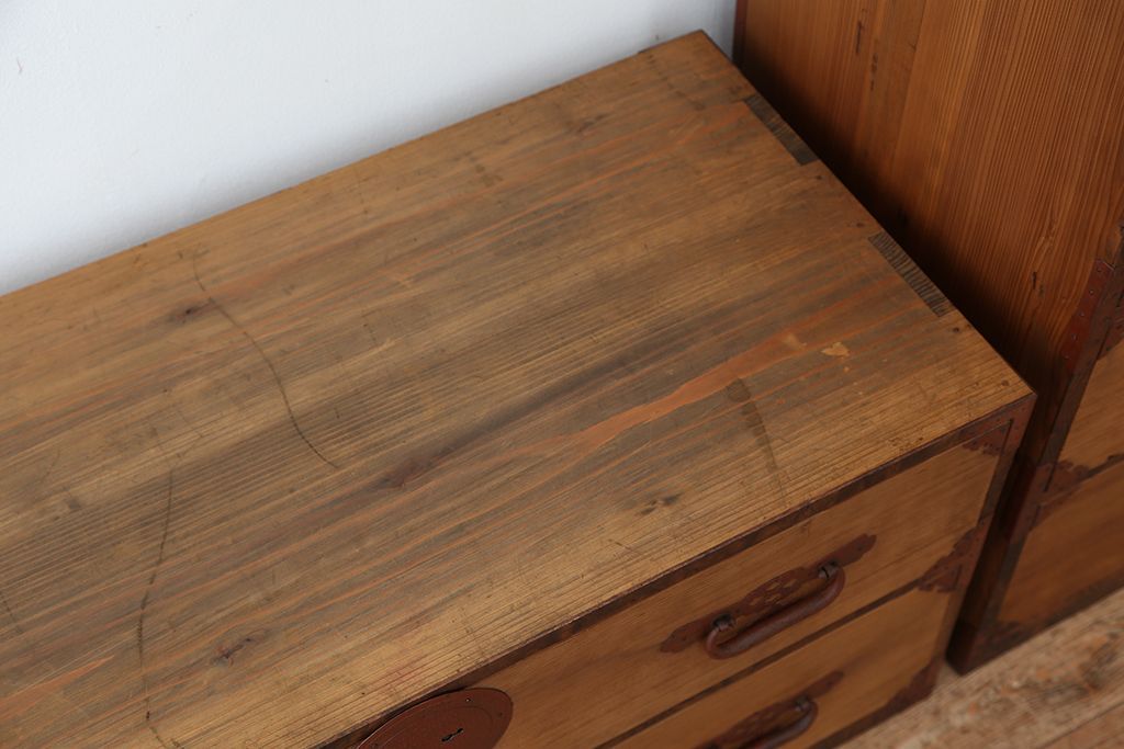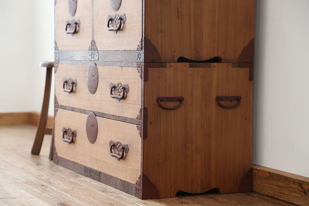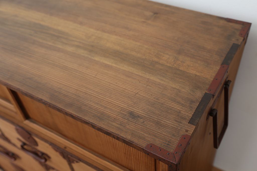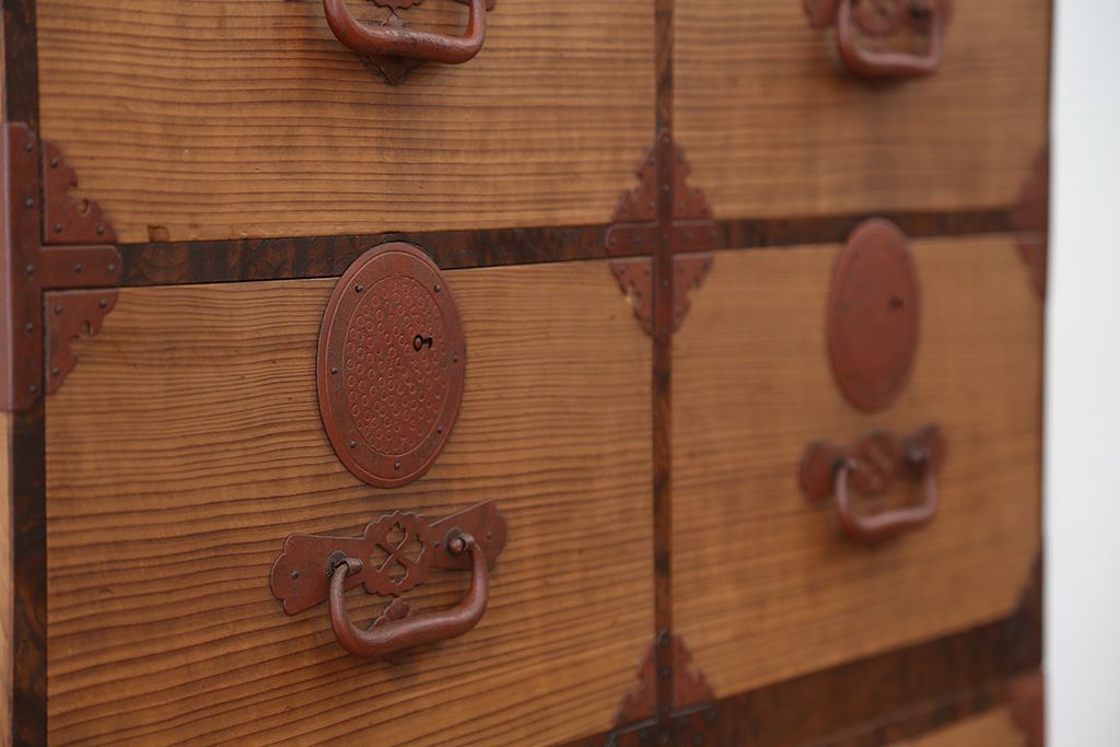 和箪笥 > アンティーク家具 大正ロマン 特別注文造り ケヤキ玉杢縁上質な前桐重ね最上箪笥(桐箪笥、桐たんす)