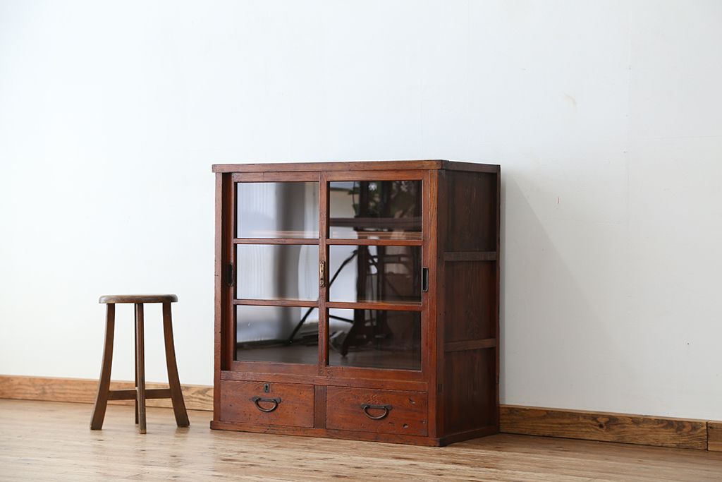 アンティーク家具 アンティーク 古い木の収納棚(飾り棚・食器棚)