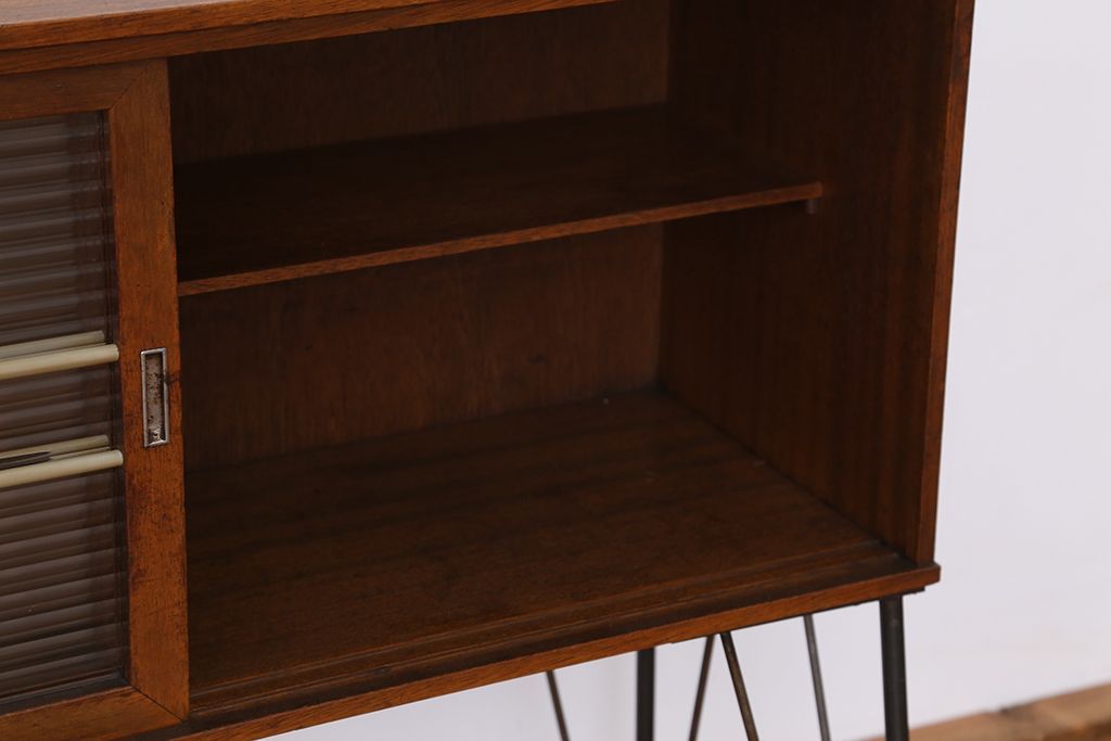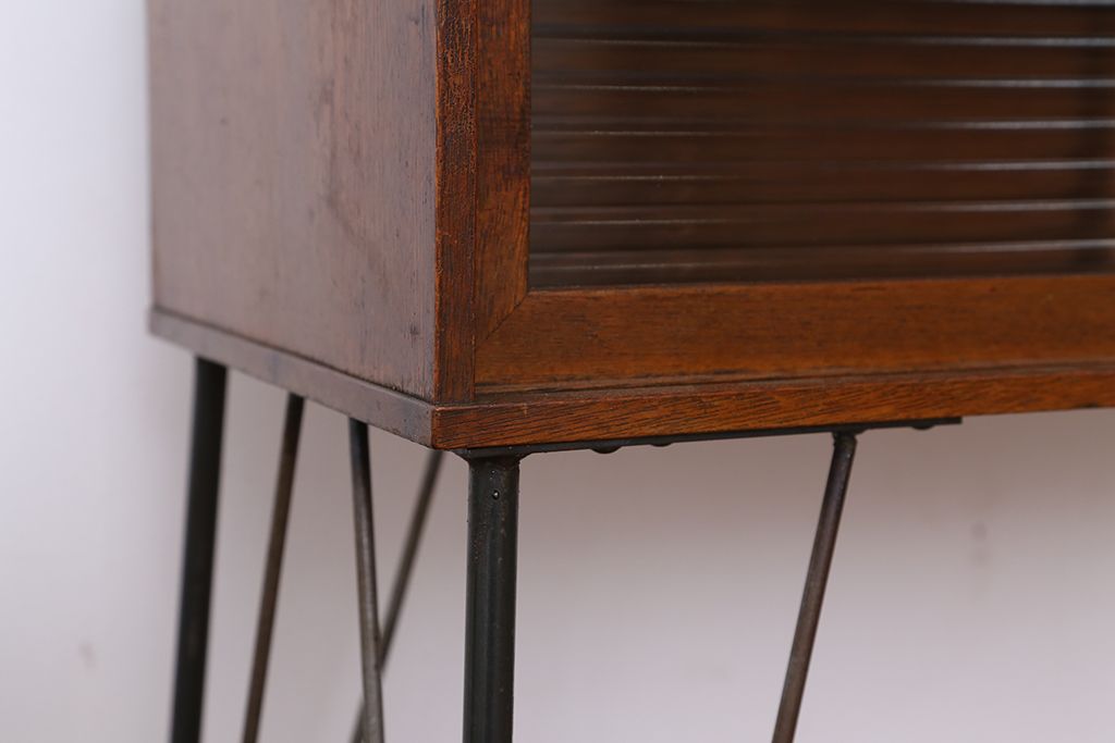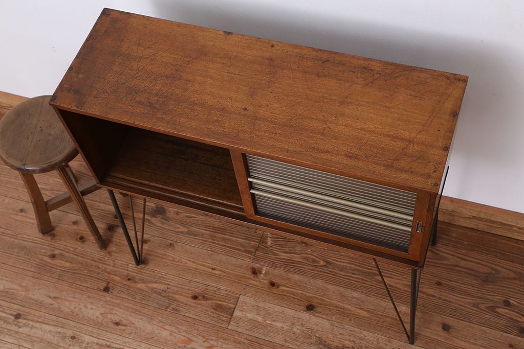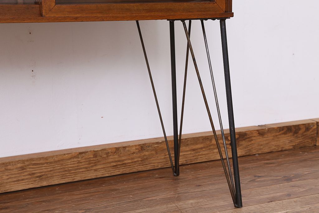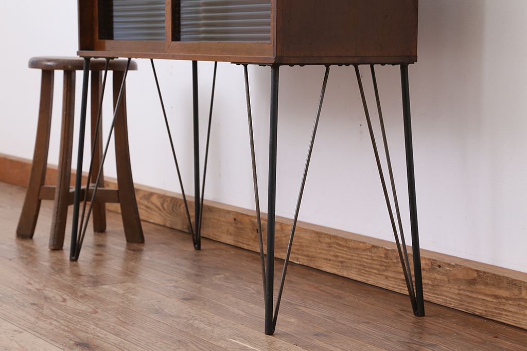 アンティーク家具 アンティーク 素敵なデザイン!モールガラス鉄脚の収納棚