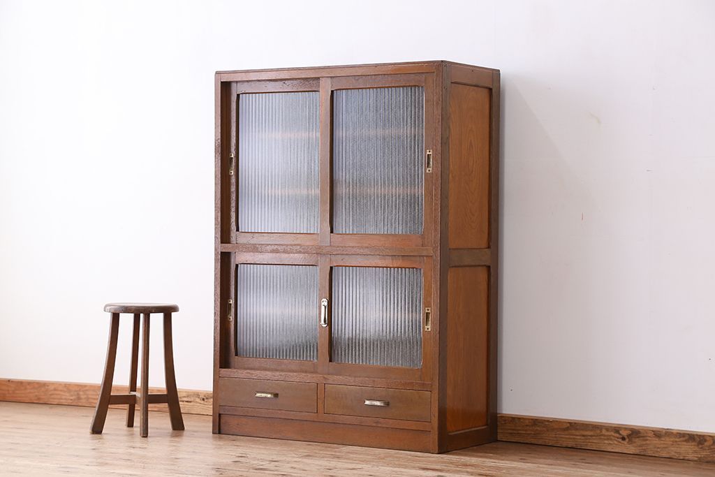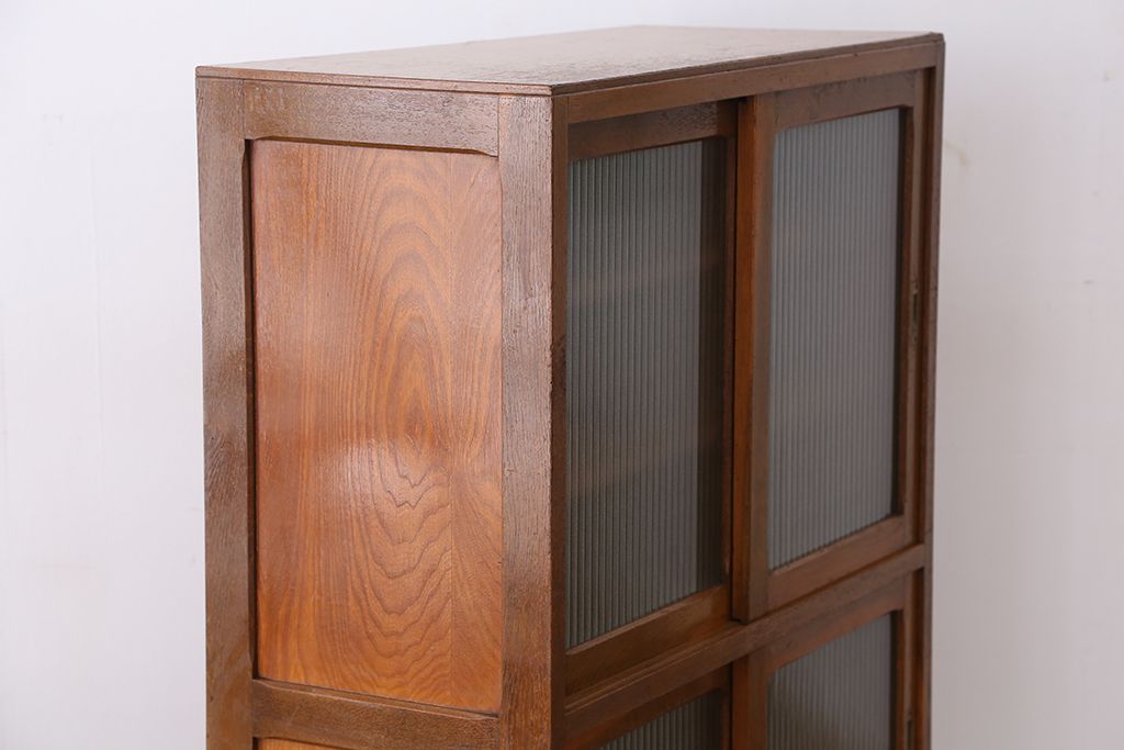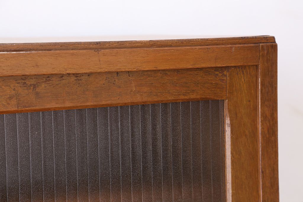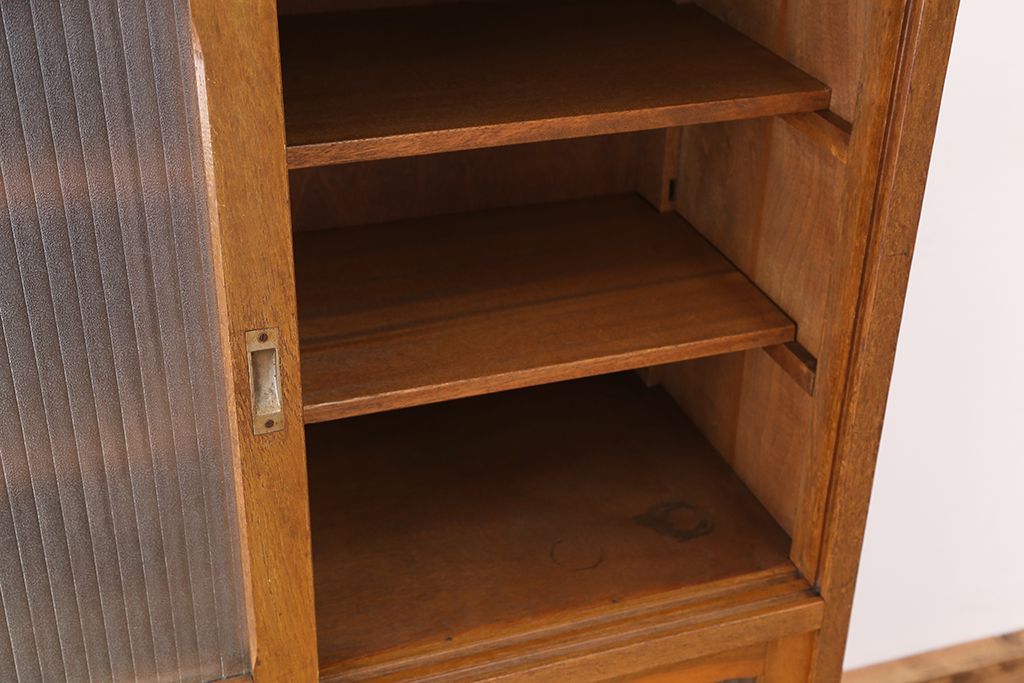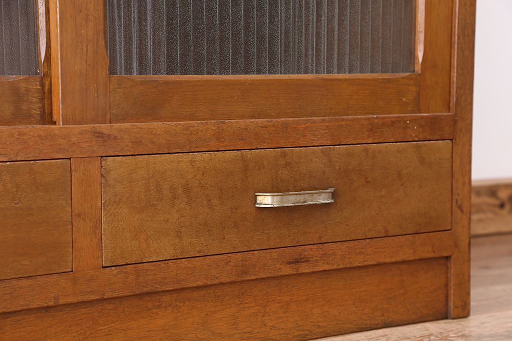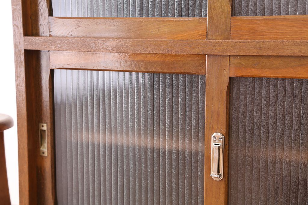 アンティーク家具 アンティーク 古いナラ材の銀モールガラス収納棚