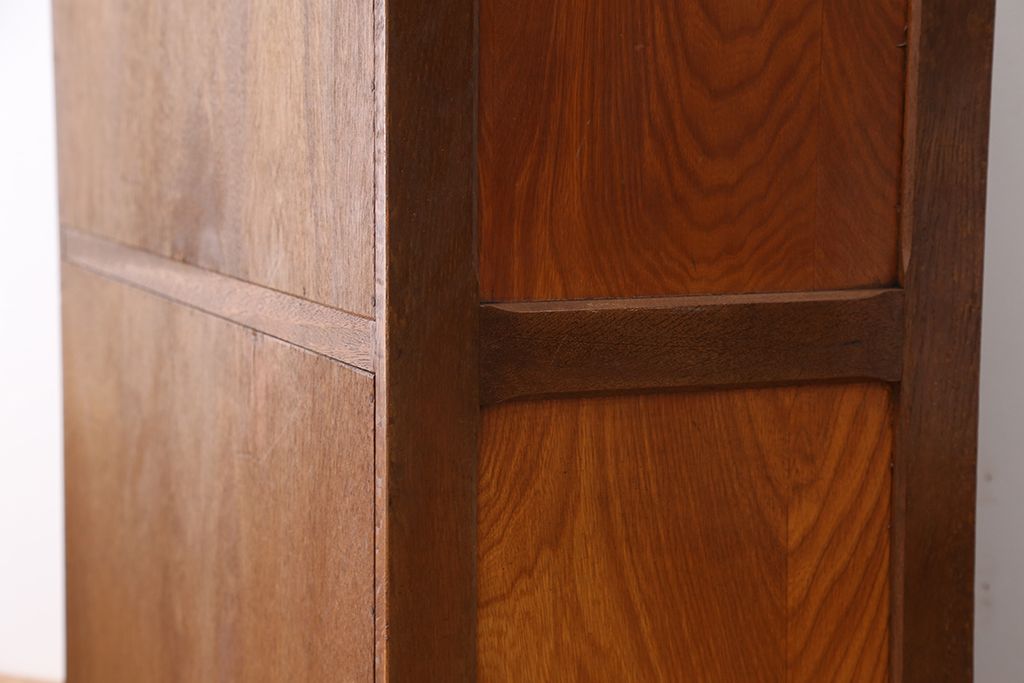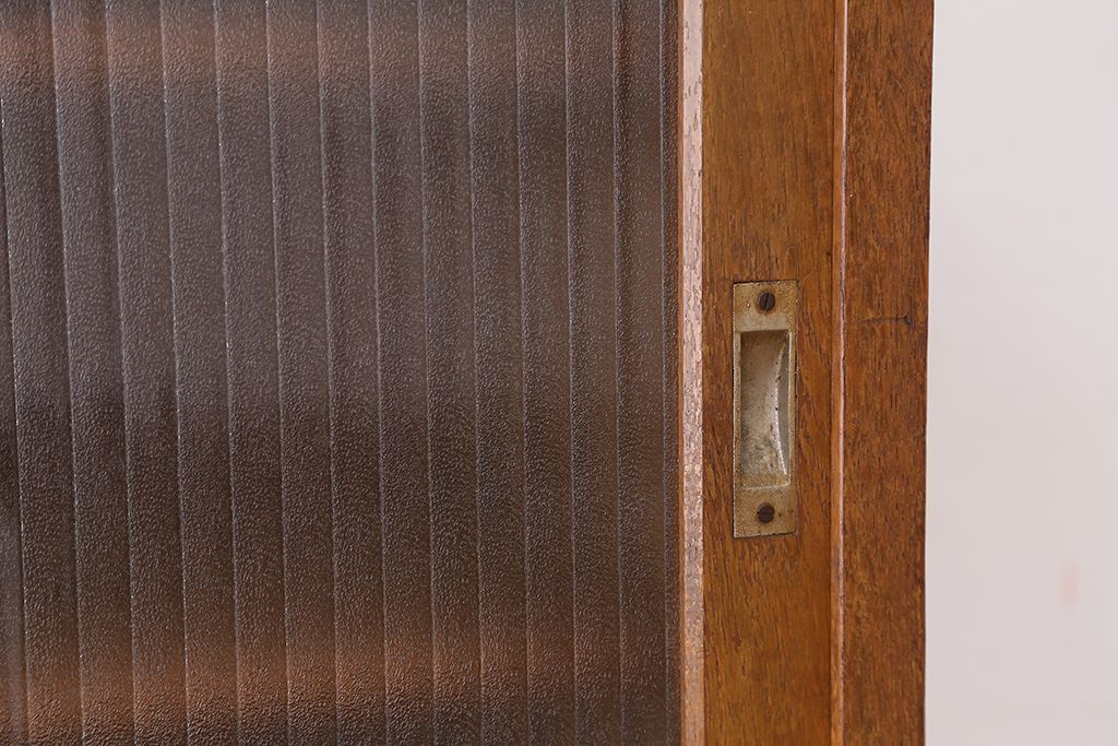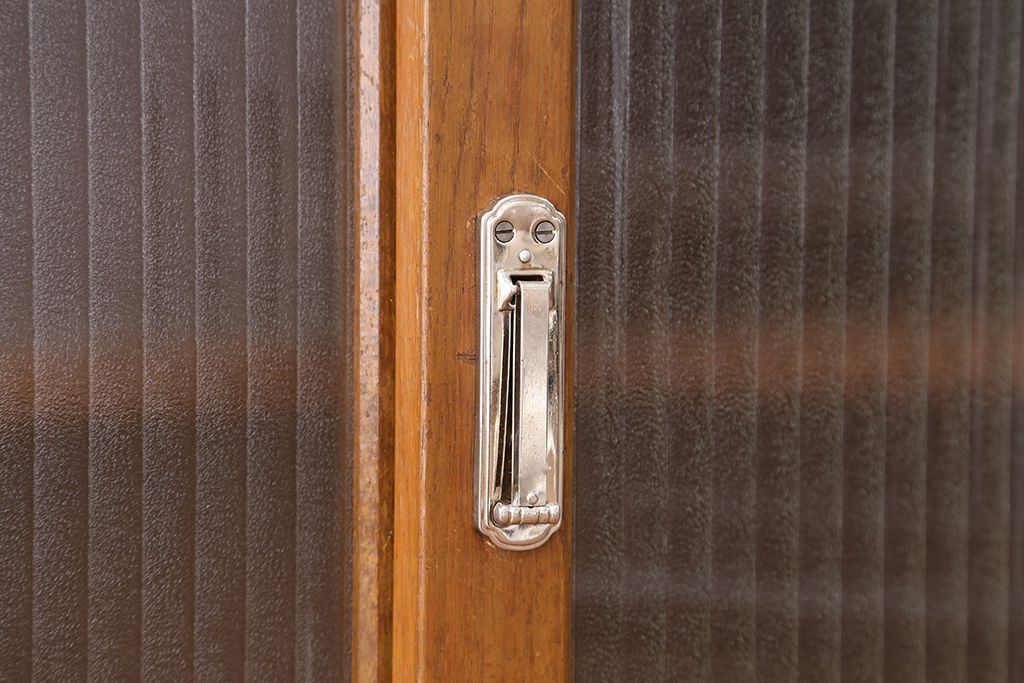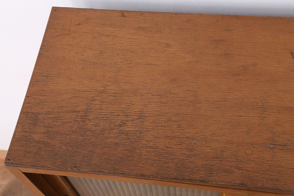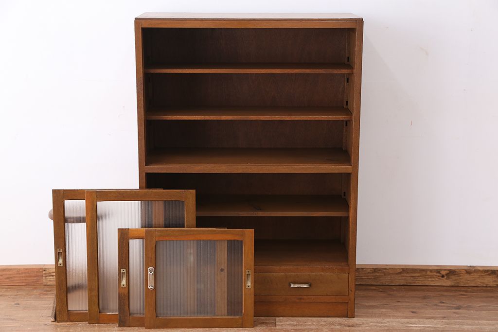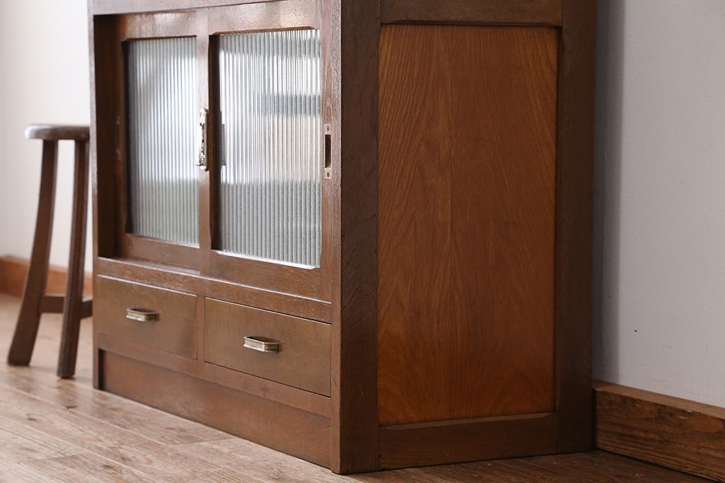 アンティーク家具 アンティーク 古いナラ材の銀モールガラス収納棚