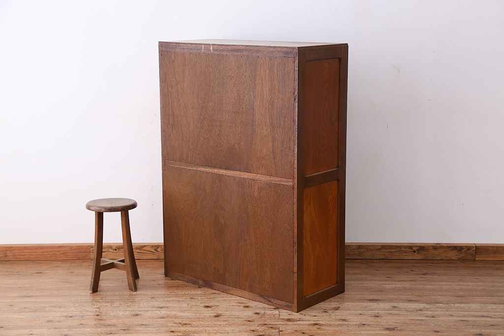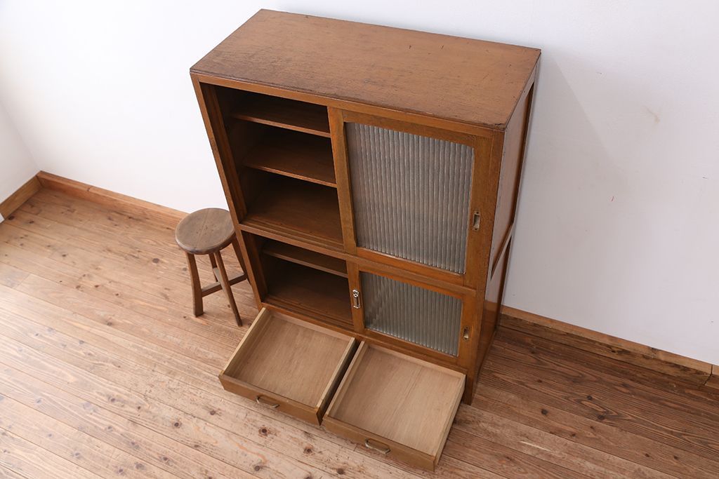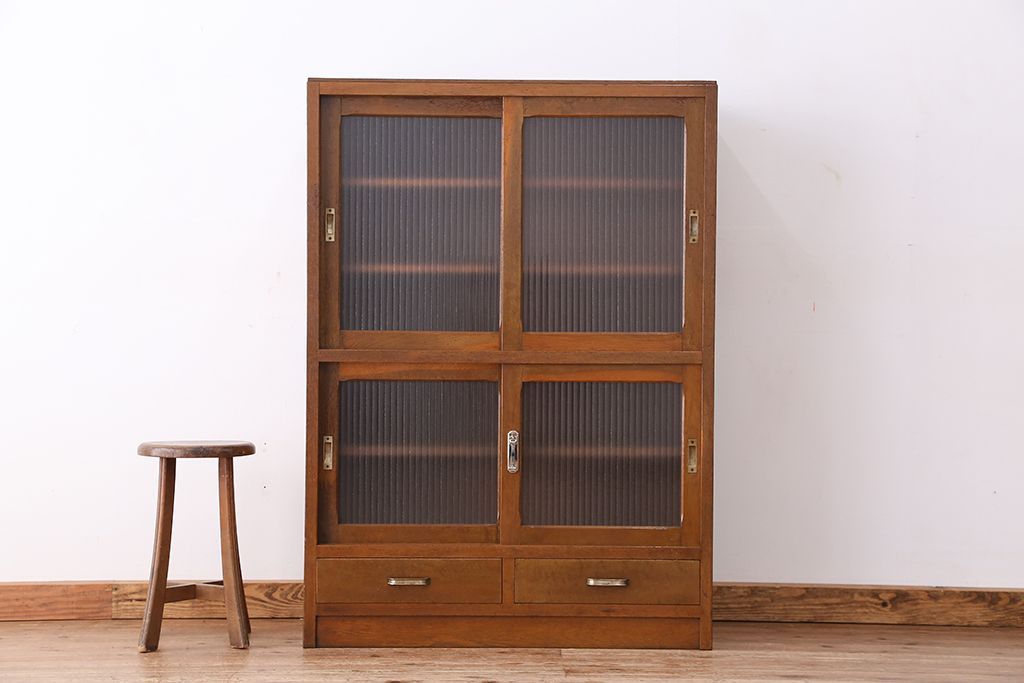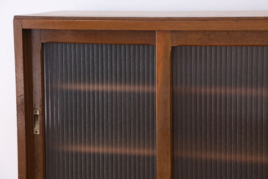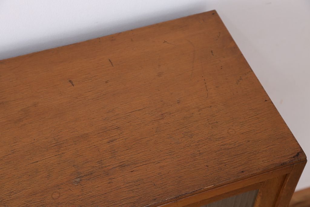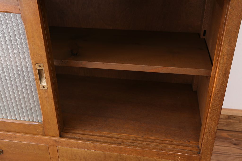 アンティーク家具 アンティーク 古いナラ材の銀モールガラス収納棚