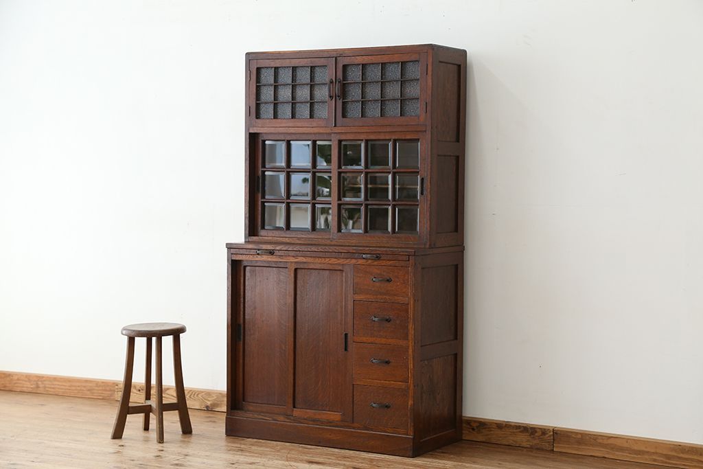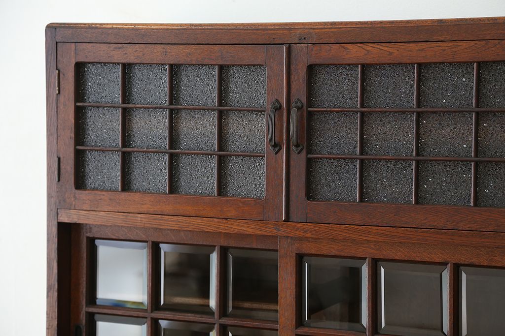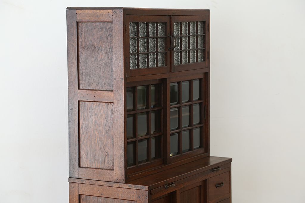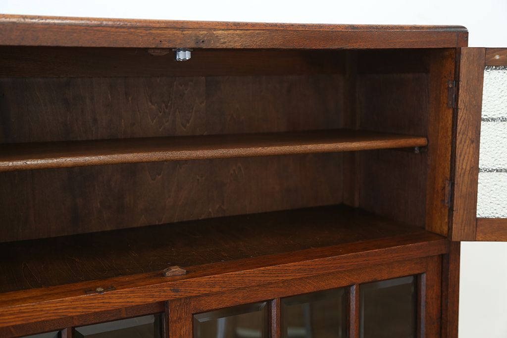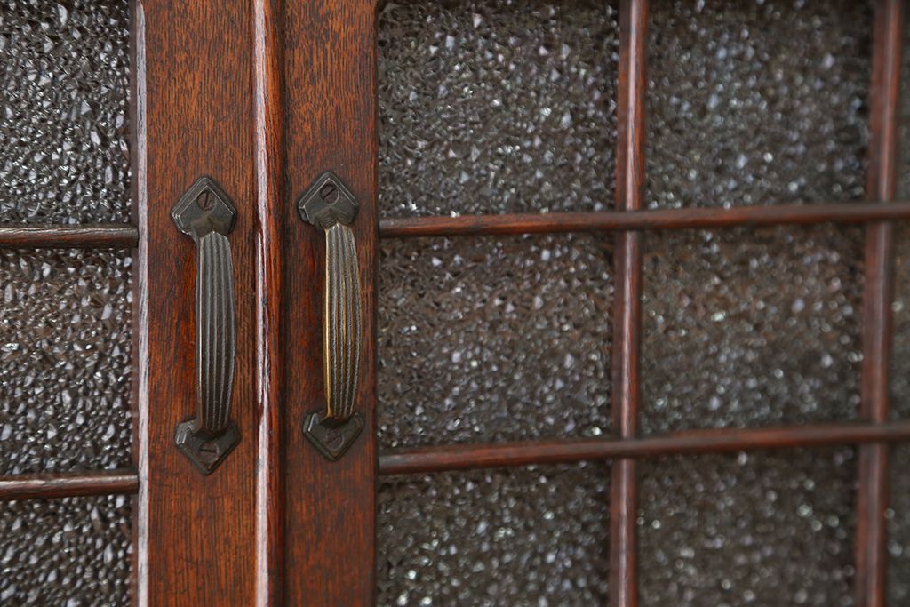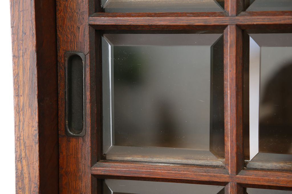 アンティーク家具 ☆アンティーク 素敵なデザイン!古いナラ材の上質な面取りガラス食器棚